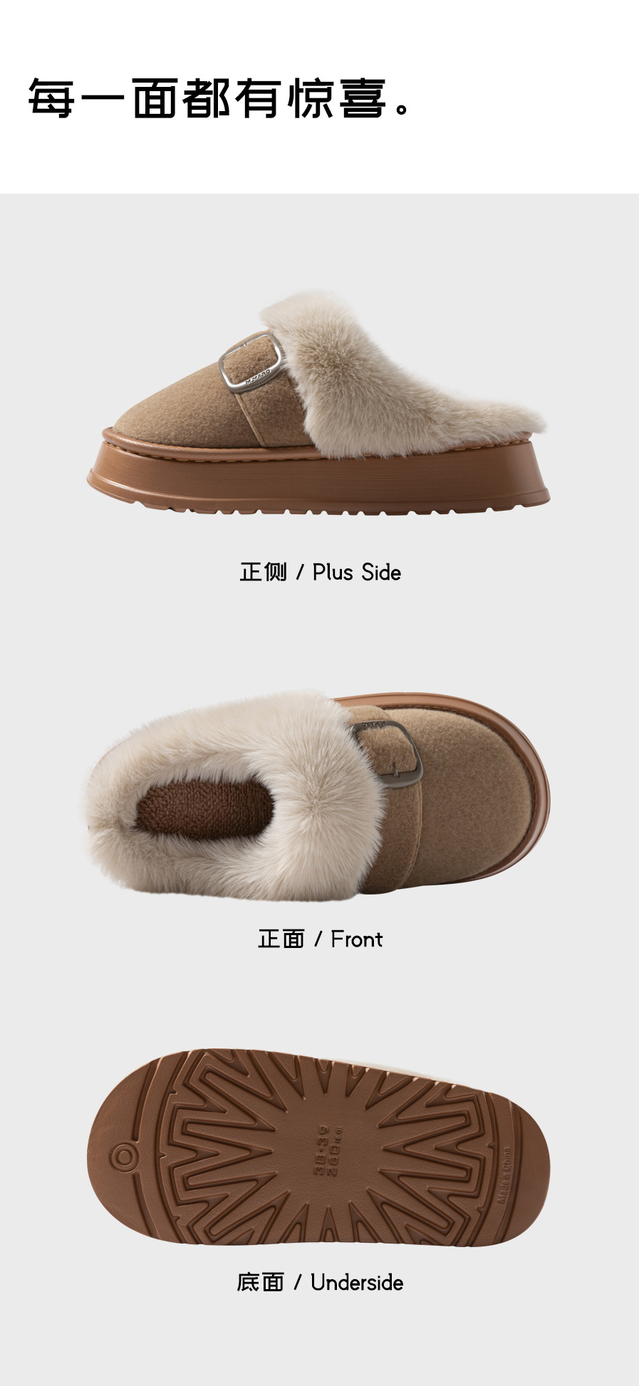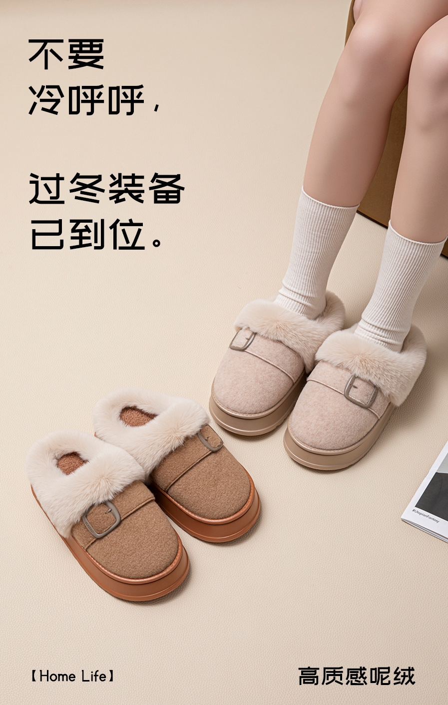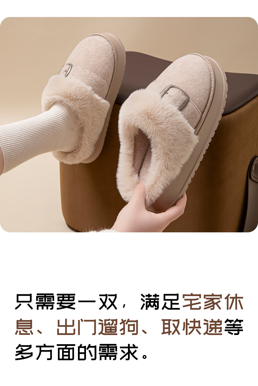 【YW】无忧购59元2双半包跟加绒保暖拖鞋冬季家居厚底防滑ZS-3100(截单后7天发货)