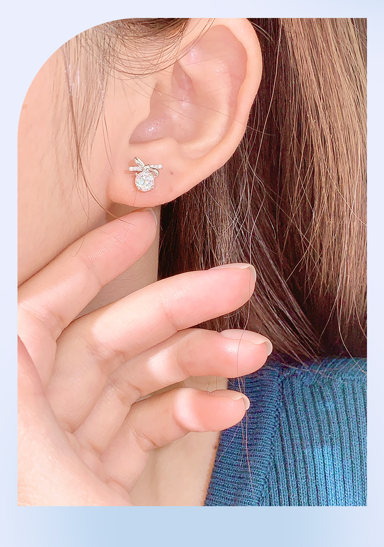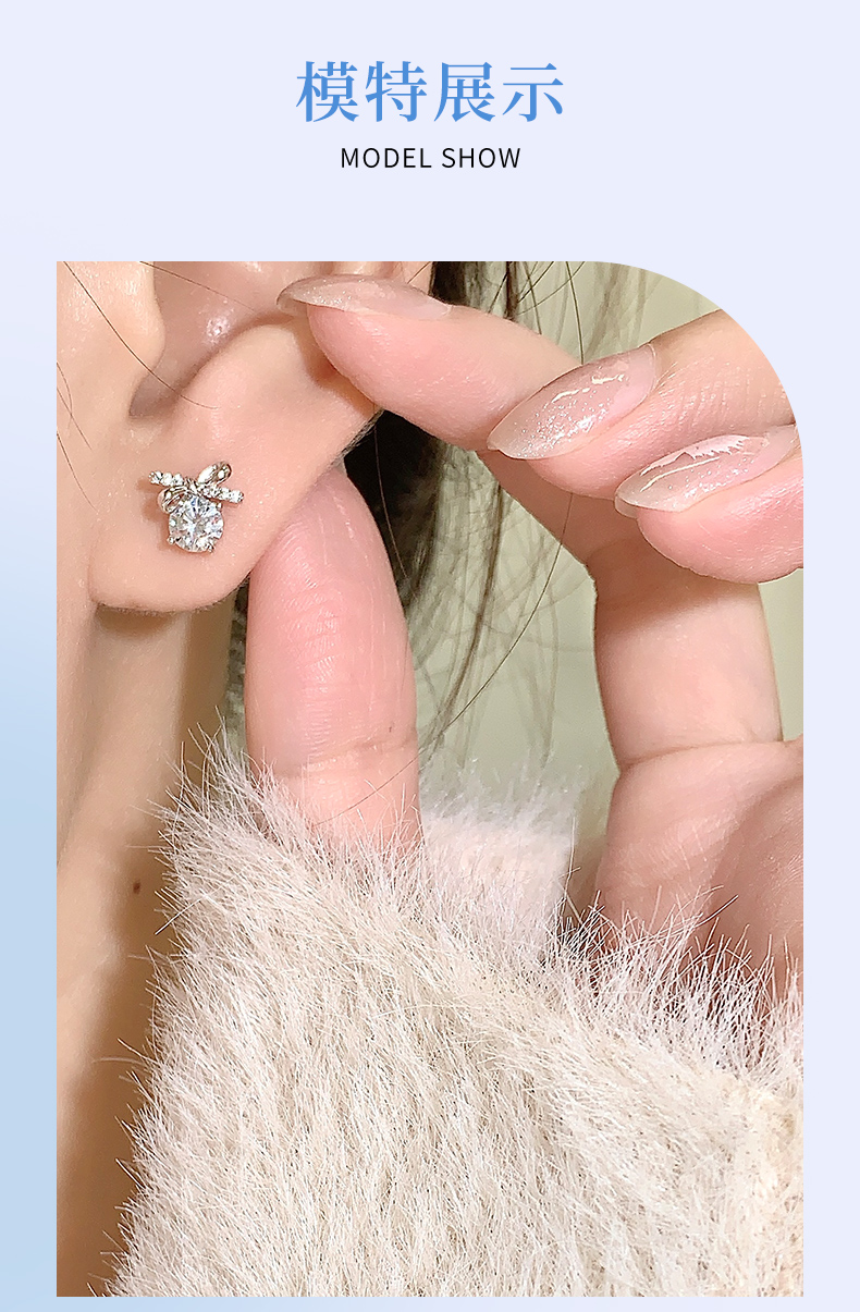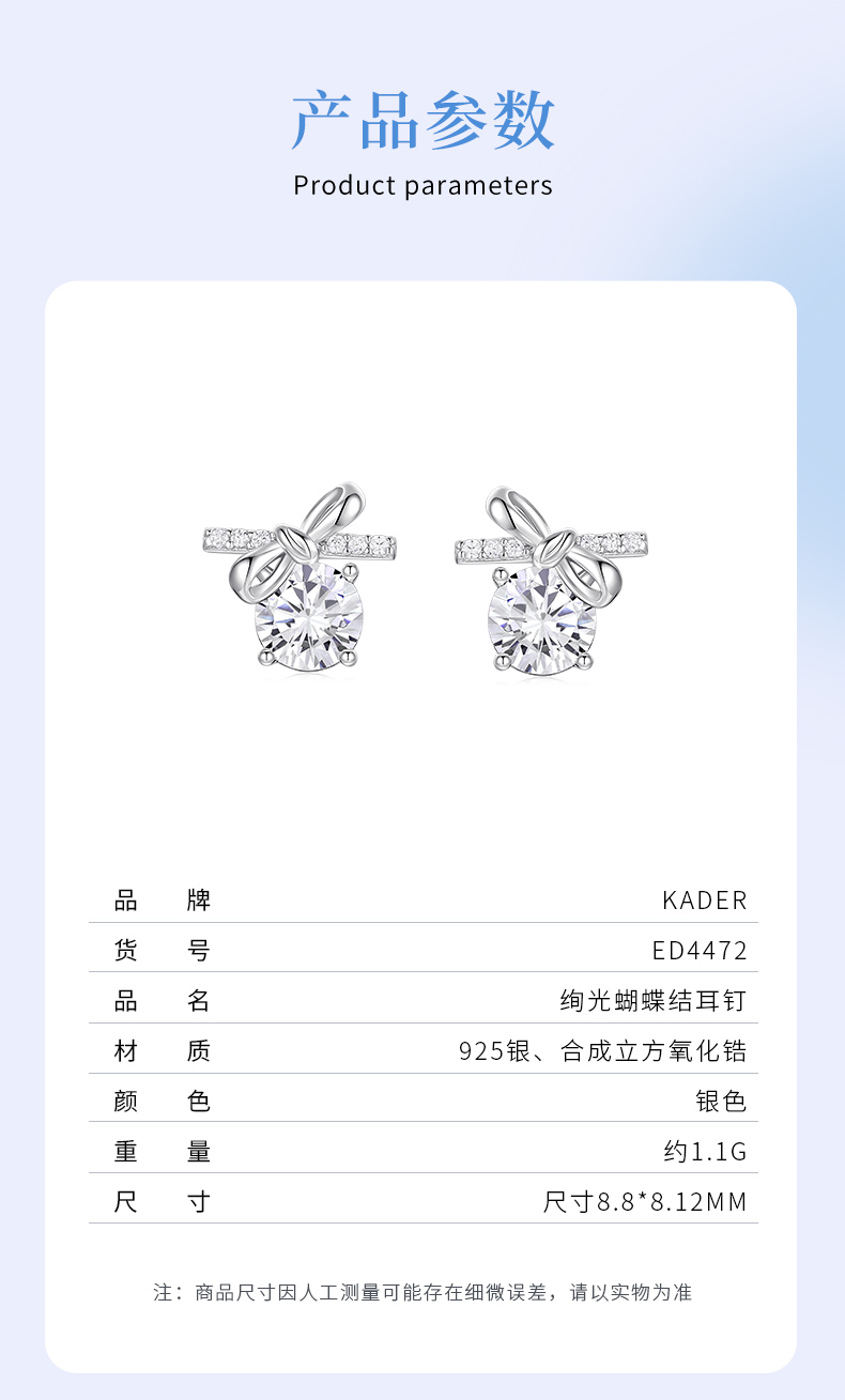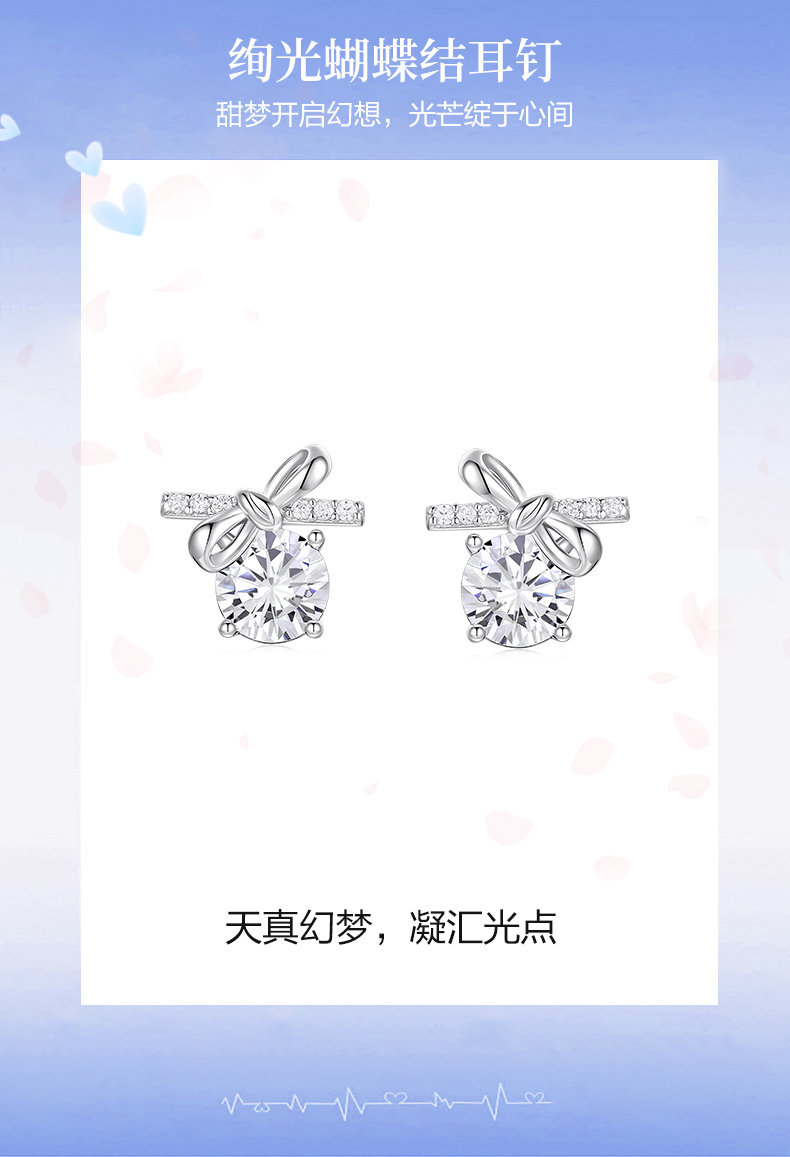 【圣诞蝴蝶结】卡蒂罗/KADER 绚光蝴蝶结耳钉 闪光少女甜美可爱灵动结纯银养耳洞耳饰 心动甜梦满钻爆闪配饰