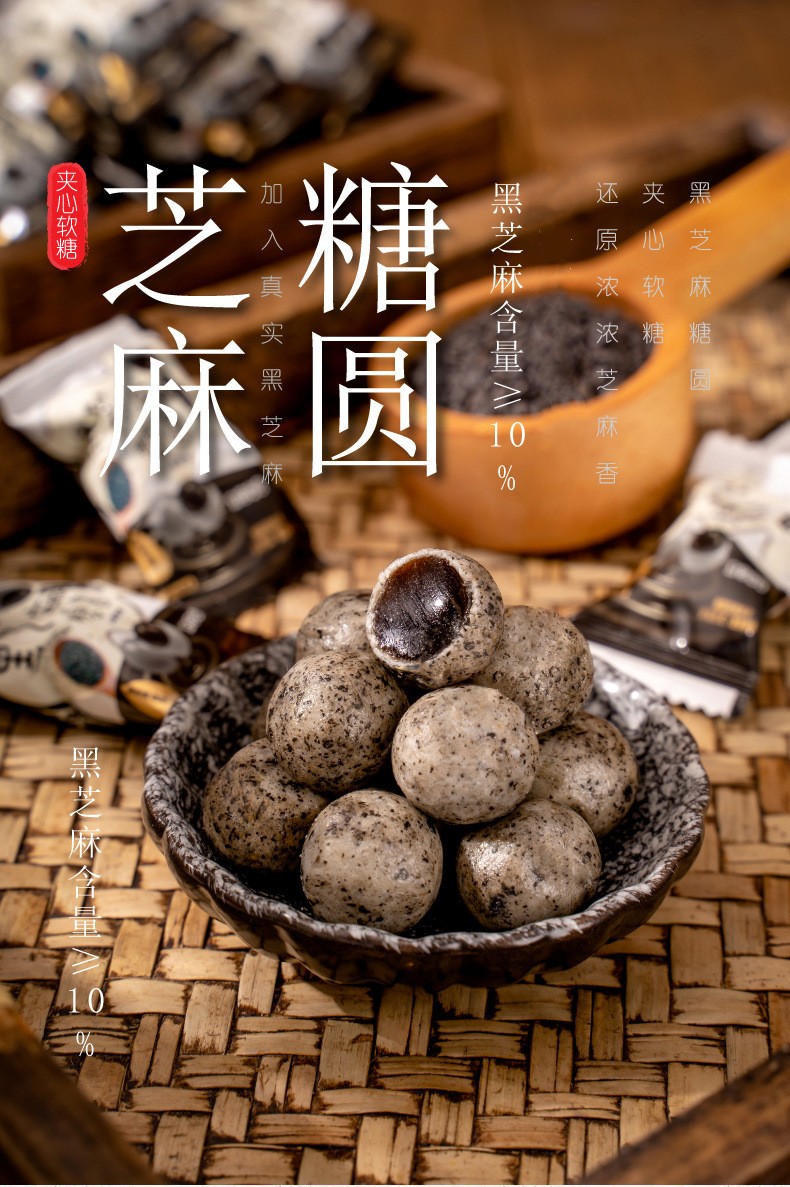 【每一粒芝麻都有态度!黑芝麻丸夹心软糖果】颗颗饱满圆润,每天都元气满满,健康营养又美味,入口清甜香而不腻,随身携带脱健康小零食健康养生