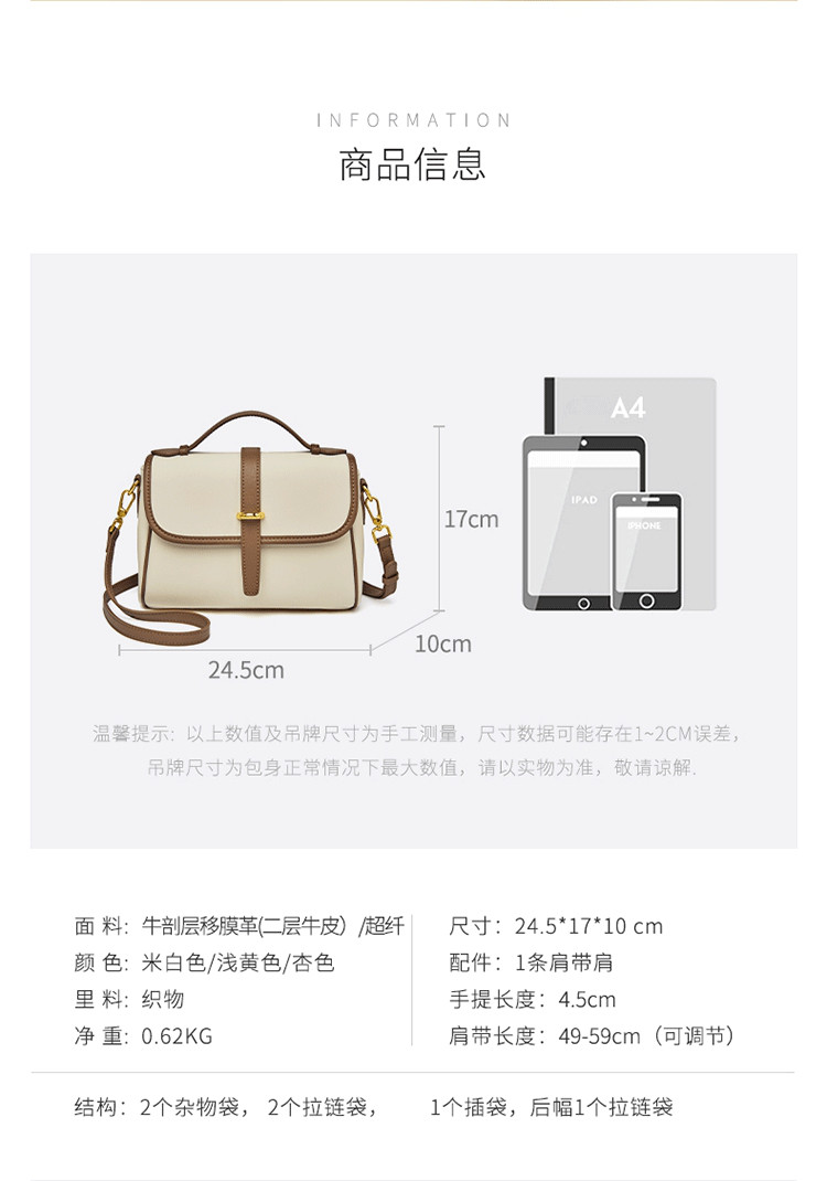 Safiya/索菲娅牛皮2022新款大容量单肩包包女斜挎包手提女SF900072Y