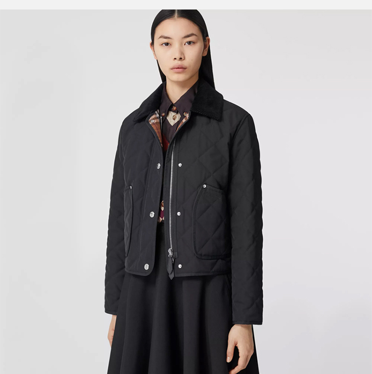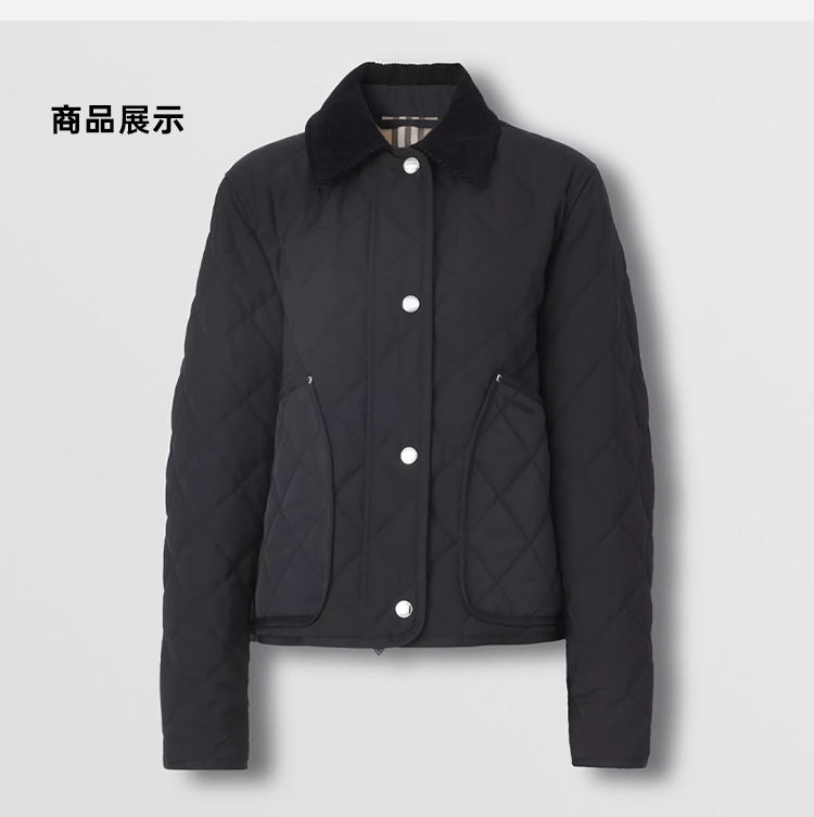 BURBERRY 巴宝莉 女士灯芯绒衣领菱形绗缝短款谷仓夹克棉服 黑色 8055131 A1189