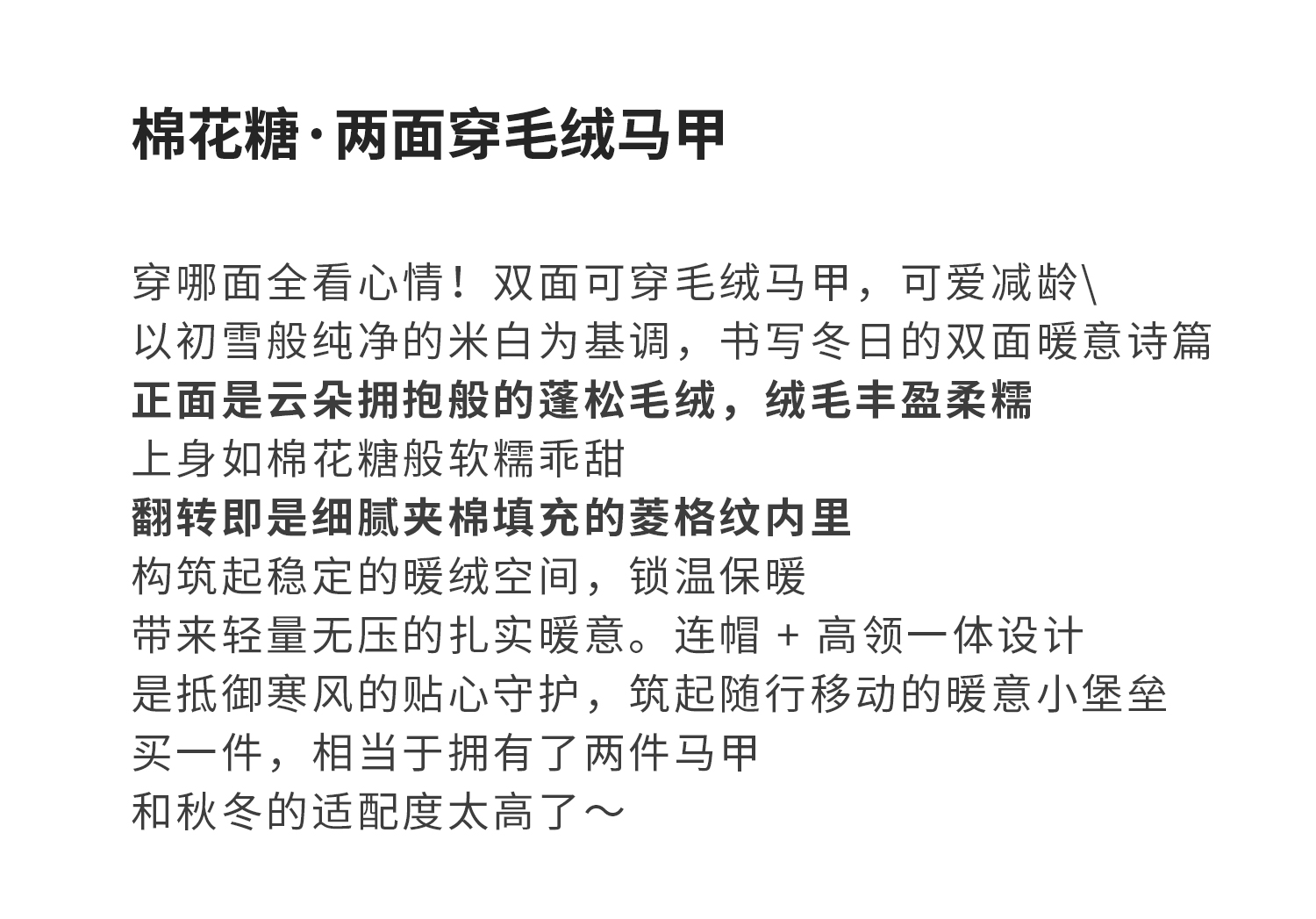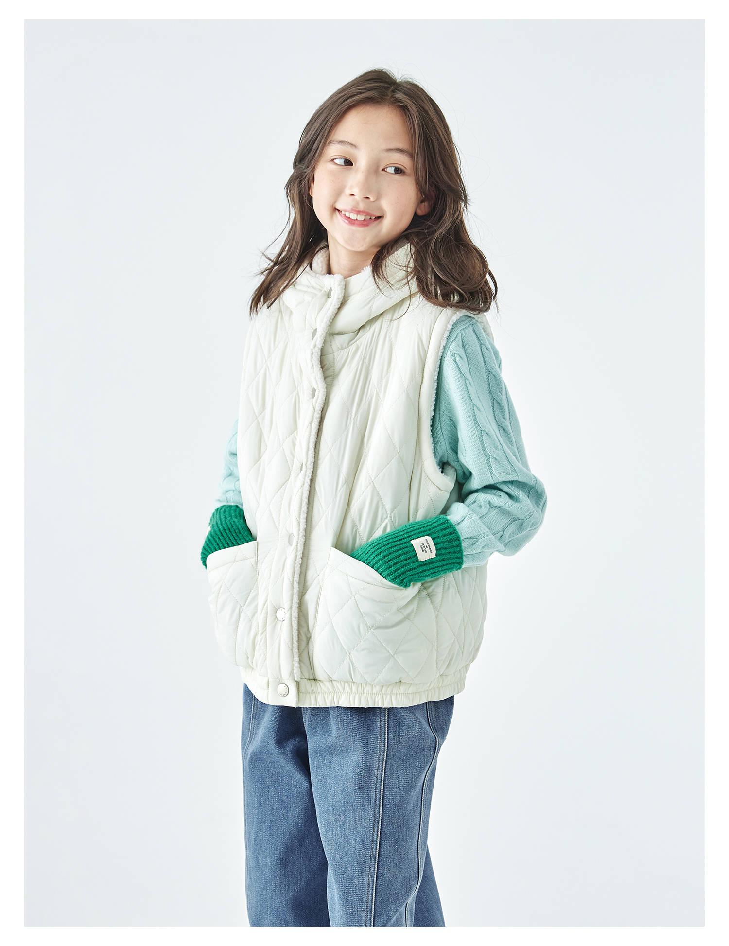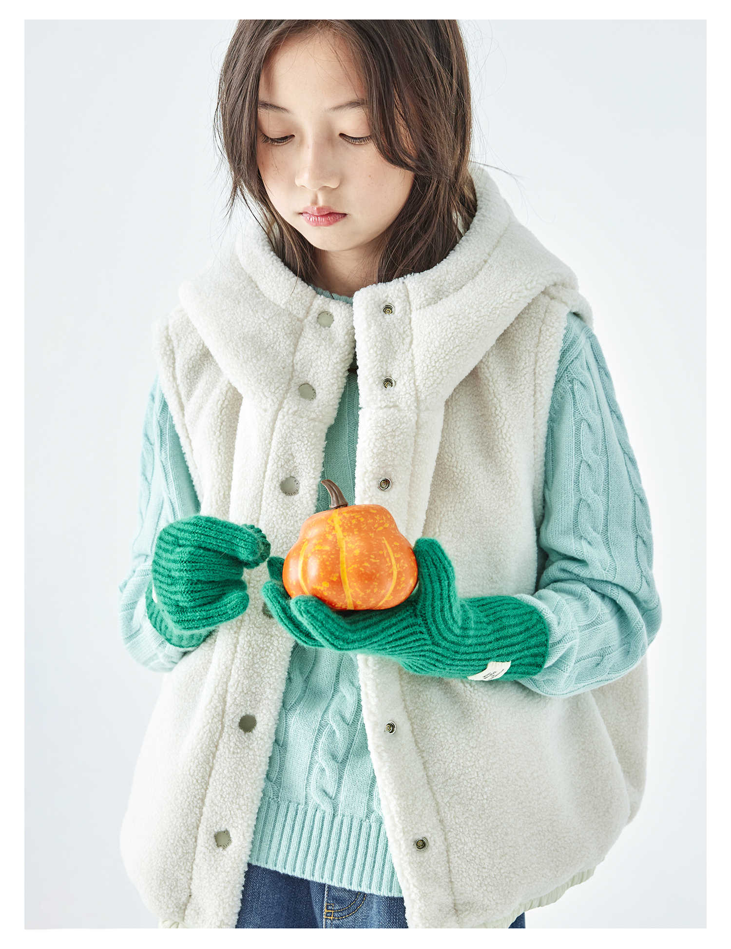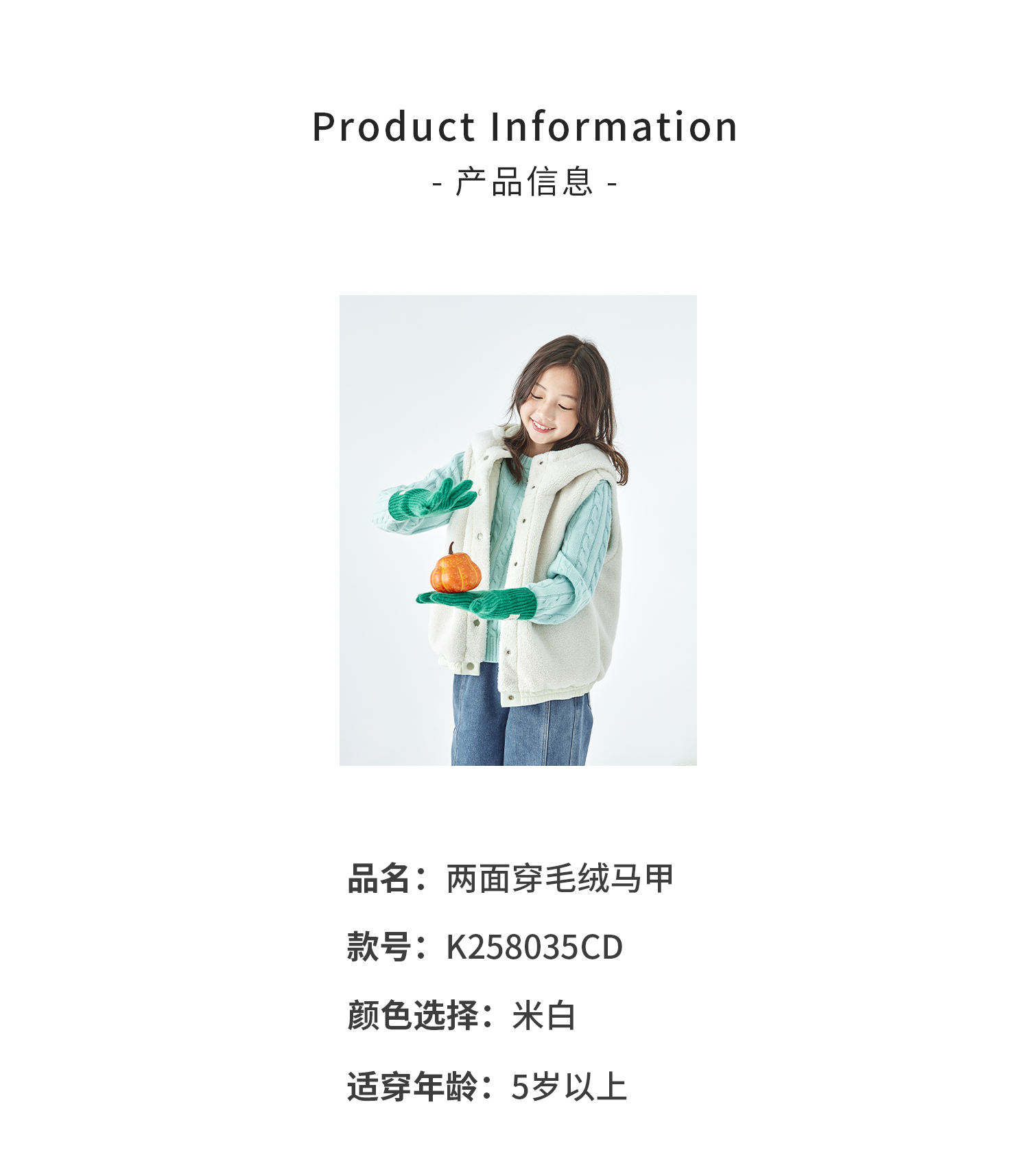棵初25年冬季新款亲子中大女童两面可穿毛绒马甲柔软三防面料上衣