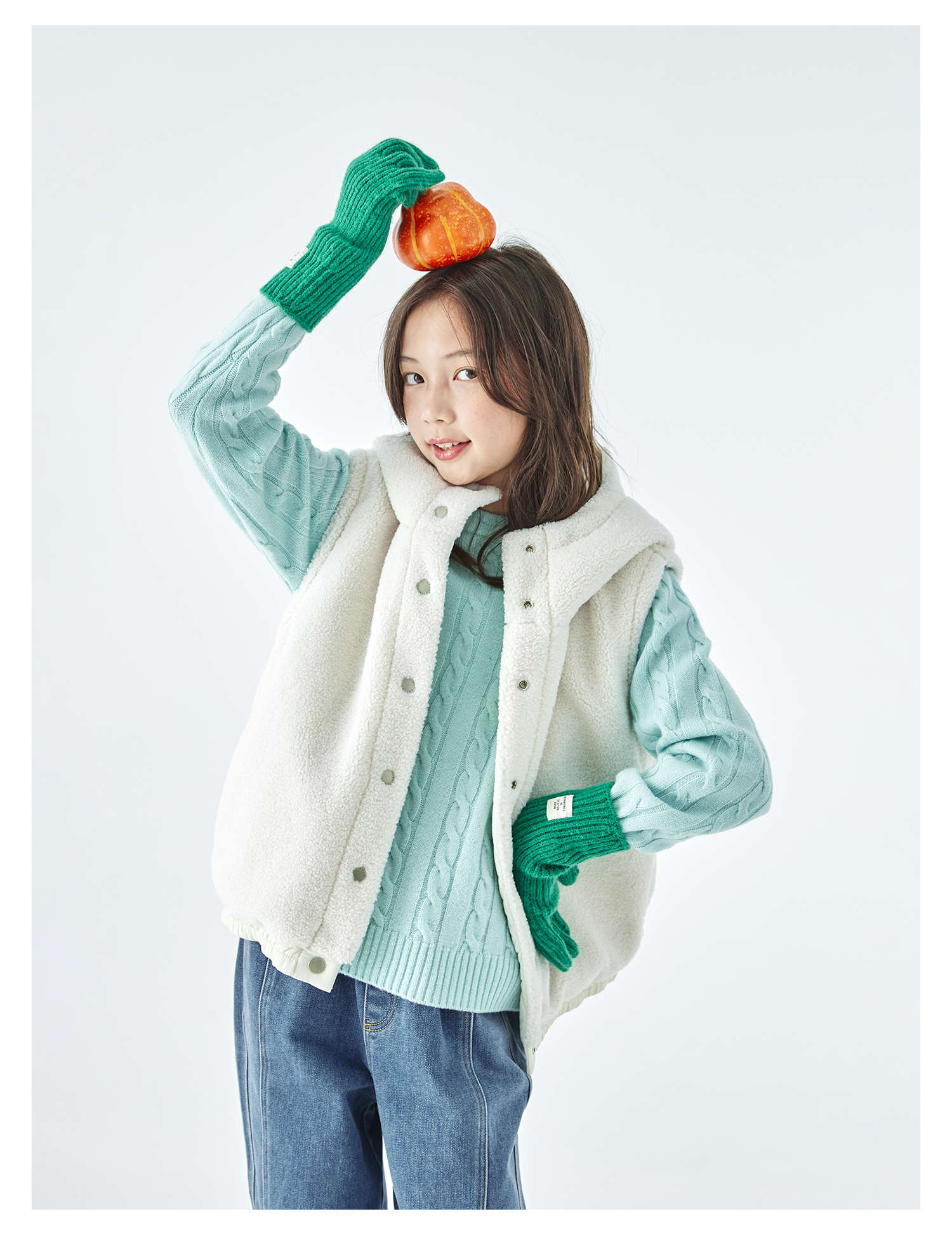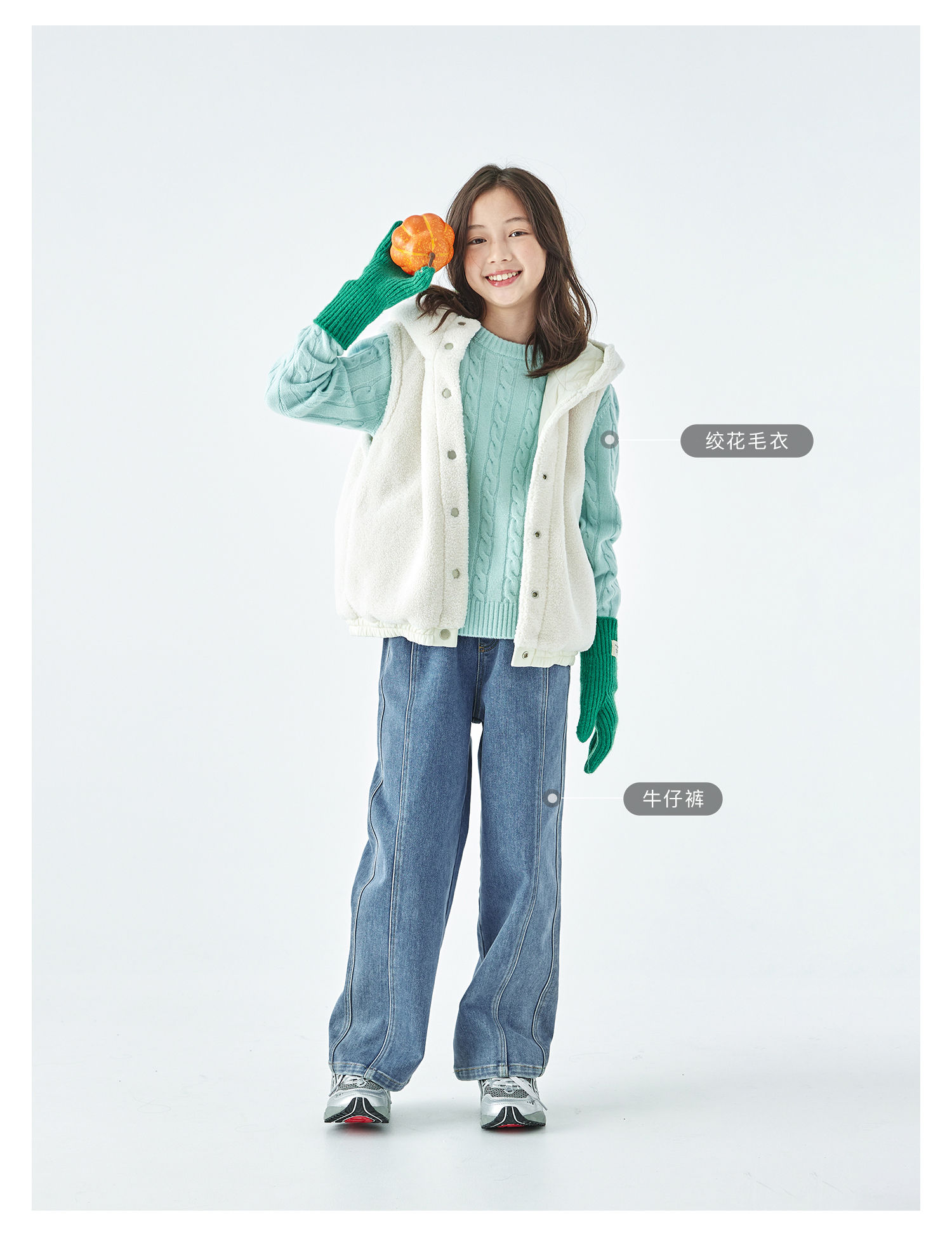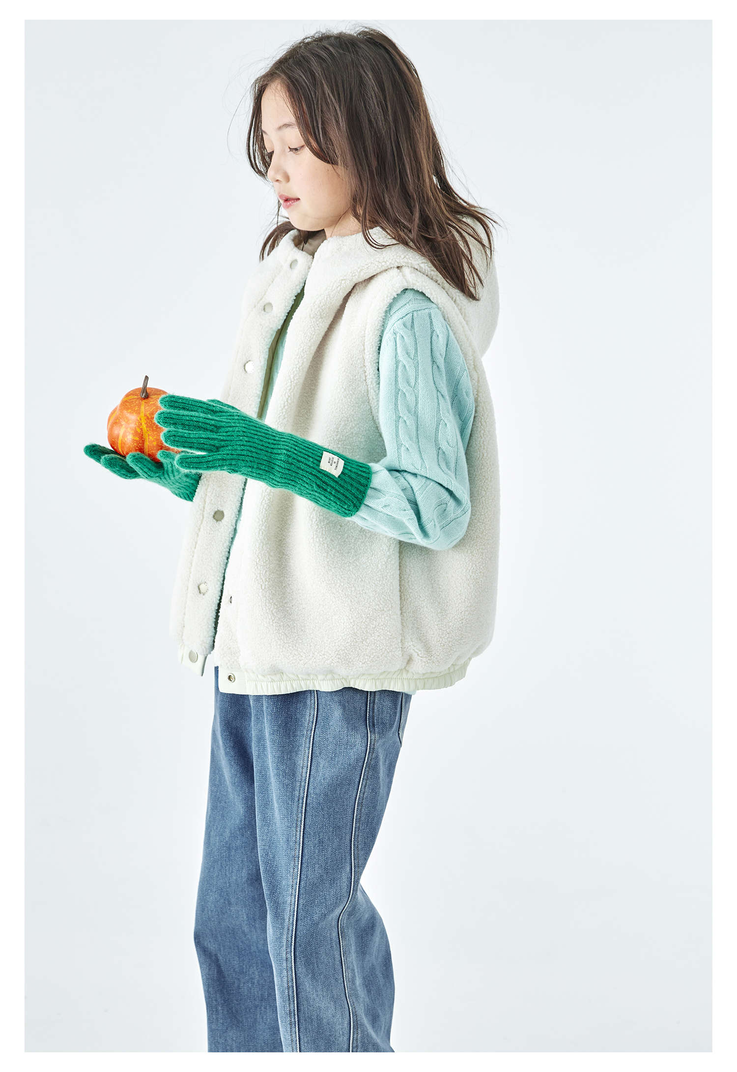 棵初25年冬季新款亲子中大女童两面可穿毛绒马甲柔软三防面料上衣