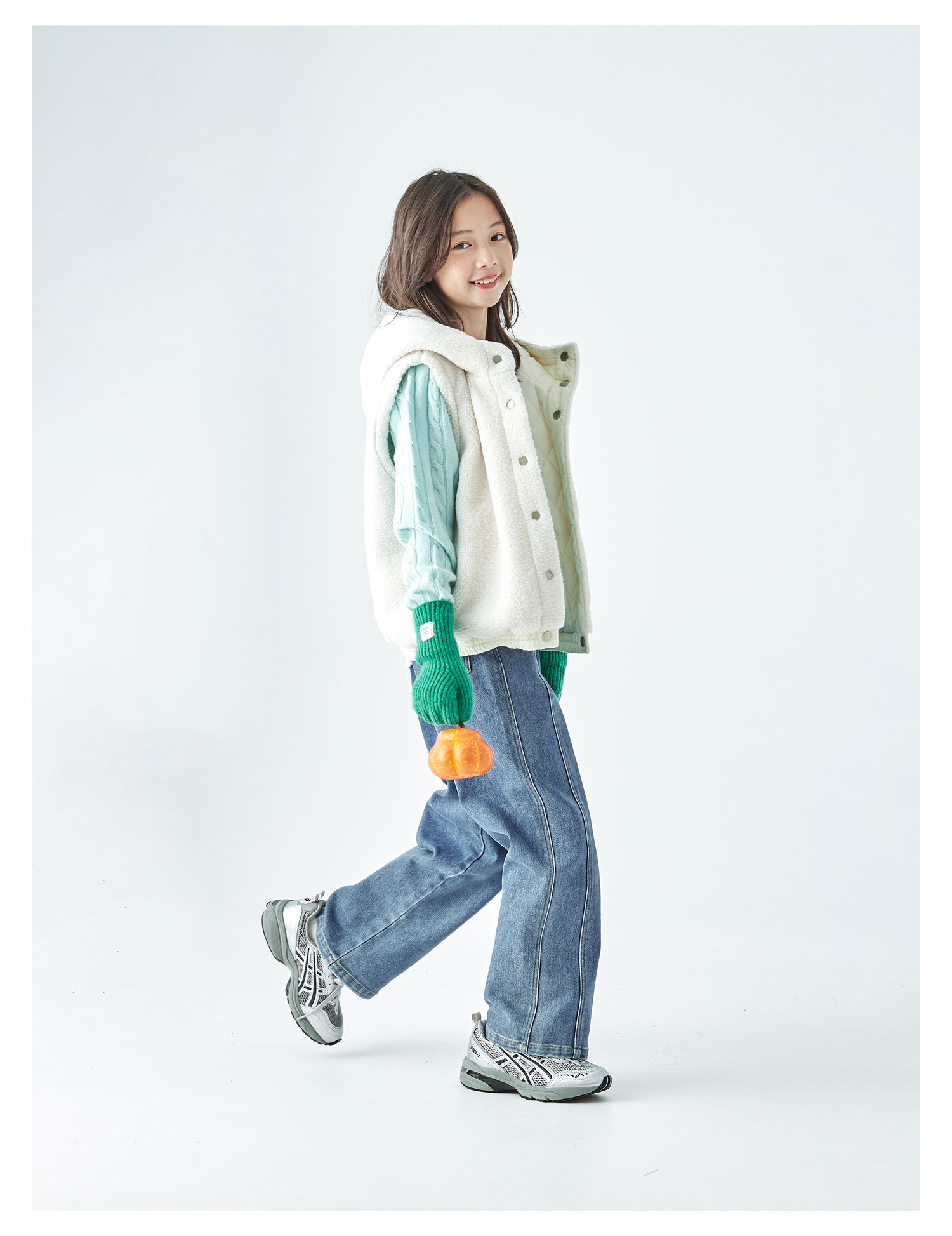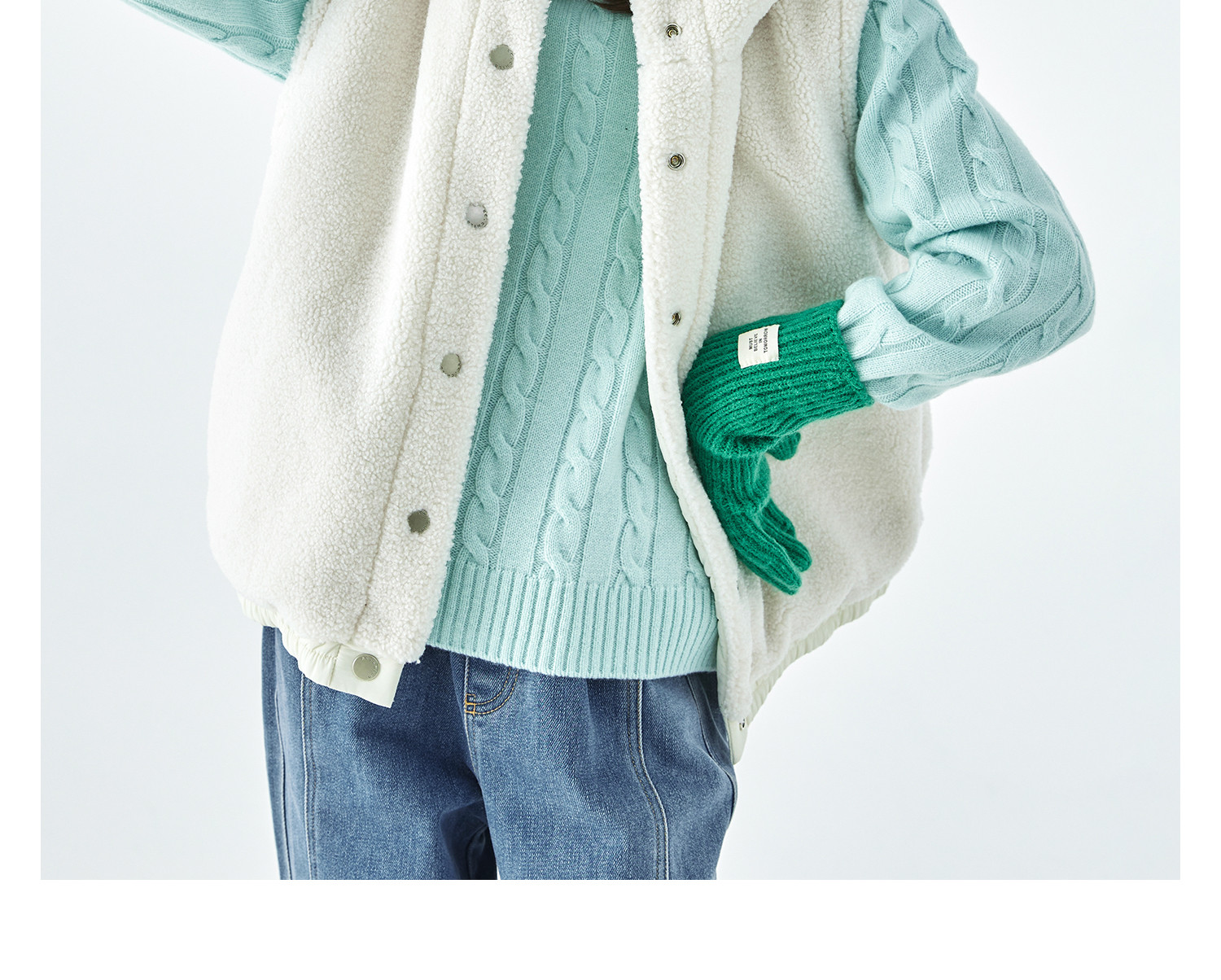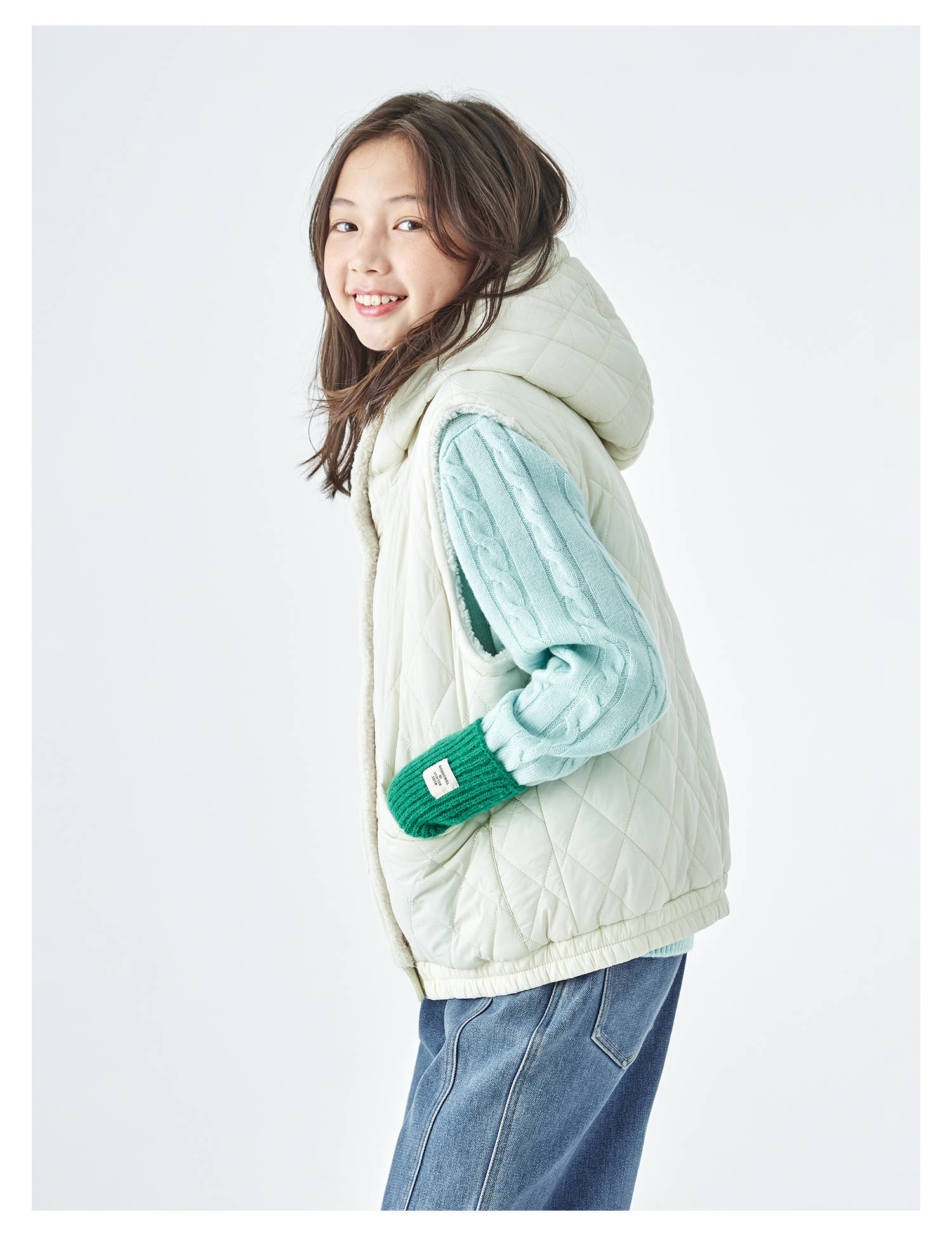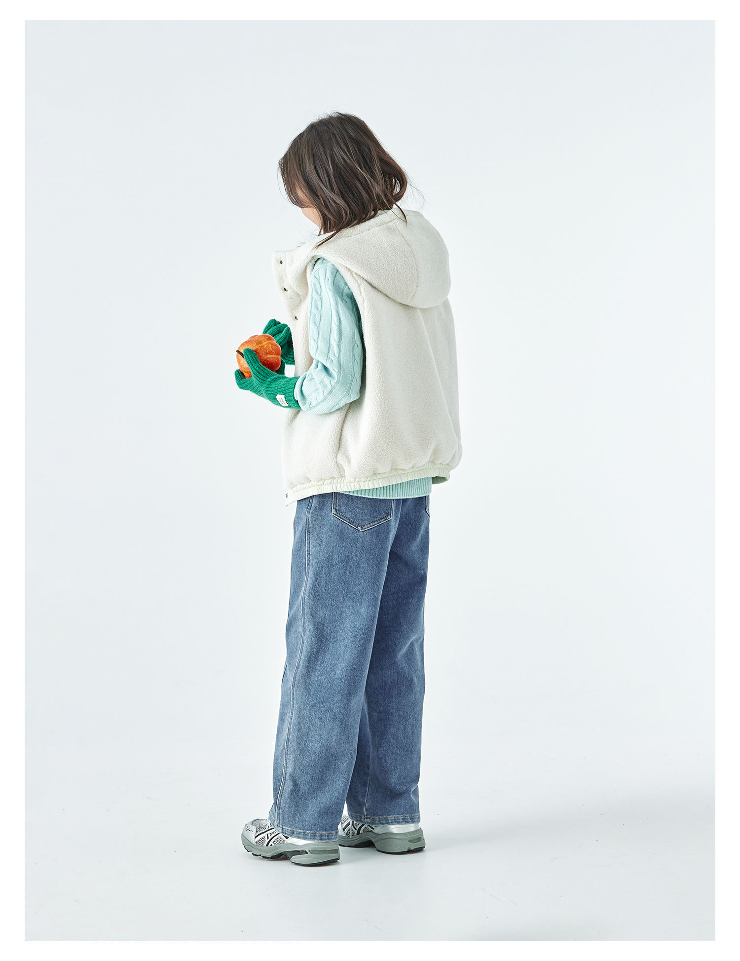 棵初25年冬季新款亲子中大女童两面可穿毛绒马甲柔软三防面料上衣