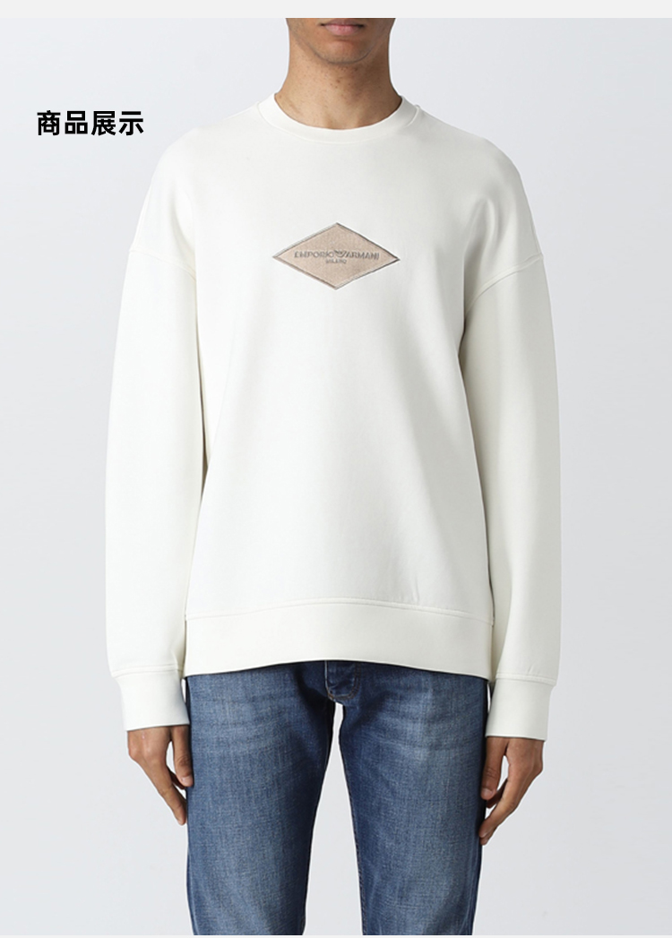 EMPORIO ARMANI 阿玛尼 男士棉质徽标印花圆领长袖卫衣 白色 3R1MDD 1JHSZ 0101