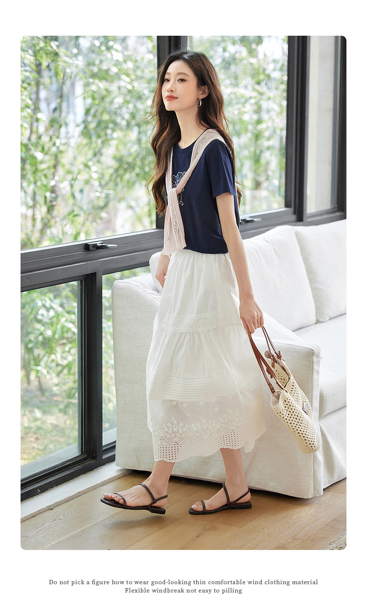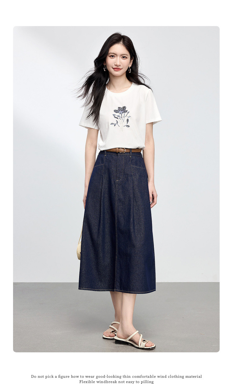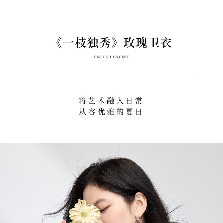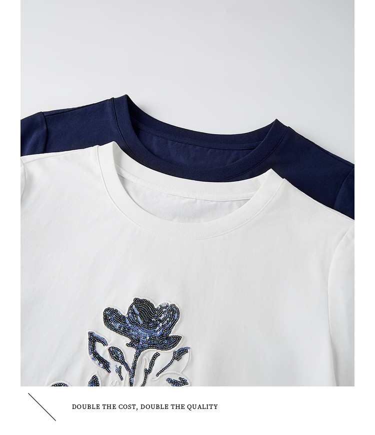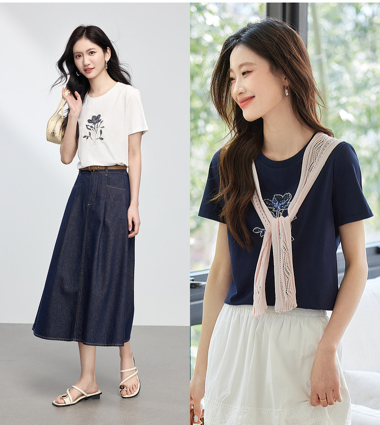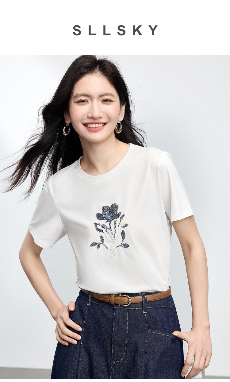 【周四狂欢价】熙世界90%棉玫瑰印花T恤25夏新款透气舒适女刺绣短袖休闲套头上衣