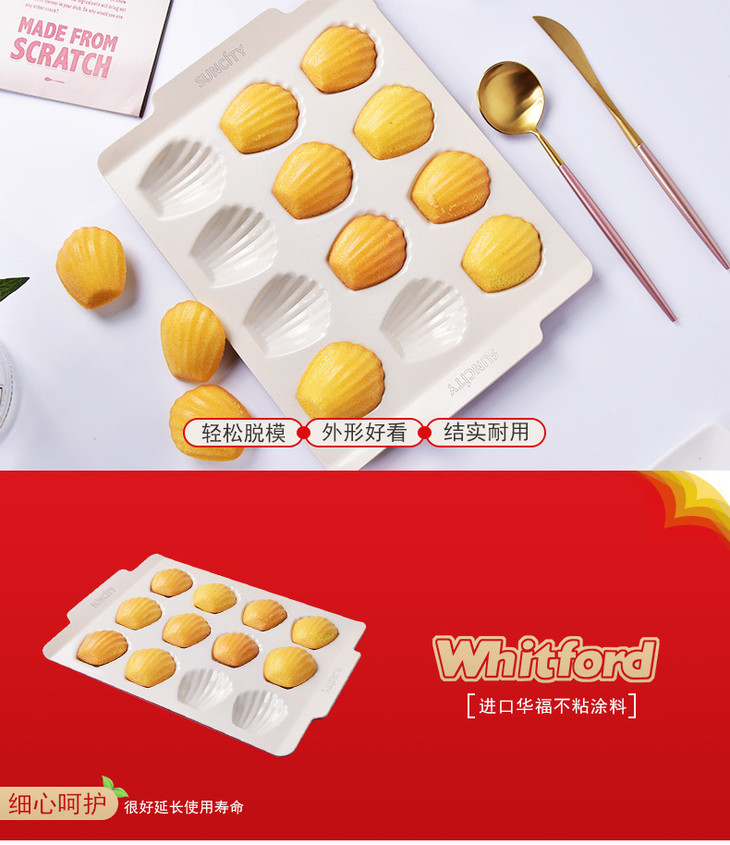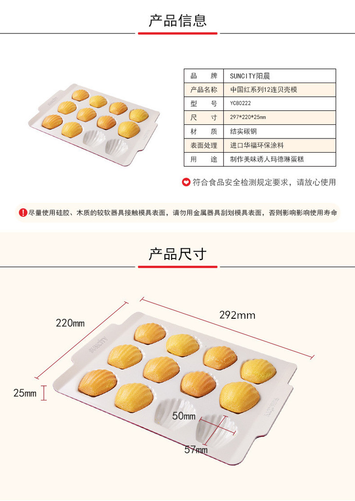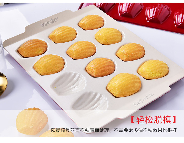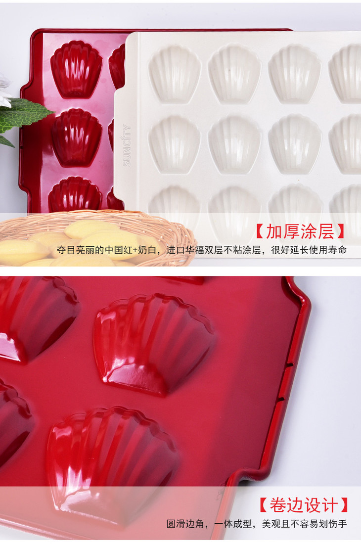 阳晨中国红系列12连贝壳盘 玛德琳不粘盘 贝壳模具