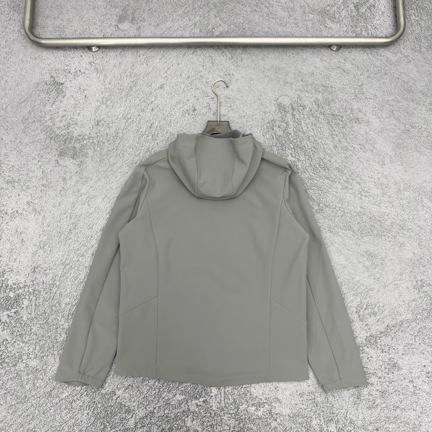 新款男士连帽软壳冲锋衣夹克外套!官网同步在售,客供Gore-Tex软壳弹力防风防水面料,内里复合拉绒,保暖舒适!3D立体裁剪版型,胸前精美小标logo烫印,衣领字母刺绣!两侧拉链口袋,拼接松紧袖口,包边套节,做工细节都无可挑剔,上身效果一级棒,喜欢的同学们不要错过!