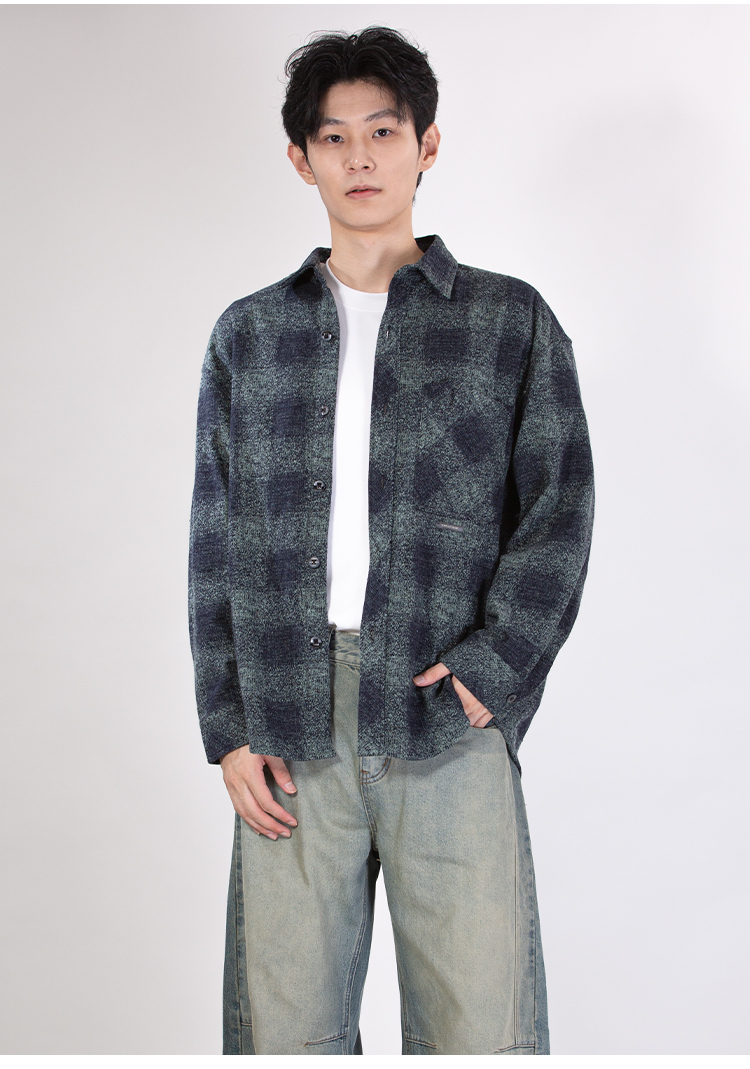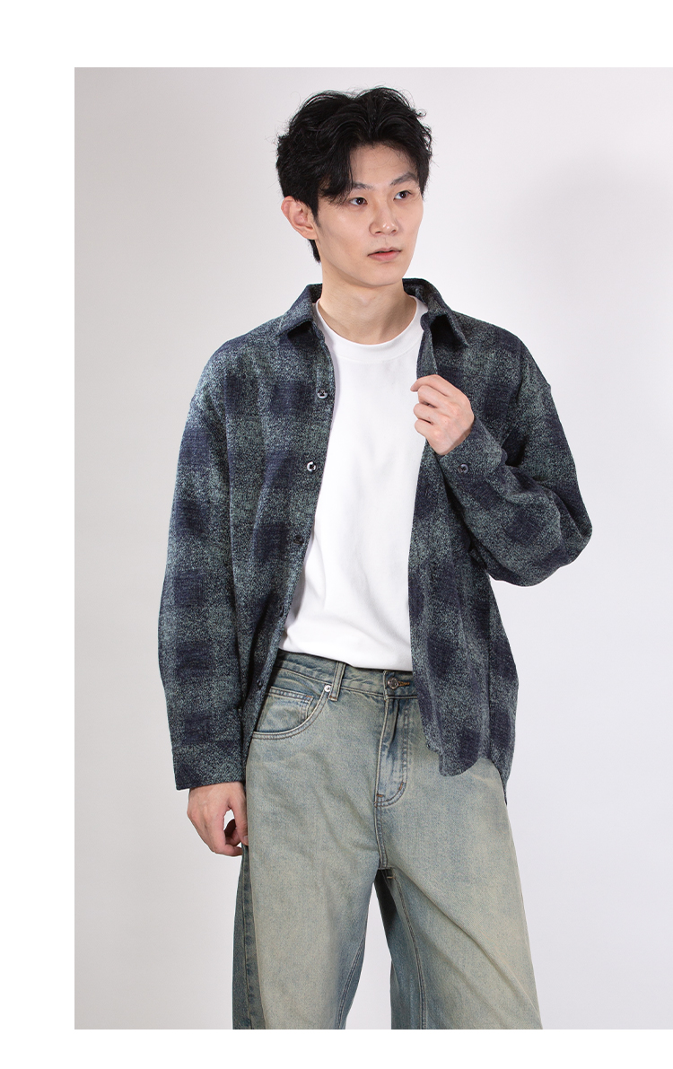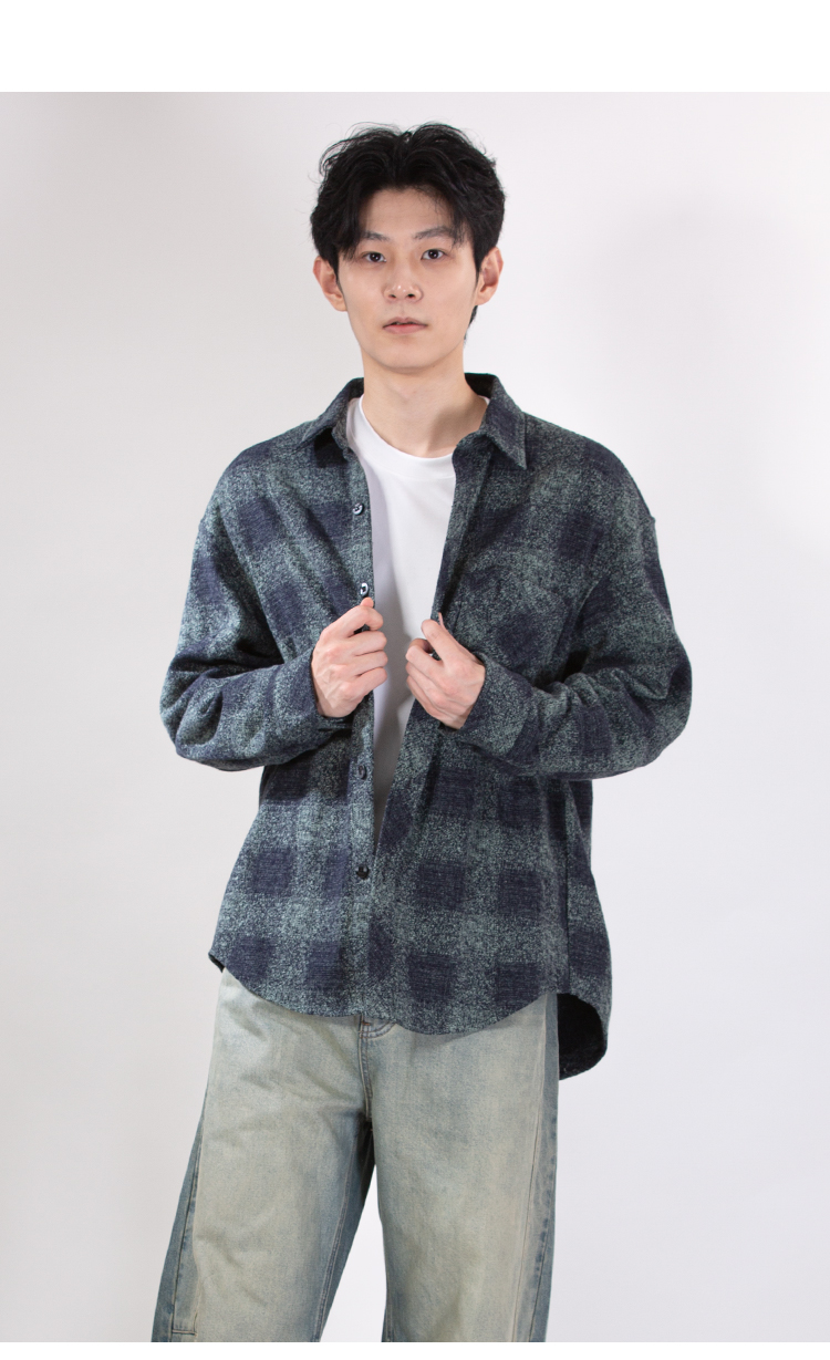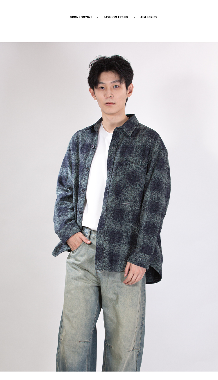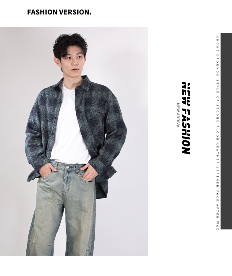 DRONKOO 2025 翻领左贴袋织唛撞色大格纹微阔中厚衬衣外套