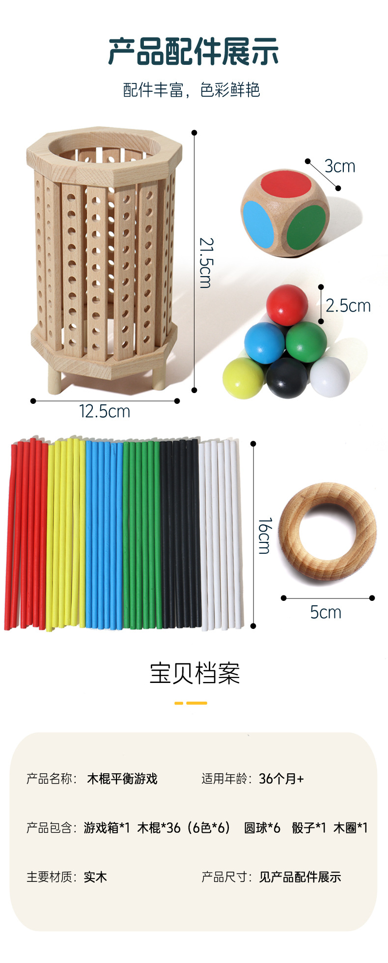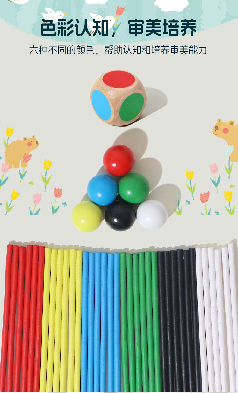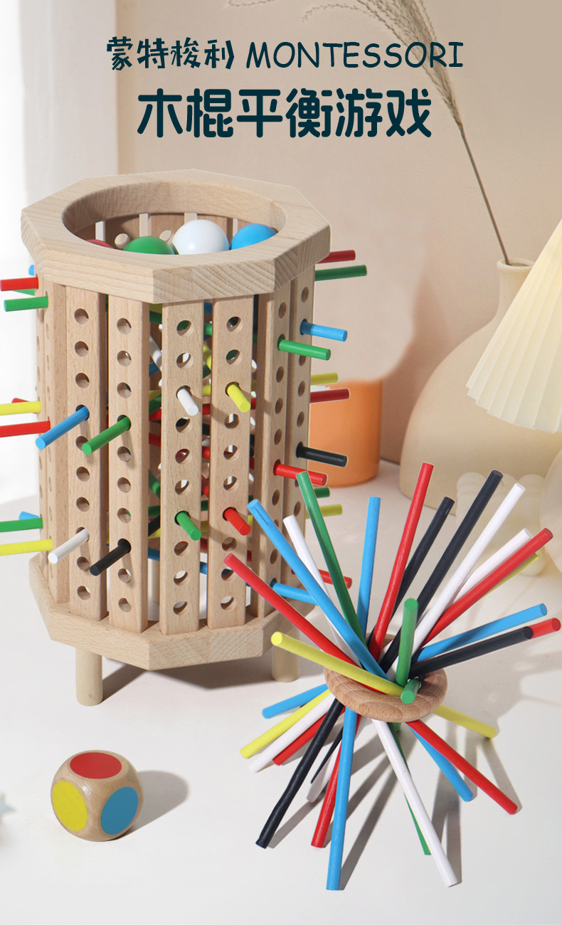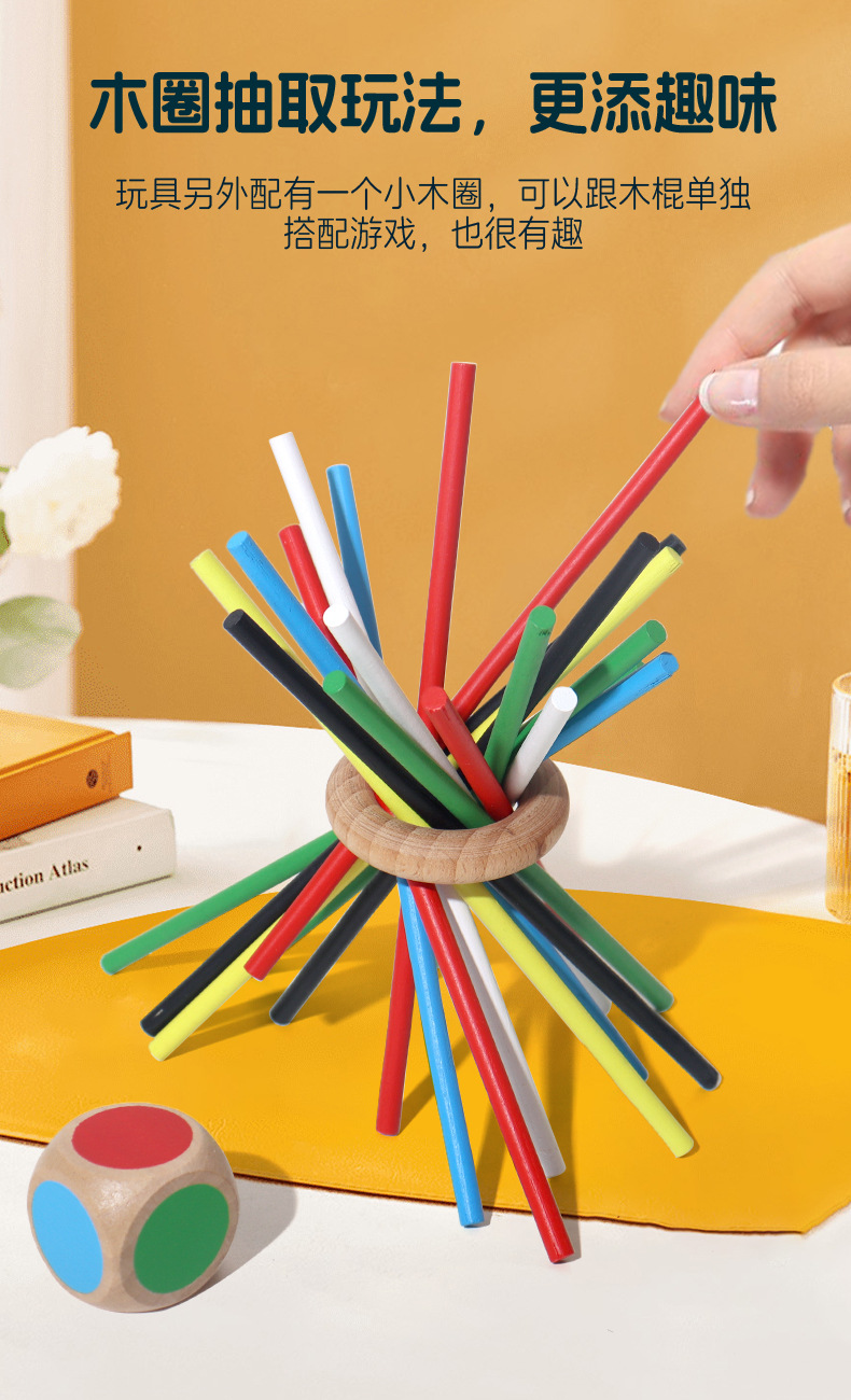 【一起来挑战平衡力】木棍游戏骰子游戏 木板游戏彩色亲子互动玩具 数学蒙特梭利游戏 亲子互动