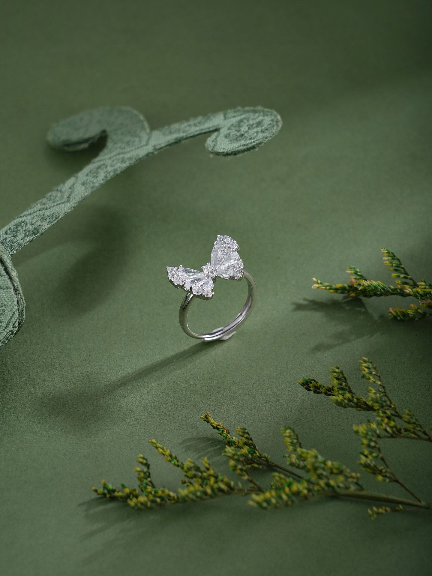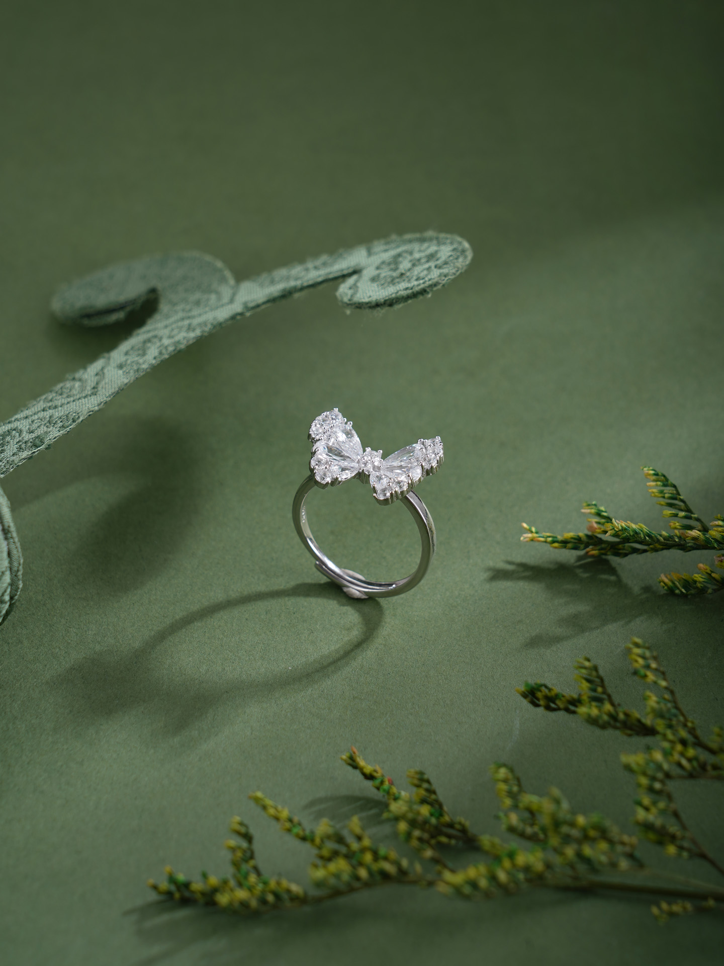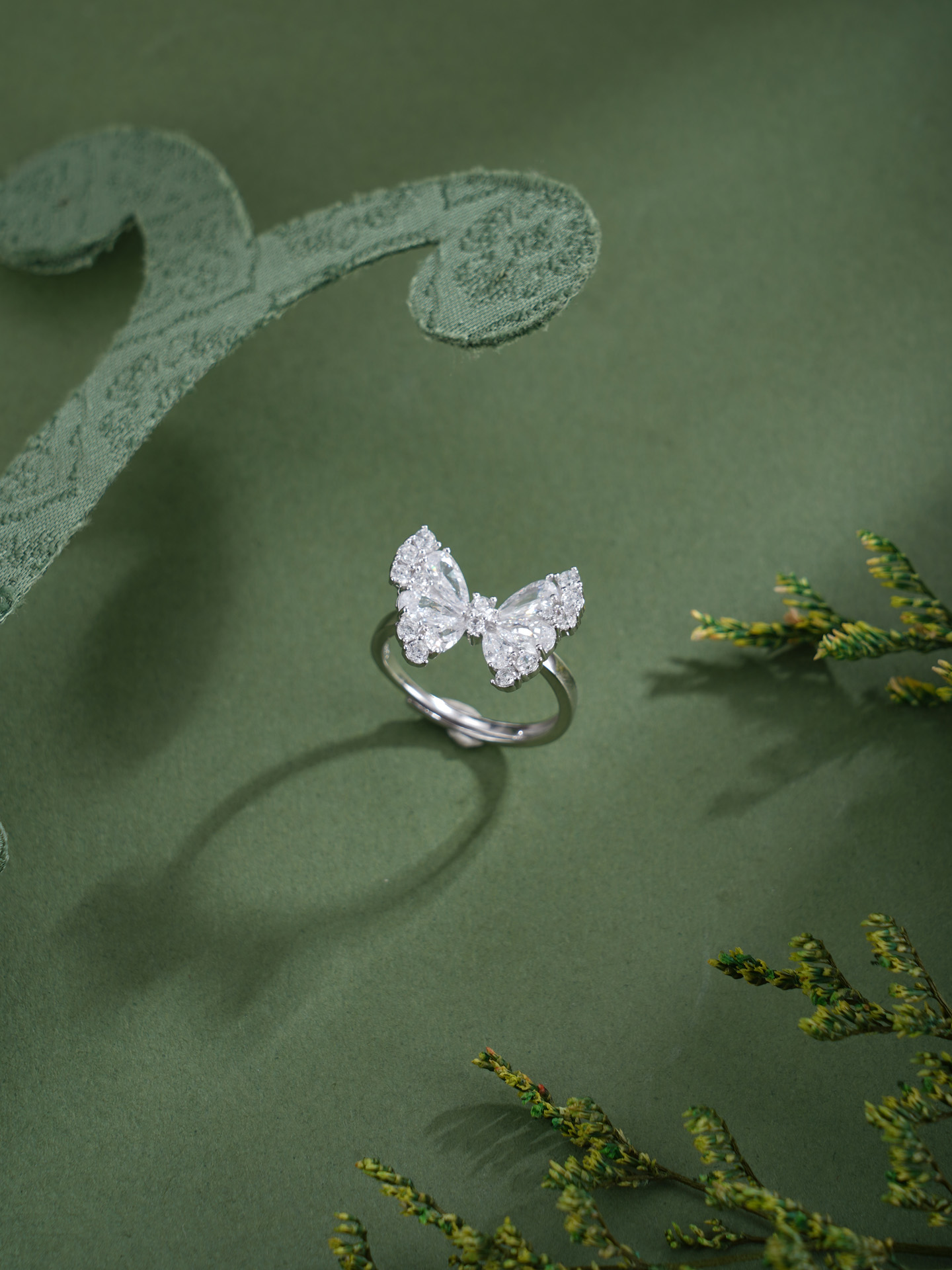 【寓意】:纯银戒托点缀锆石蝴蝶,如雪中精灵轻展羽翼。寓意生命如蝶,破茧而生,不染尘埃。