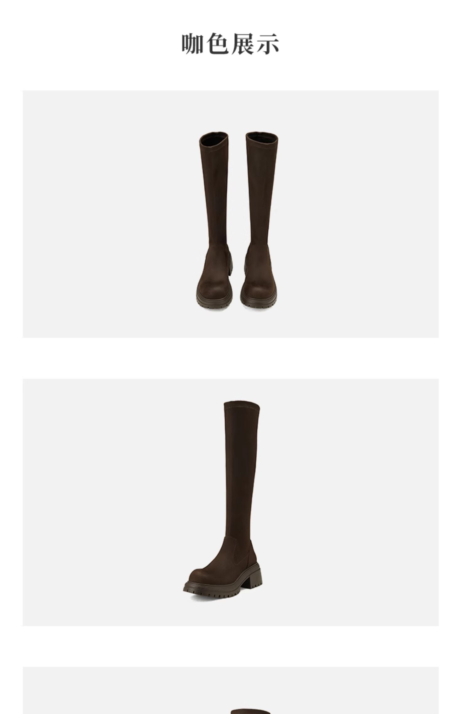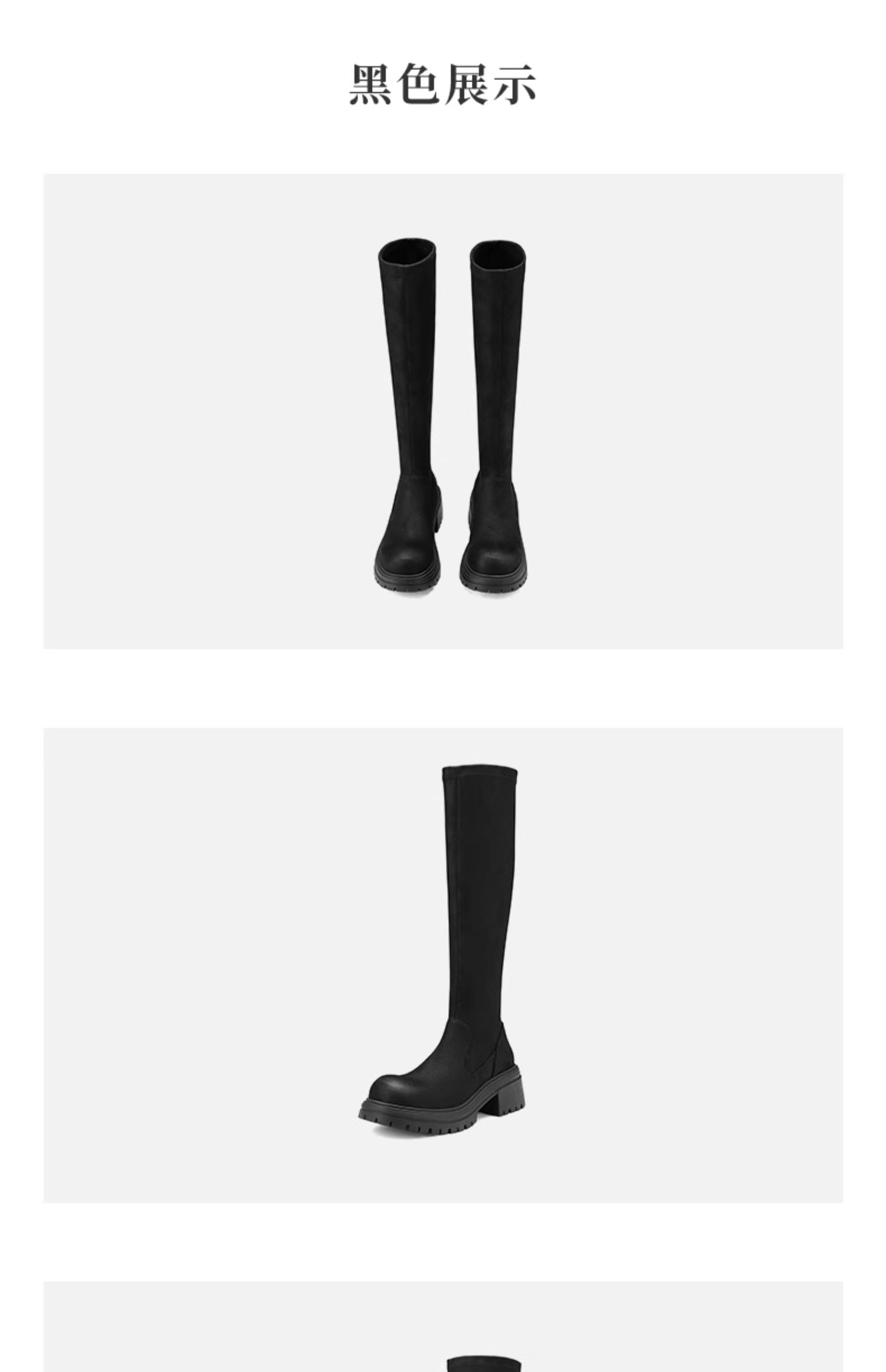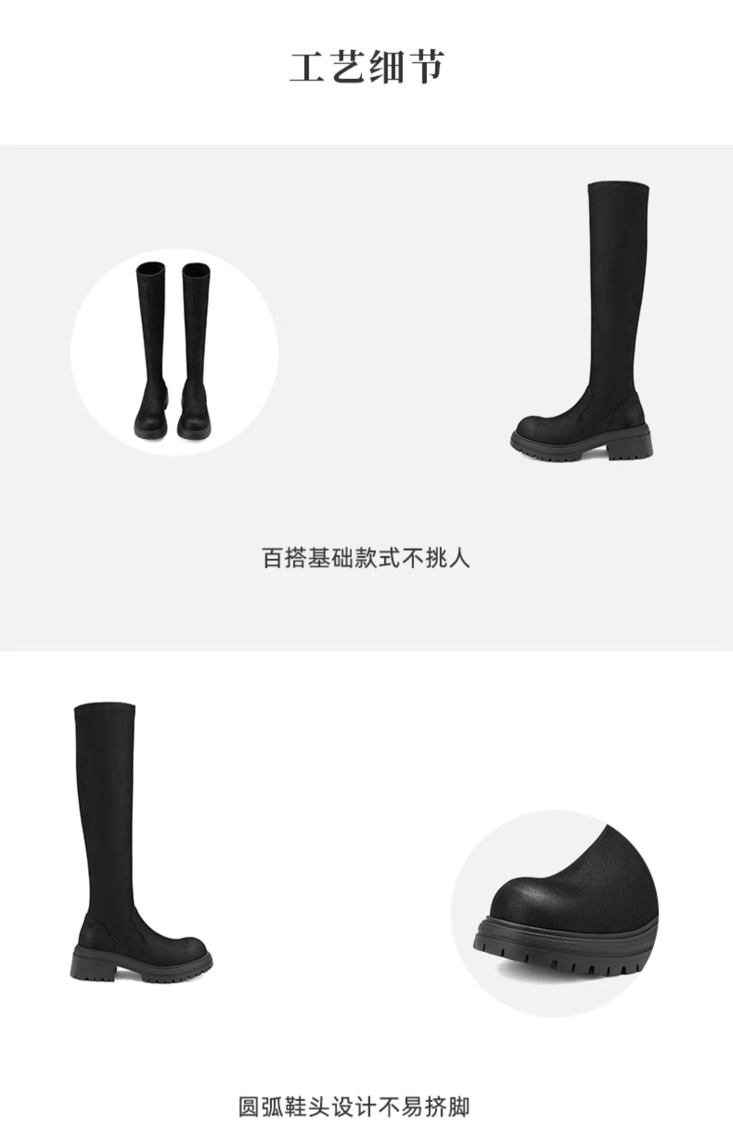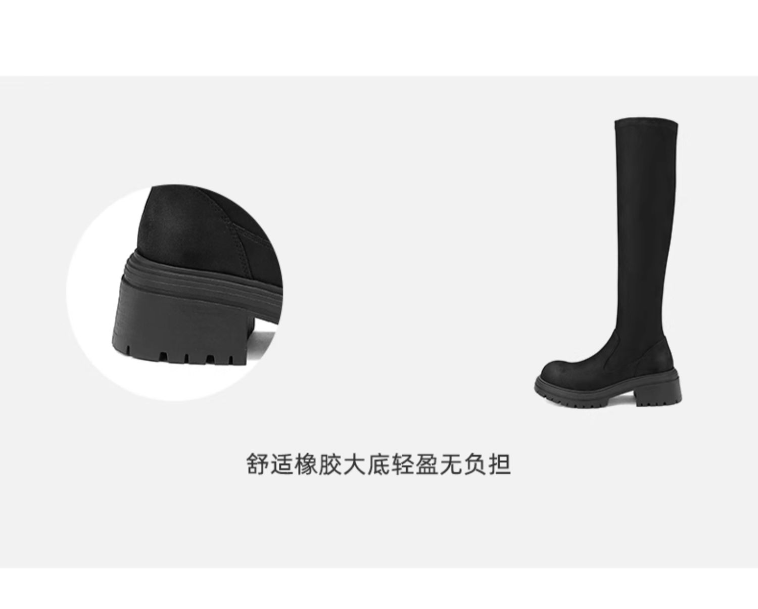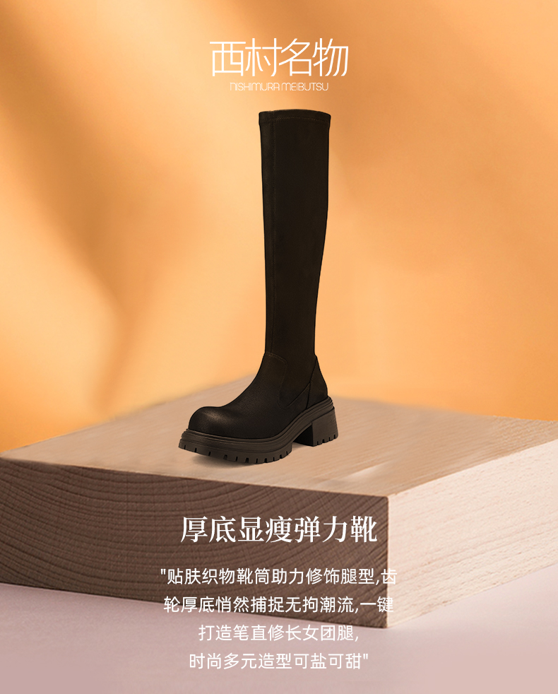 西村名物2024冬季新款百搭简约基础圆头厚底显瘦弹力靴女X24DQ47351