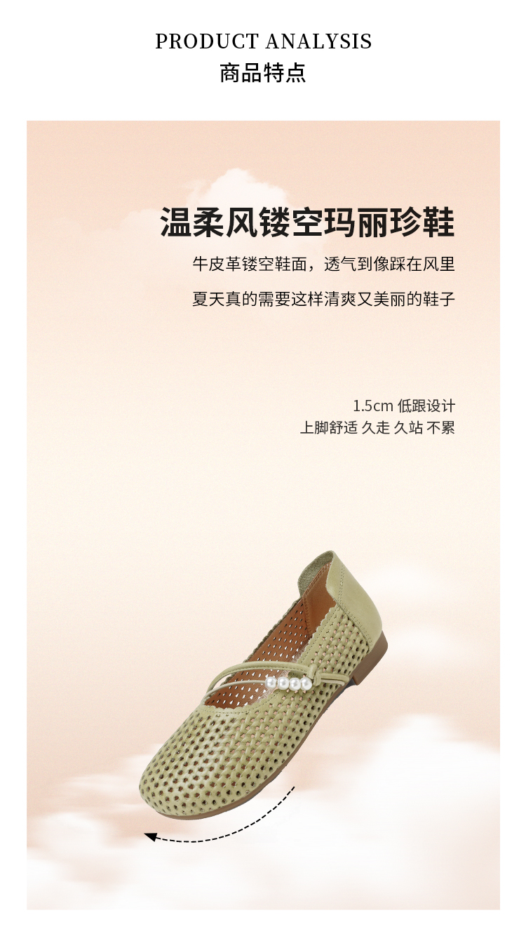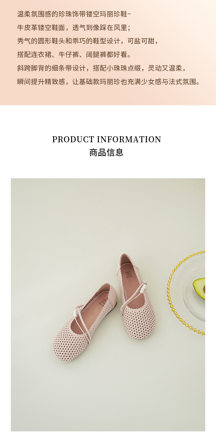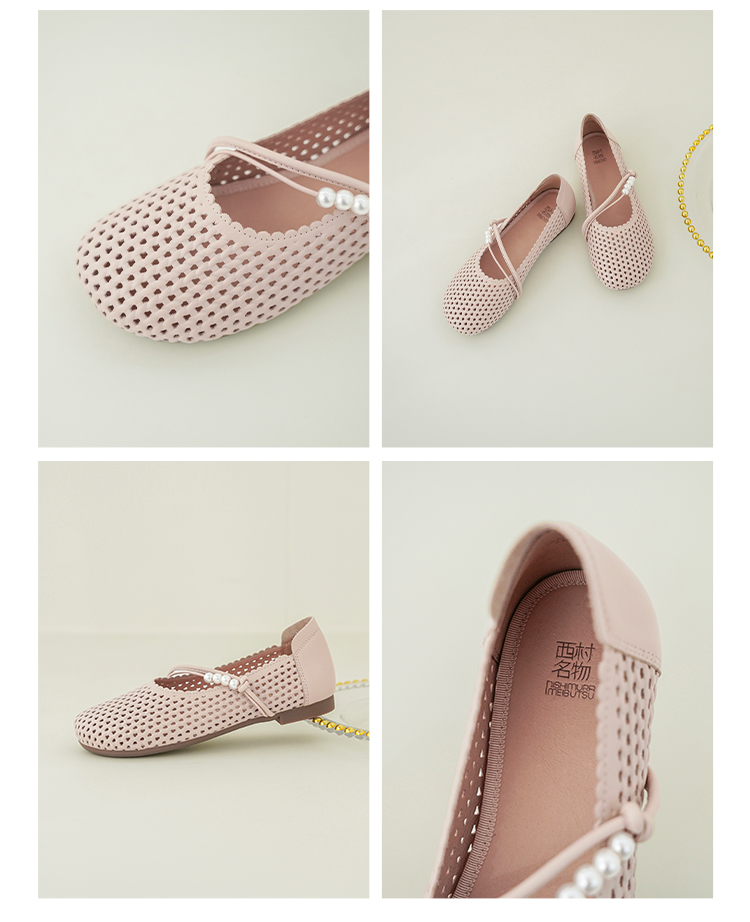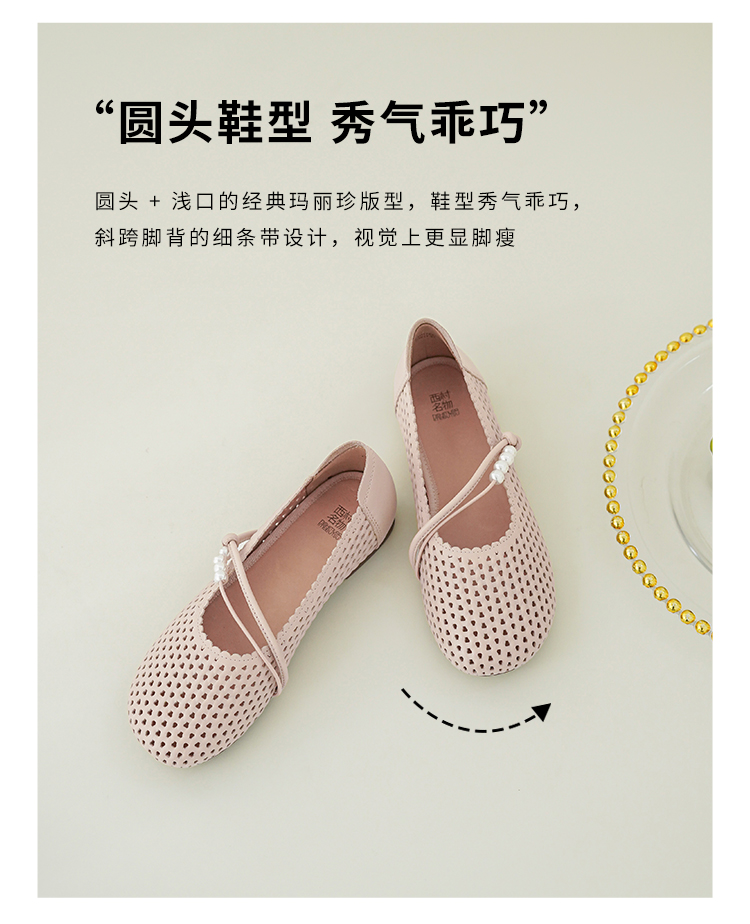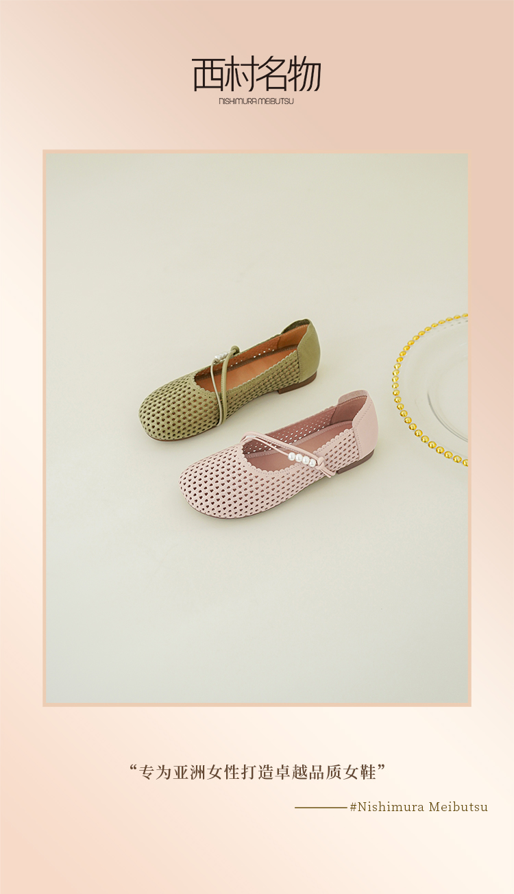 【牛皮革】西村名物2026年春季新款猪皮内里内垫舒适平底镂空玛丽珍鞋洞洞空鞋T26AH17841