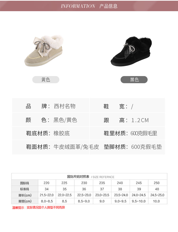 西村名物2021年秋冬新款时尚毛茸短筒女士雪地靴保暖女靴T21CM36441