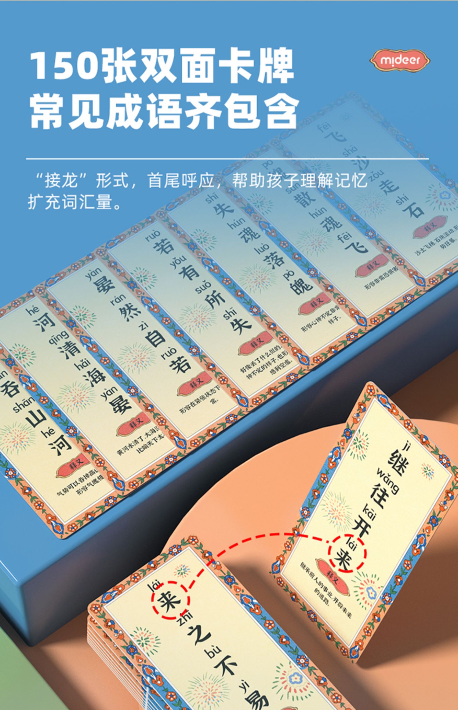 儿童成语接龙扑克牌益智亲子游戏小学生启蒙识字卡幼儿猜猜乐卡