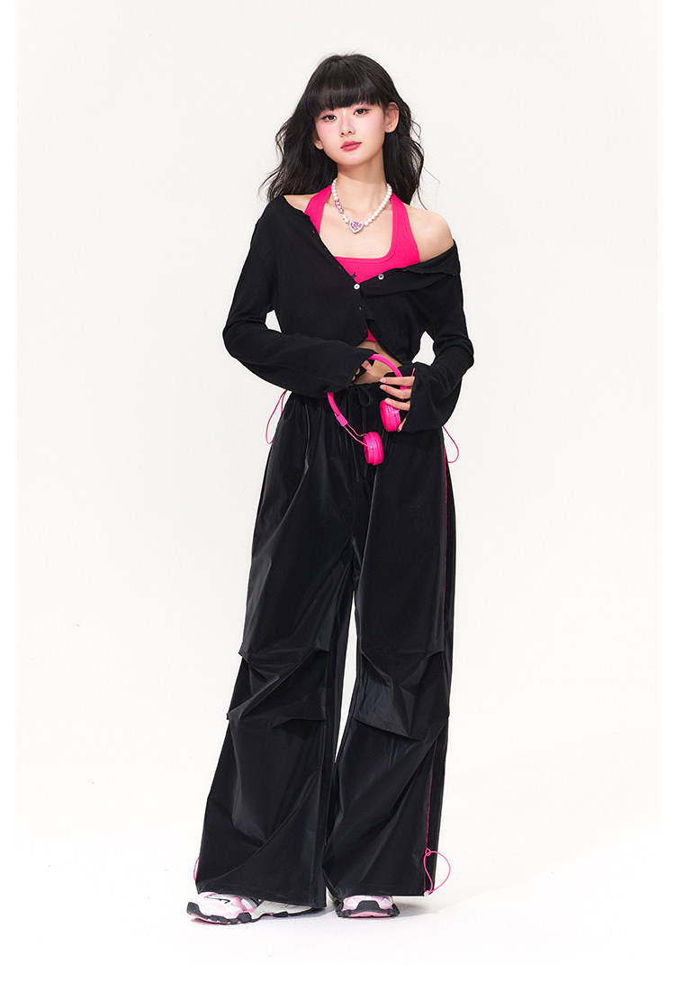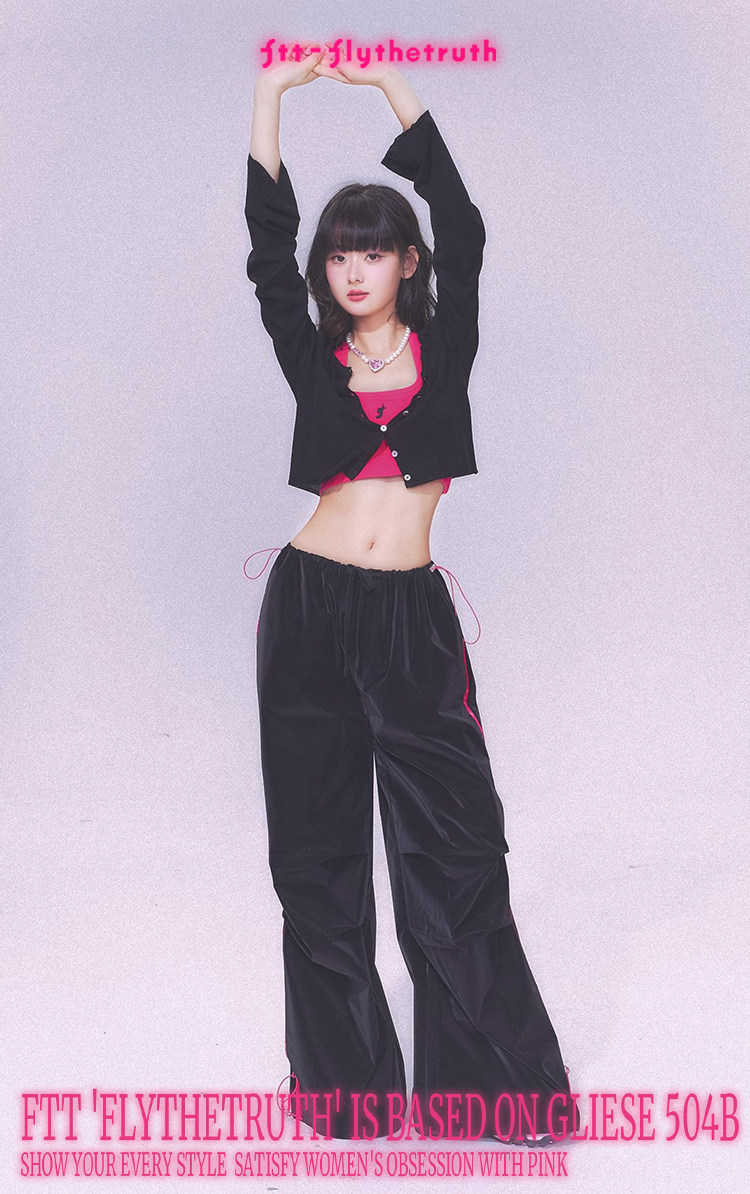 FTT FlyTheTruth『黑粉小烟熏』 美式工装休闲裤女秋直筒阔腿裤子