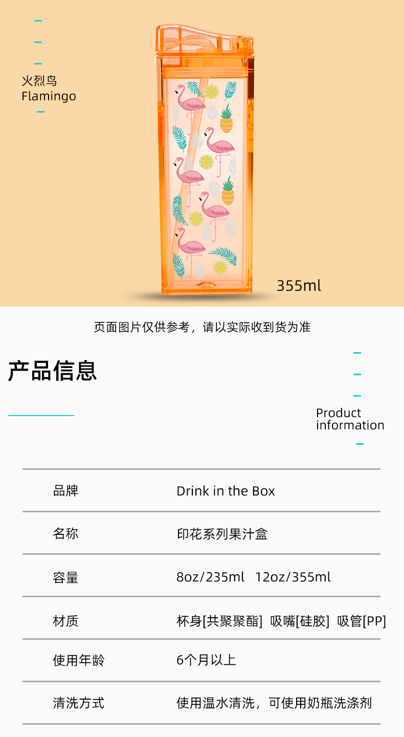 加拿大Drink in the Box儿童果汁杯印花系列吸管杯