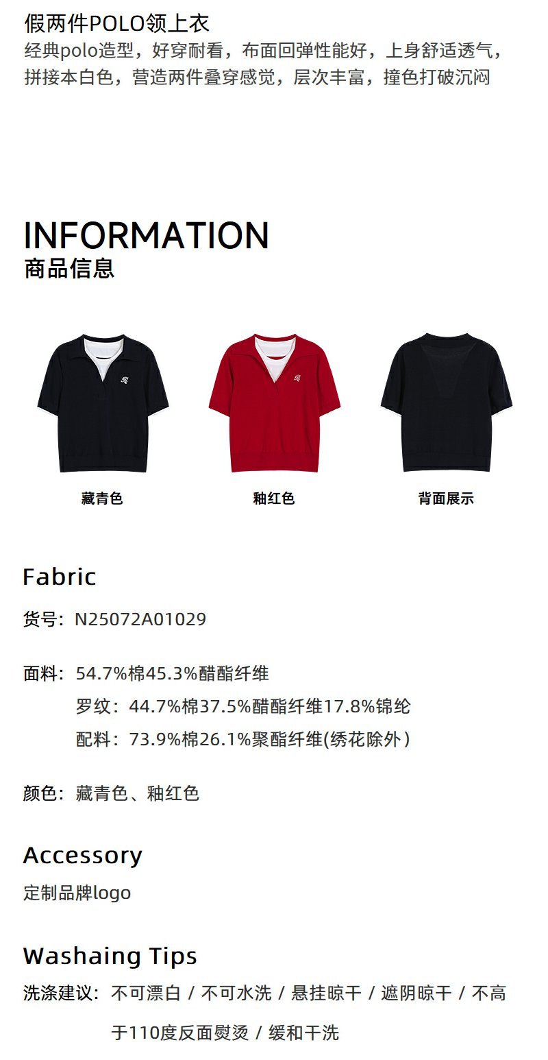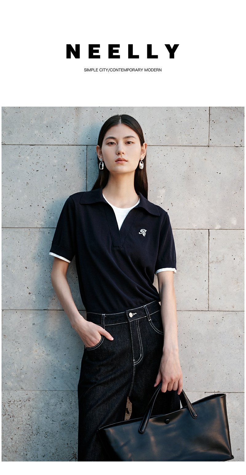 NEELLY纳俪商场同款秋季新款假两件设计感针织衫女耐看气质上衣N25072A01029
