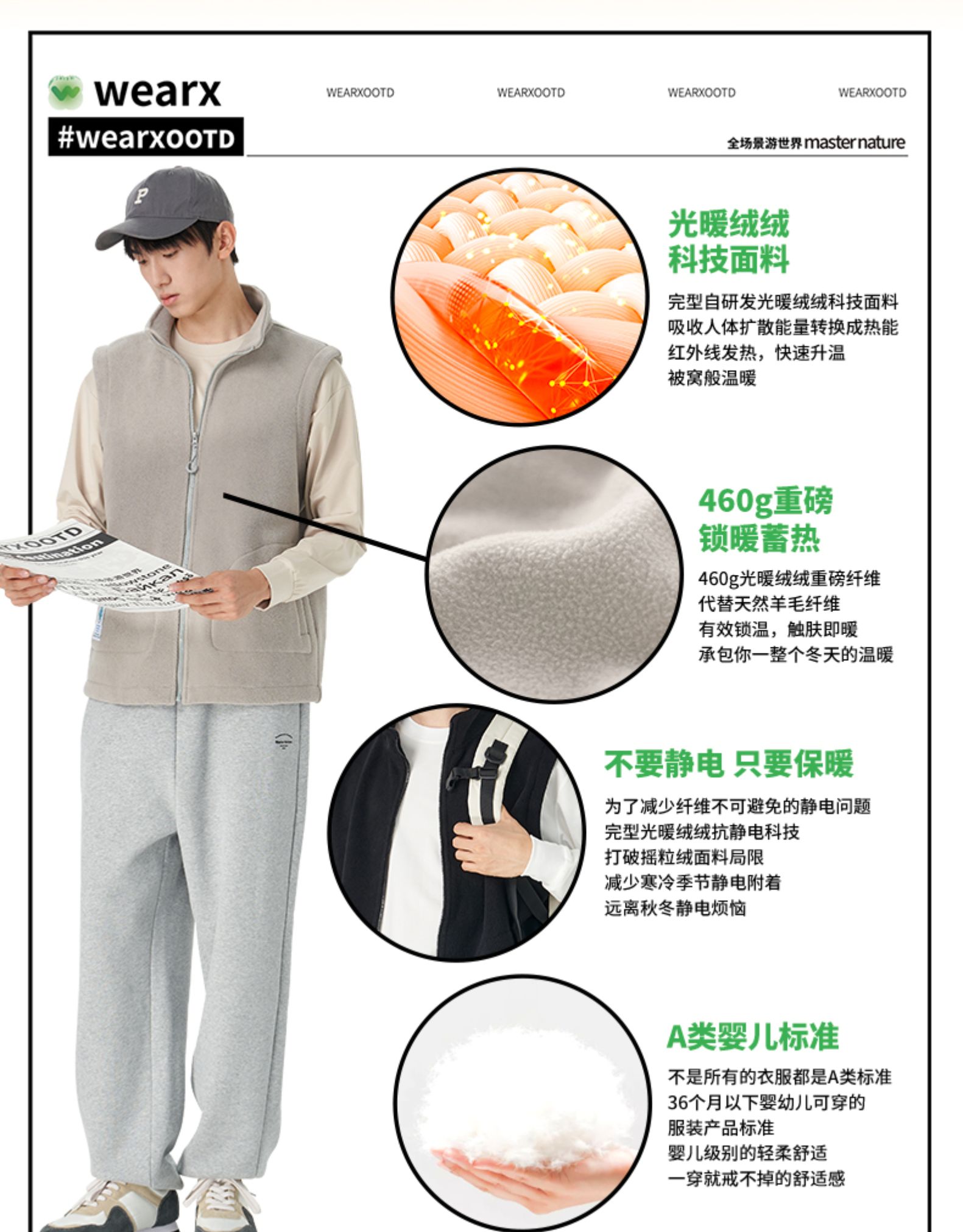 完型成人马甲光暖绒绒衣冬季长袖抓绒衣马甲