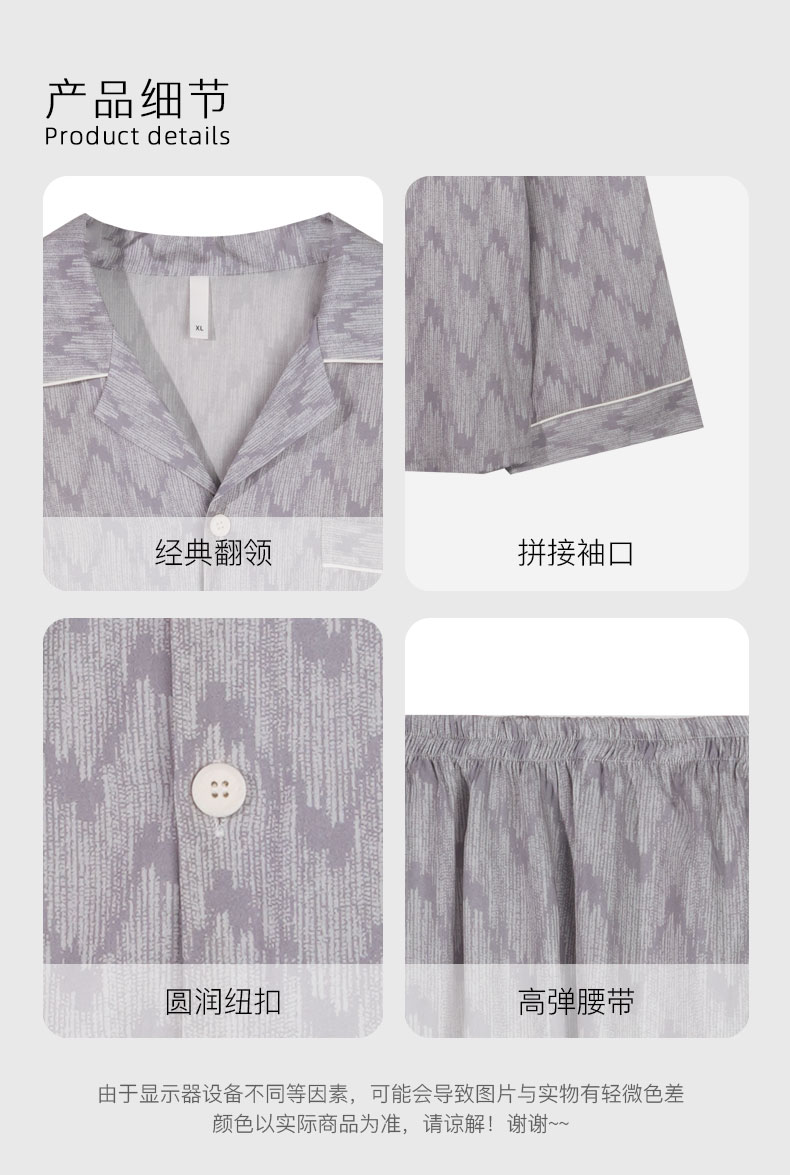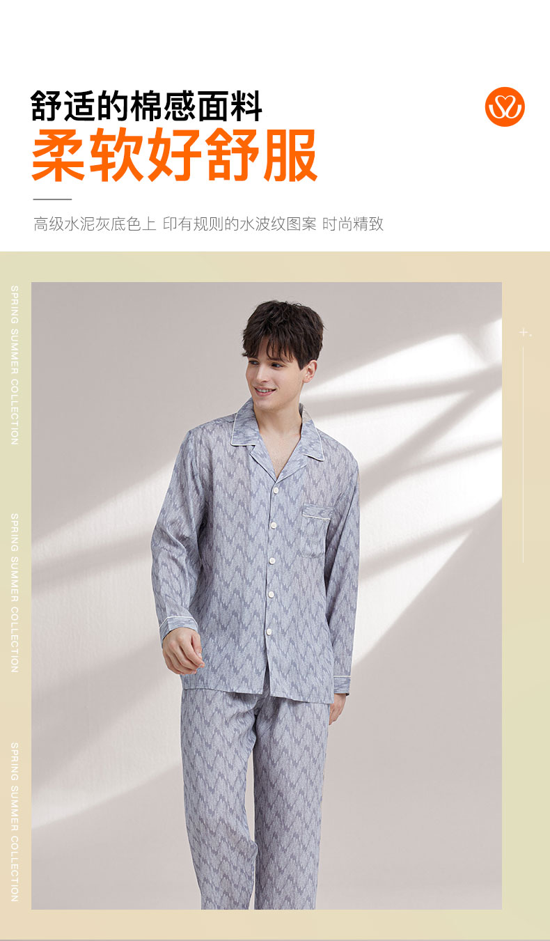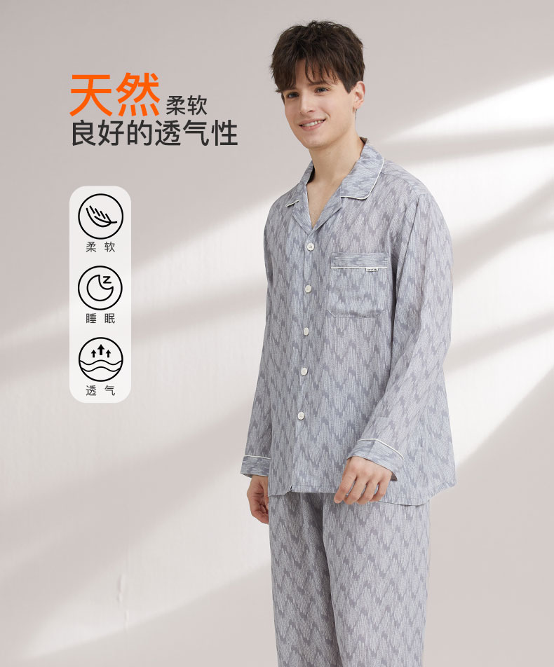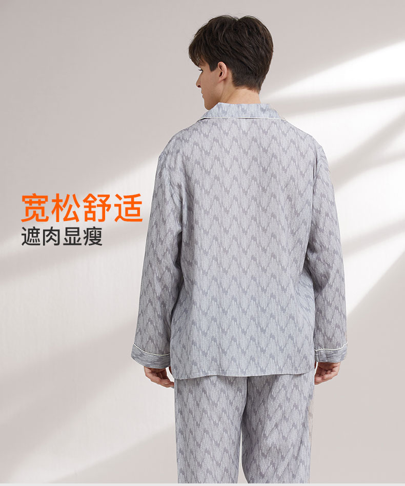 【119元超值新品】【秀黛】领印花长袖套装莱赛尔沁氧棉水波纹白嵌条现代美学翻领可外穿家居服春秋款睡衣W1550008T【门店同款】