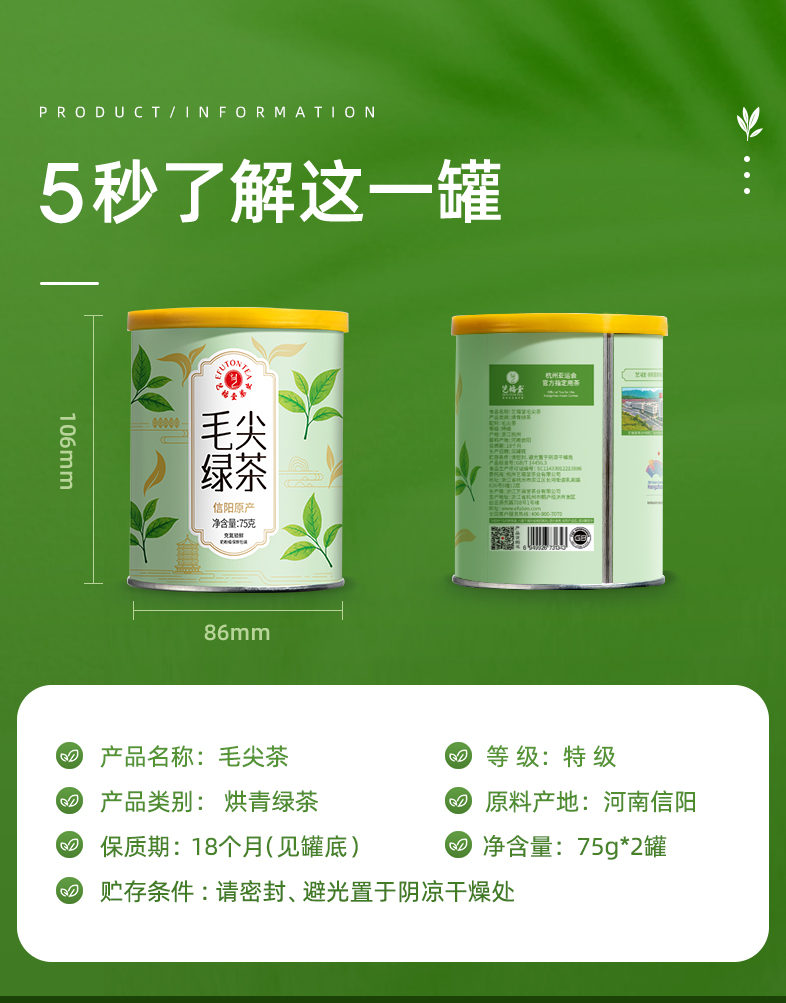 艺福堂毛尖茶75g/罐特级