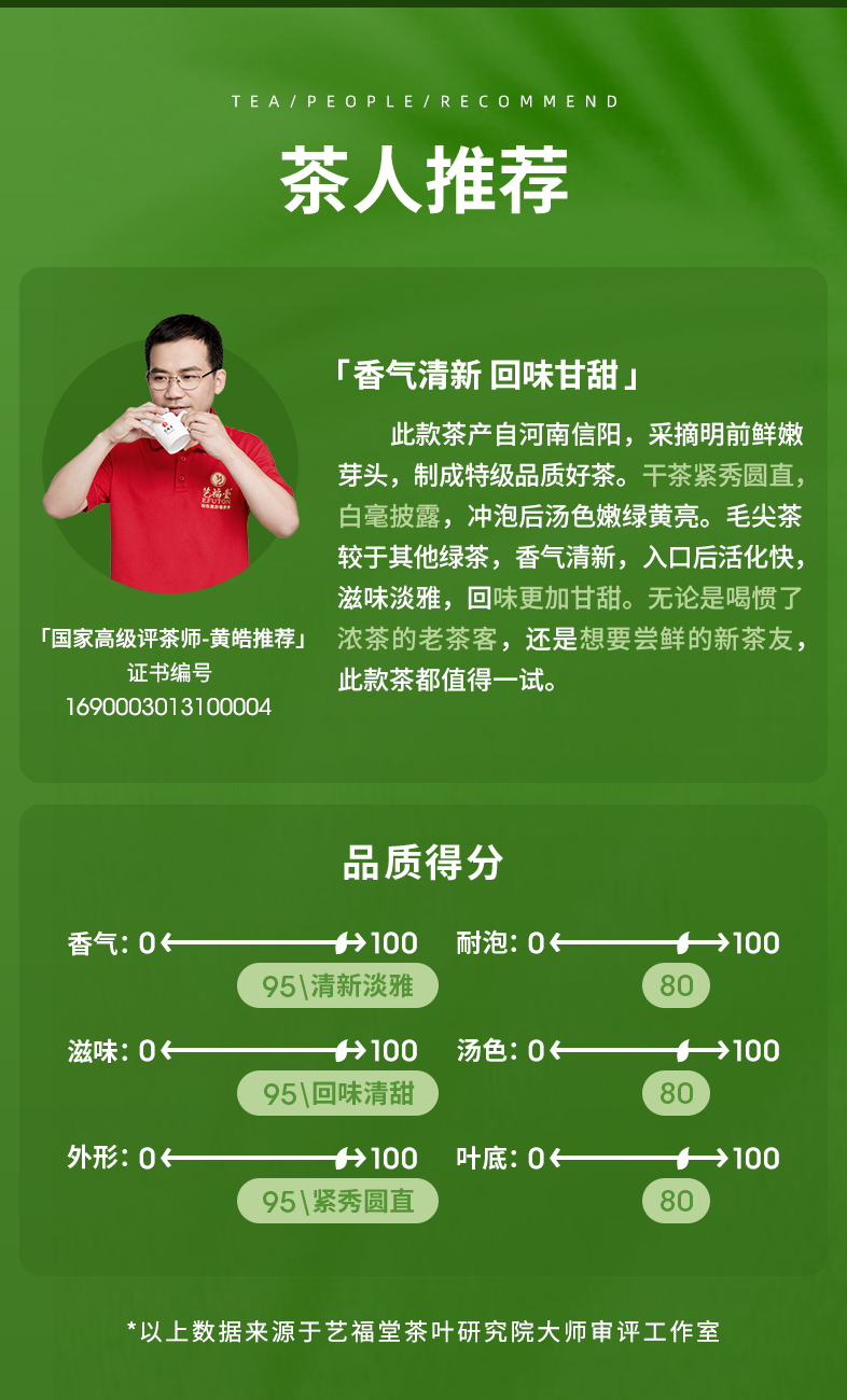 “艺福堂茶业”创立于2008年,是一家集生产、销售、科研为一体的现代茶业企业,主打西湖龙井,兼营世界各地名优茗茶及花草茶,是中国茶行业为数不多的年销售额过5亿的品牌之一,是杭州亚运会官方指定用茶!