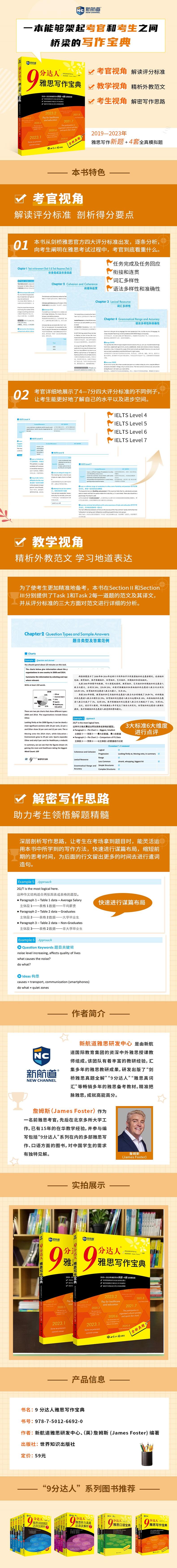 本书与时俱进更新了真题,选取了2019—2023年的高频考题,第一次从考官的角度对评分标准进行了具体的阐述。1.考官视角解读评分标准剖析得分要点本书从剑桥雅思官方的评分标准出发,逐条分析并举例说明,从而向考生更好地阐明在雅思考试过程中,考官到底看重什么。2.教学视角精析外教范文学习地道表达为了使考生更加精准地备考,本书在SectionⅡ和SectionⅢ分别提供了Task1和Task2每一道题的范文及其译文,并从评分标准的三大方面对范文进行详细的分析。3.解密写作思路助力考生领悟解题精髓深层剖析写作思路,让考生在考场拿到题目时,能灵活运用本书中所学到的写作方法,快速进行谋篇布局,缩短前期的思考时间,为后面的行文留出更多的时间去进行遣词造句。
