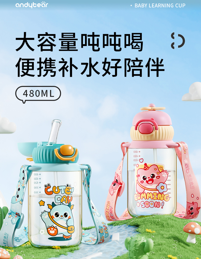 儿童水杯直饮杯宝宝ppsu学饮杯饮水壶吸管杯幼儿园外出便携喝水杯