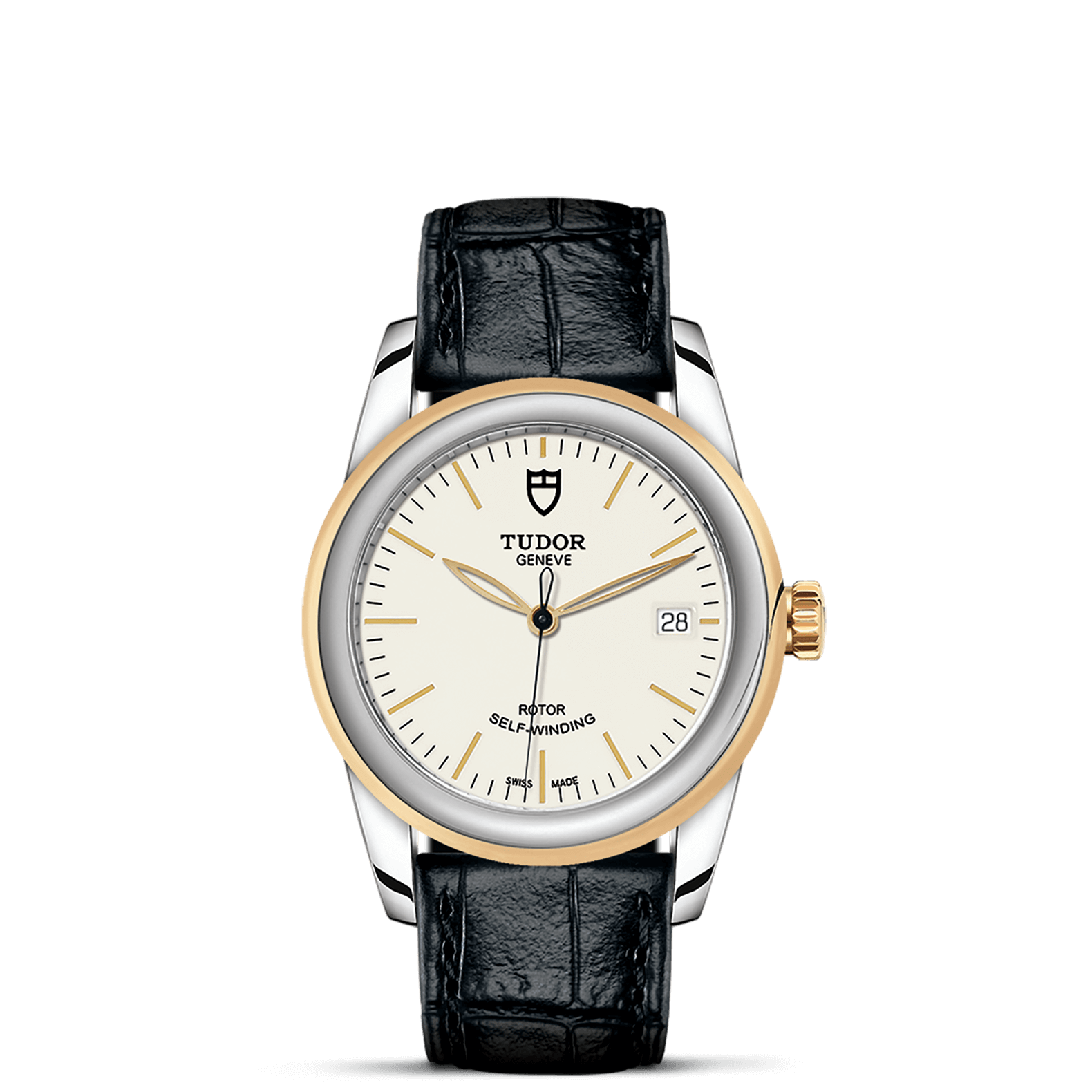 旋入式上链錶冠,饰以帝舵表标志;精钢覆有0.1毫米18K黄金薄层