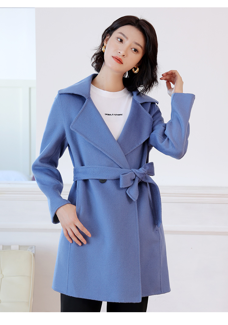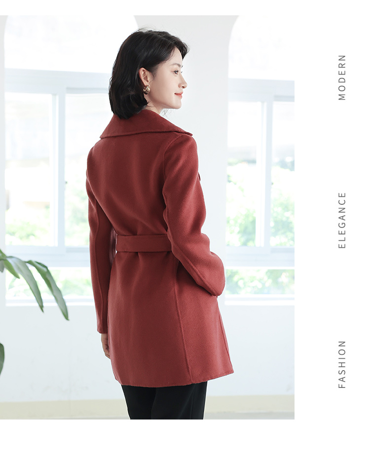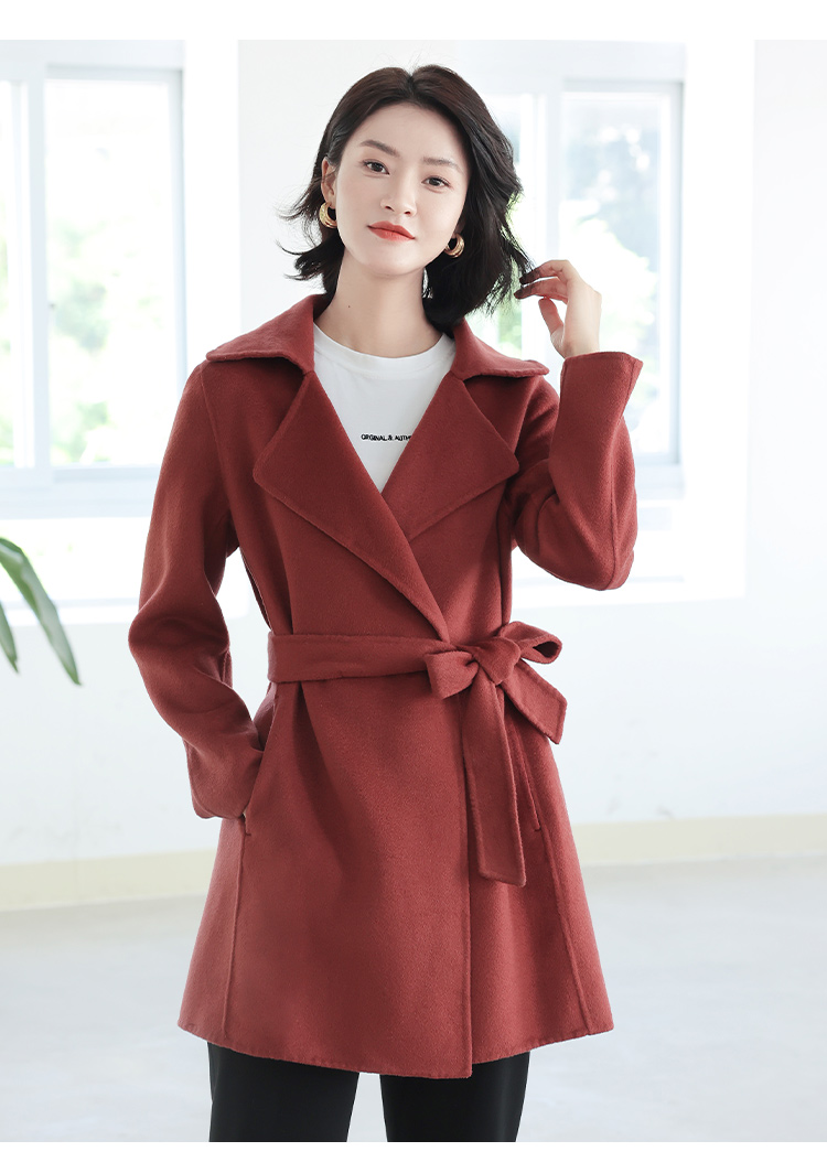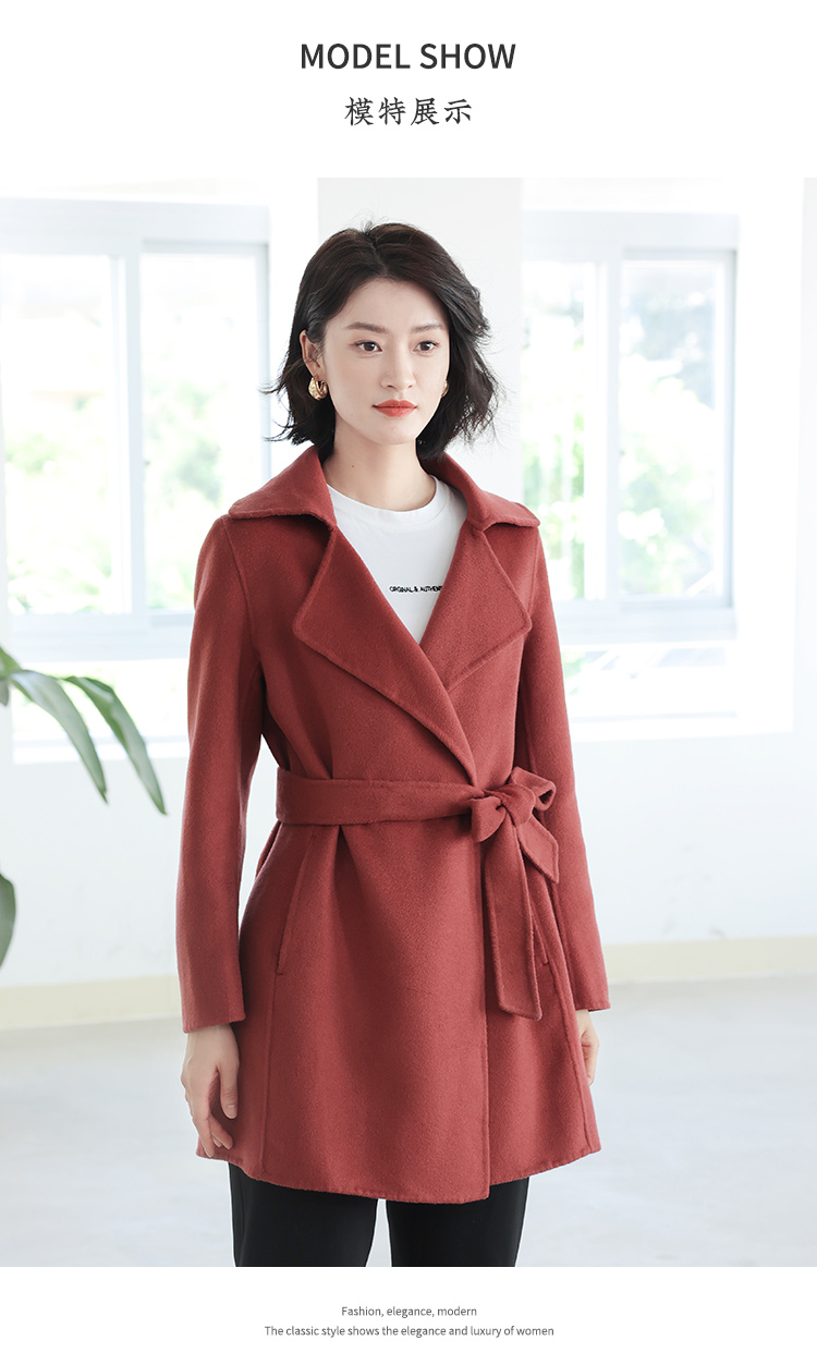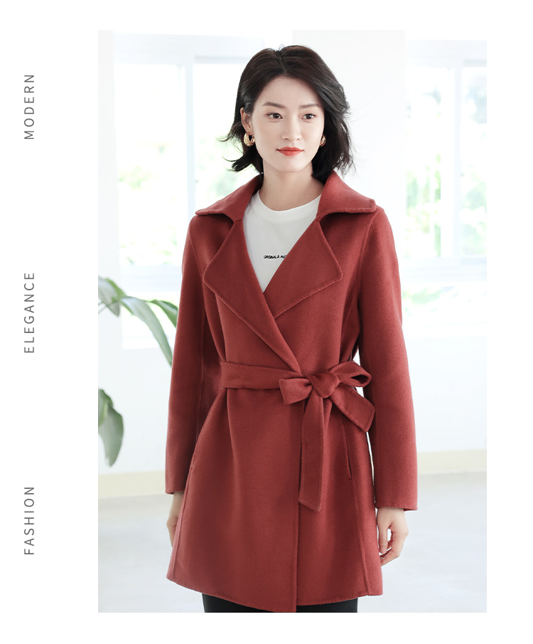 佐尔美秋冬新款 气质显瘦绵腰带羊毛双面呢大衣女E14SM05