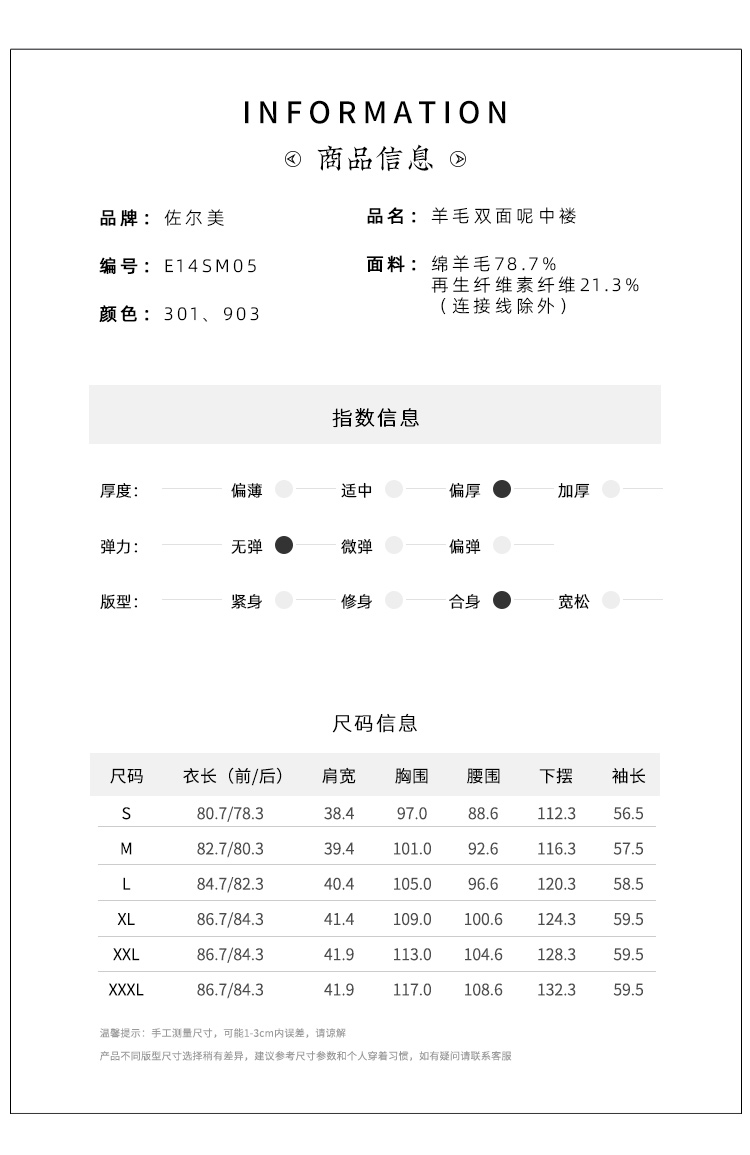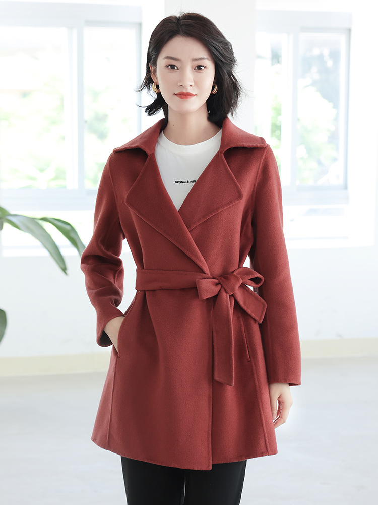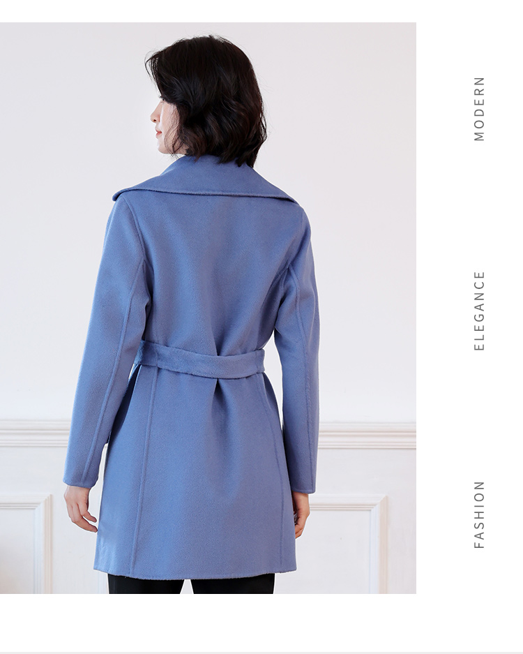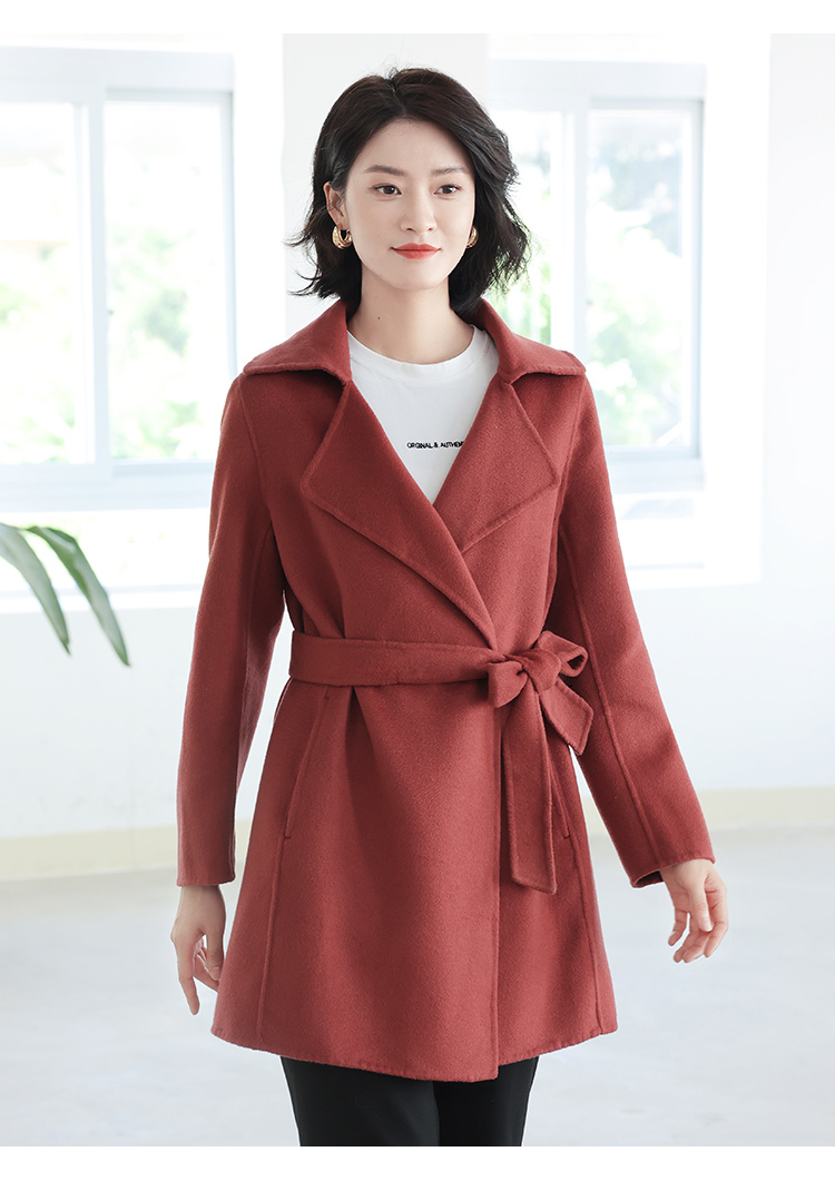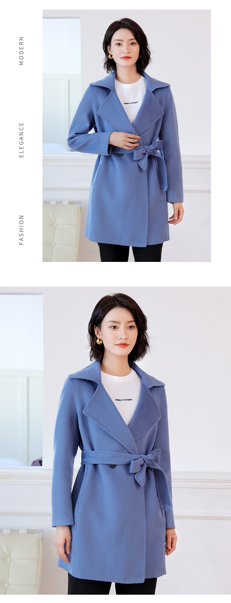 佐尔美秋冬新款 气质显瘦绵腰带羊毛双面呢大衣女E14SM05