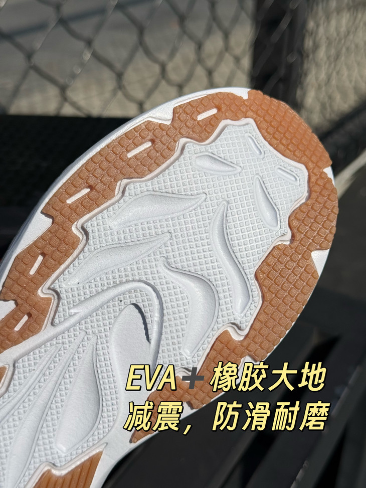 🔻EVA发泡+橡胶片组合的鞋底 这种独特的鞋底构造 使得中底具备良好的缓震性能 有效减轻行走或运动时对脚部的冲击力 而橡胶片的加入则大大增强了鞋底的耐磨性和抓地力