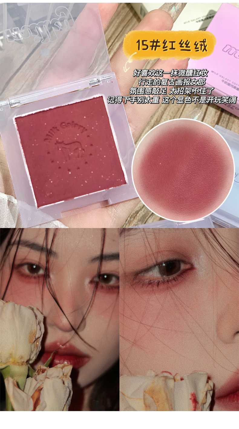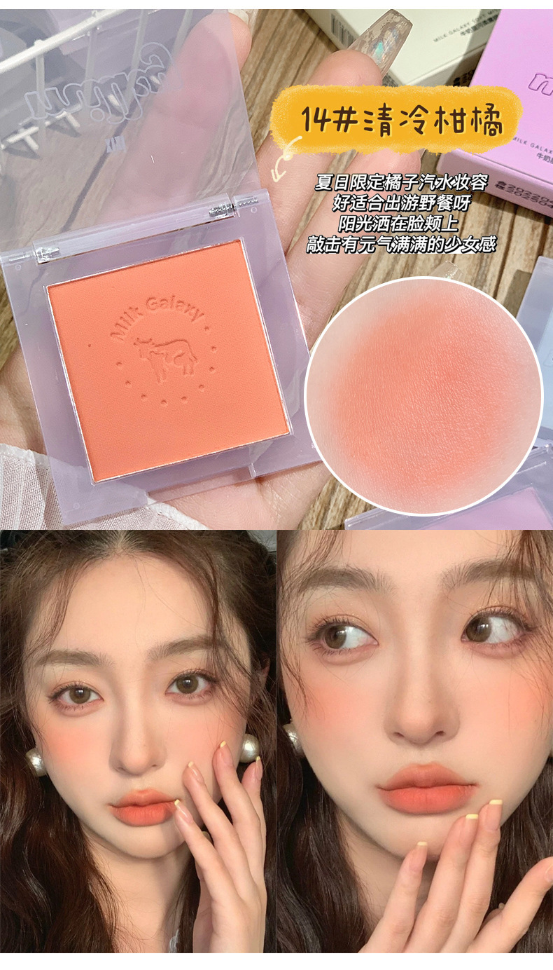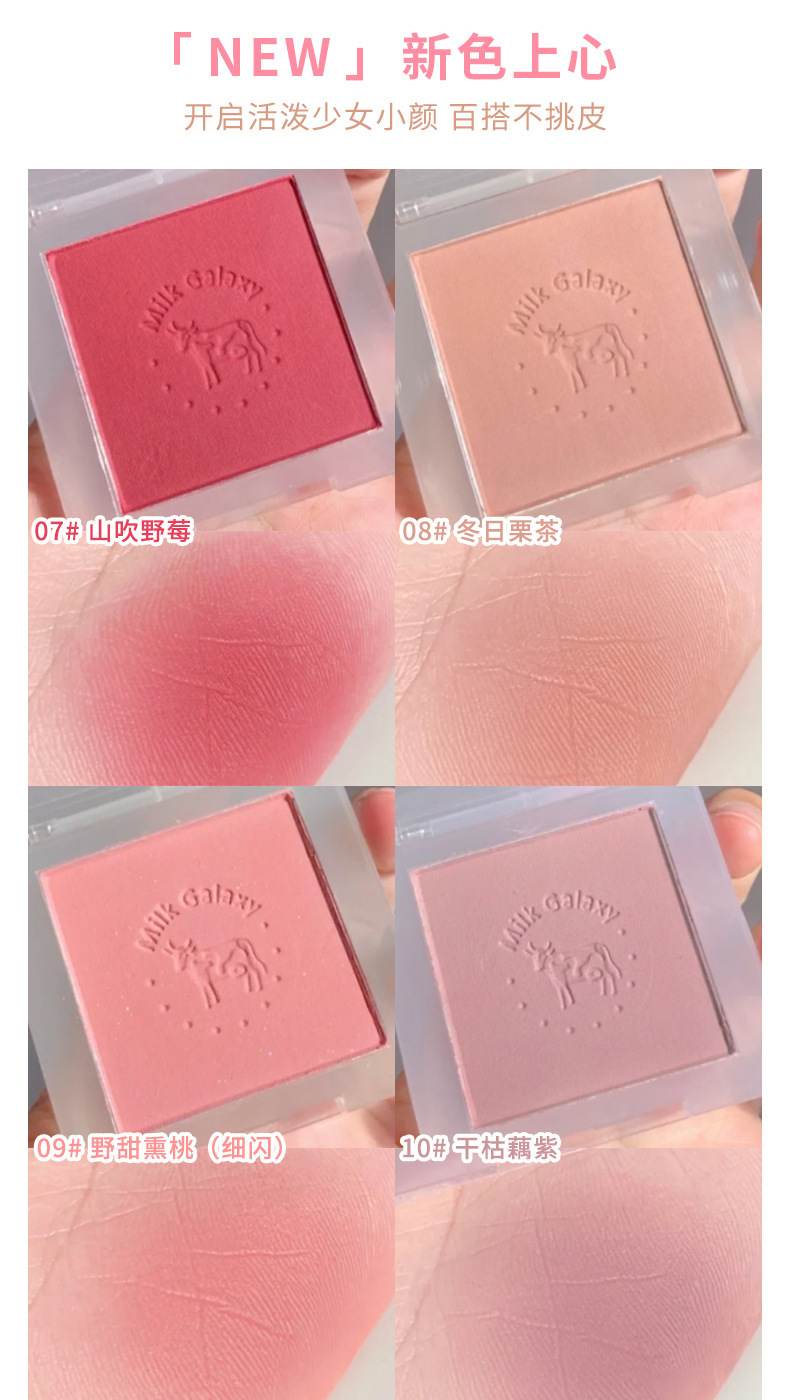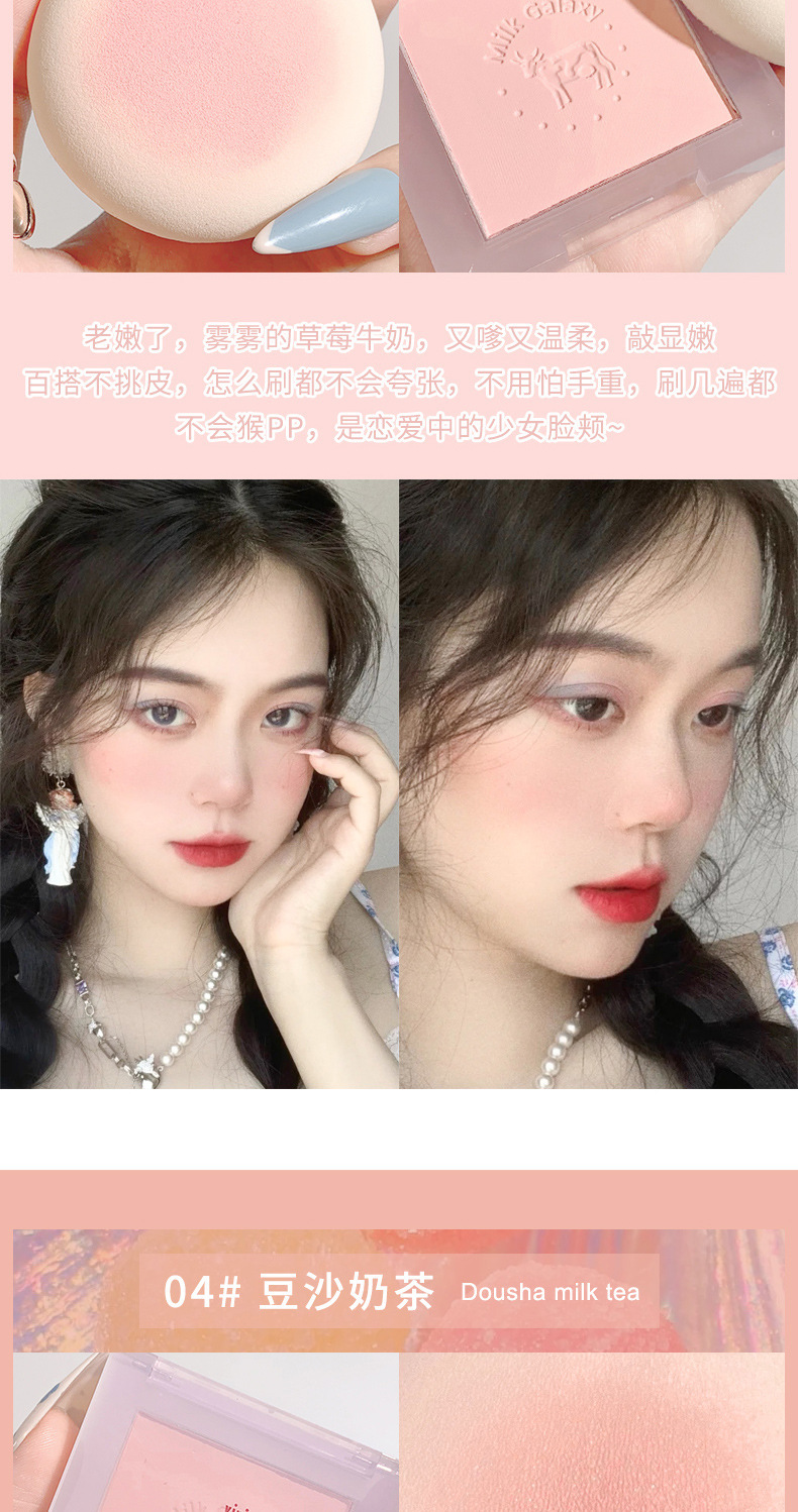 【开启活泼少女!小颜百搭不挑皮】彩妆牛奶星河柔雾腮红女学生平价腮蓝腮紫哑光豆沙奶茶腮红盘。ry