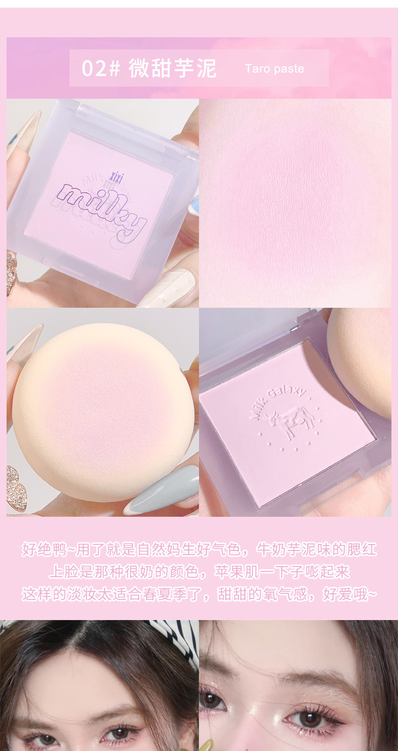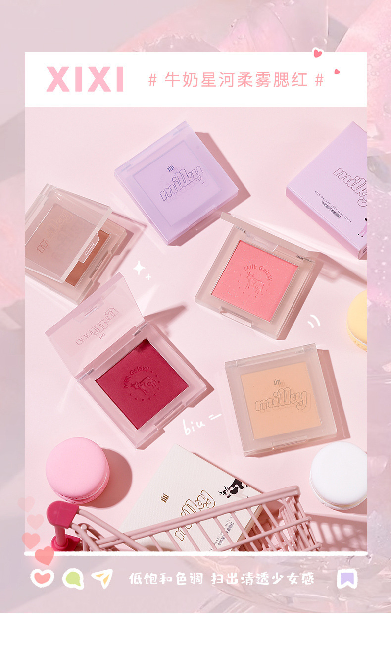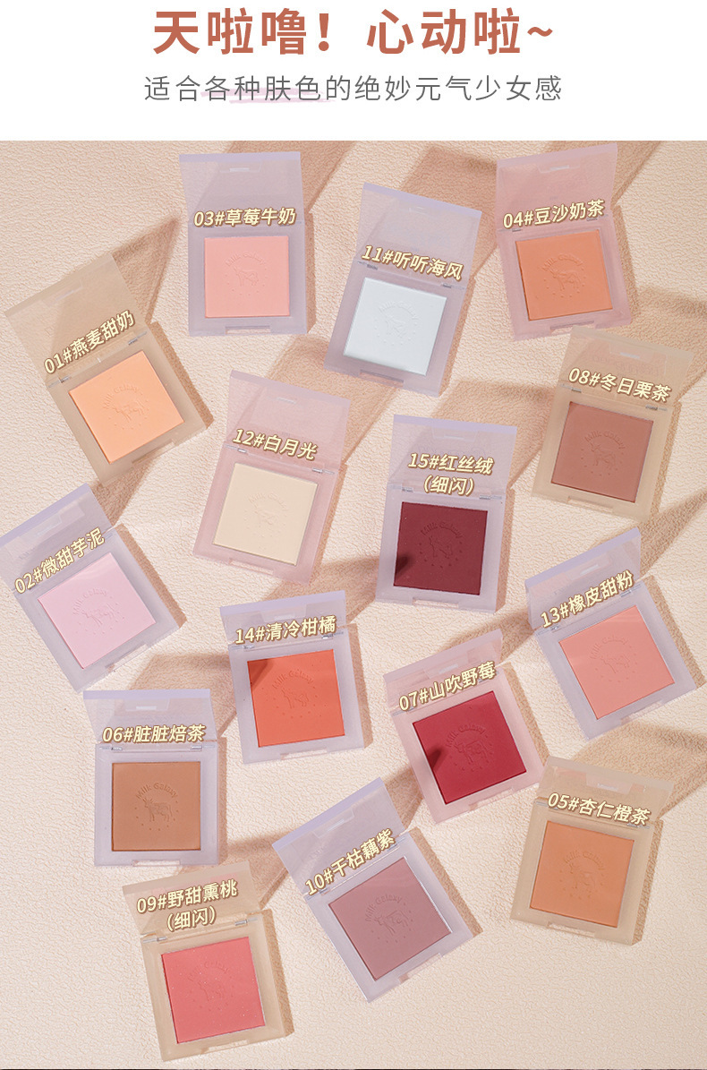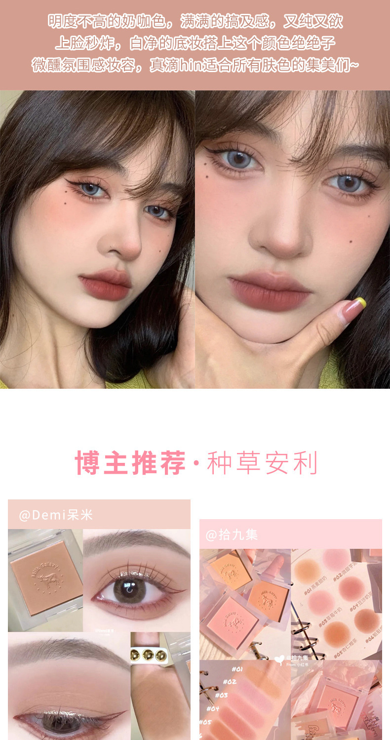 【开启活泼少女!小颜百搭不挑皮】彩妆牛奶星河柔雾腮红女学生平价腮蓝腮紫哑光豆沙奶茶腮红盘。ry