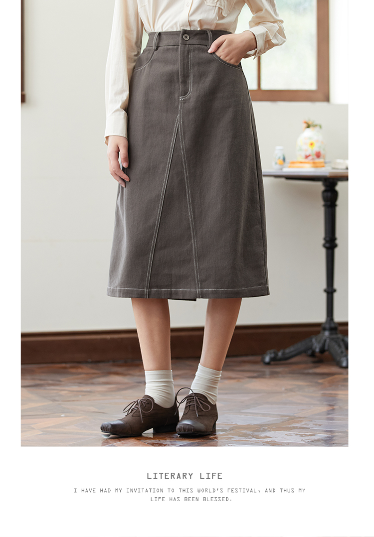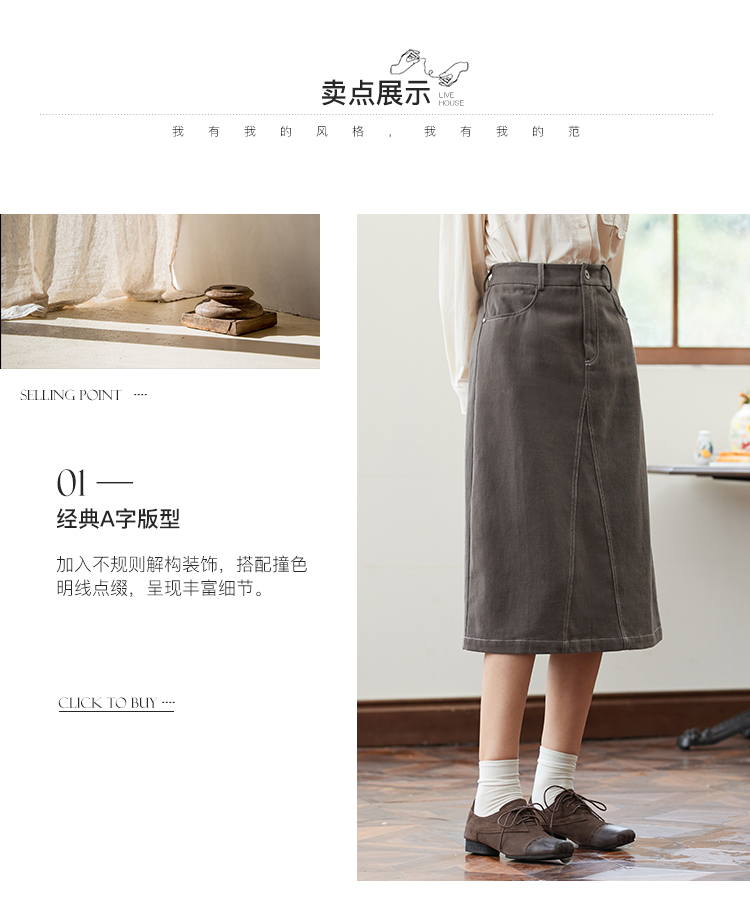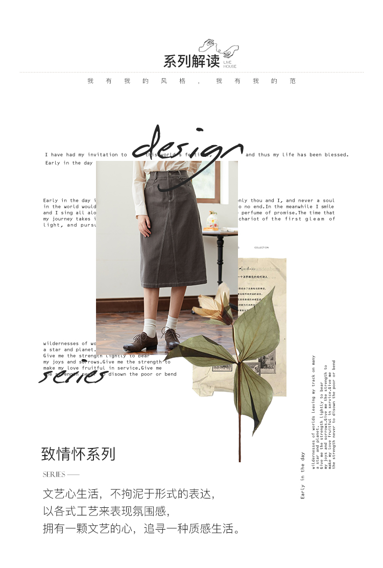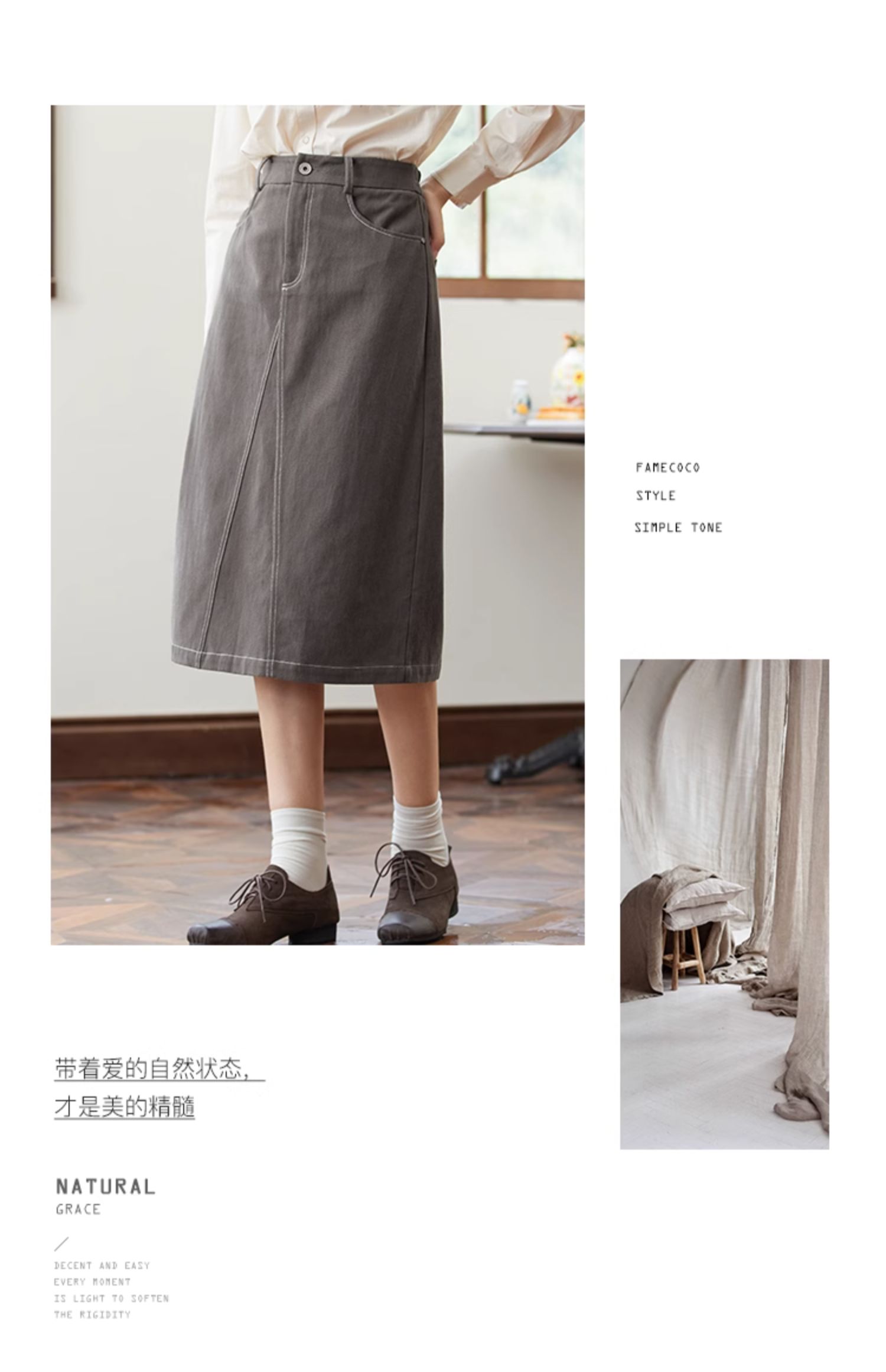 Famecoco范可儿半身裙A字纯棉松紧腰梨形通勤半裙F225HA016