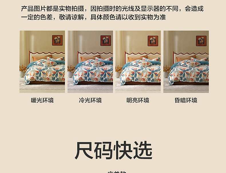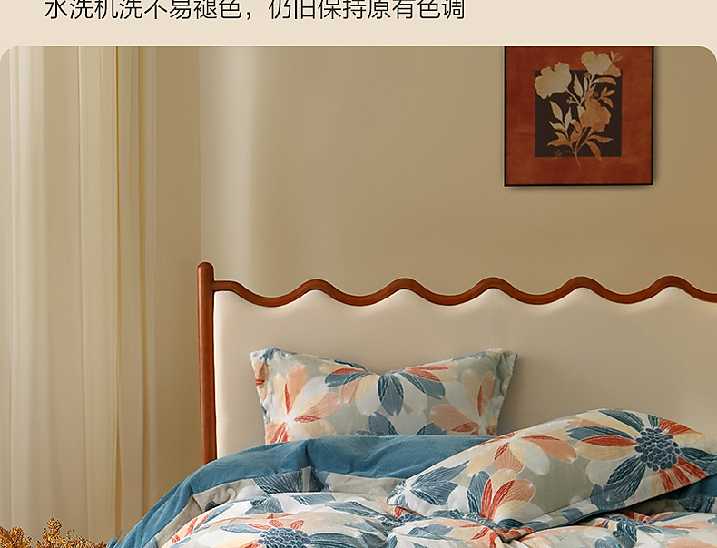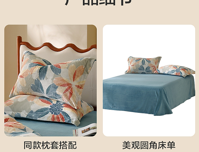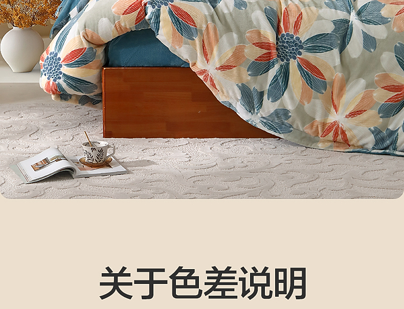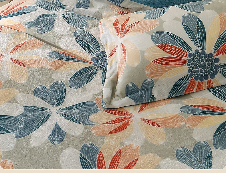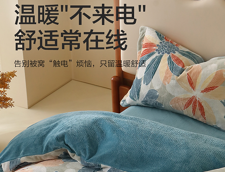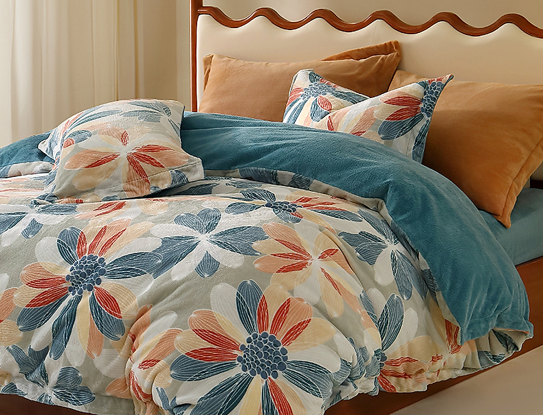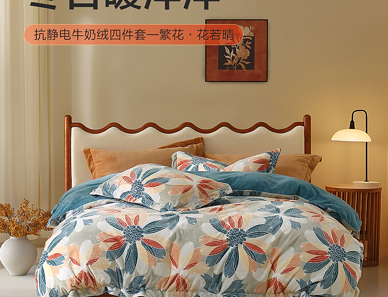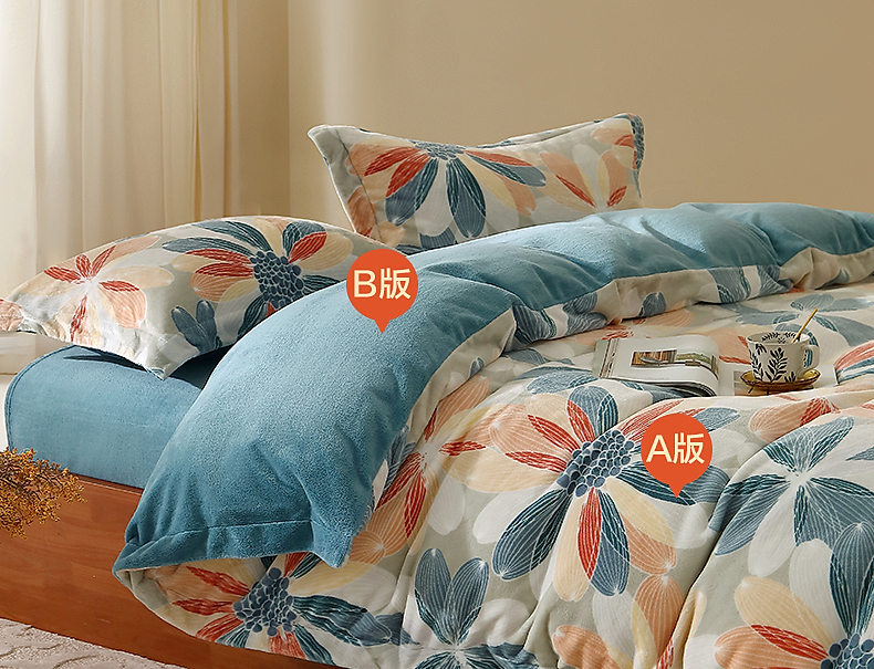 水星家纺牛奶绒四件套印花双面暖绒套件保暖秋冬新品床上用品-繁花·花若晴