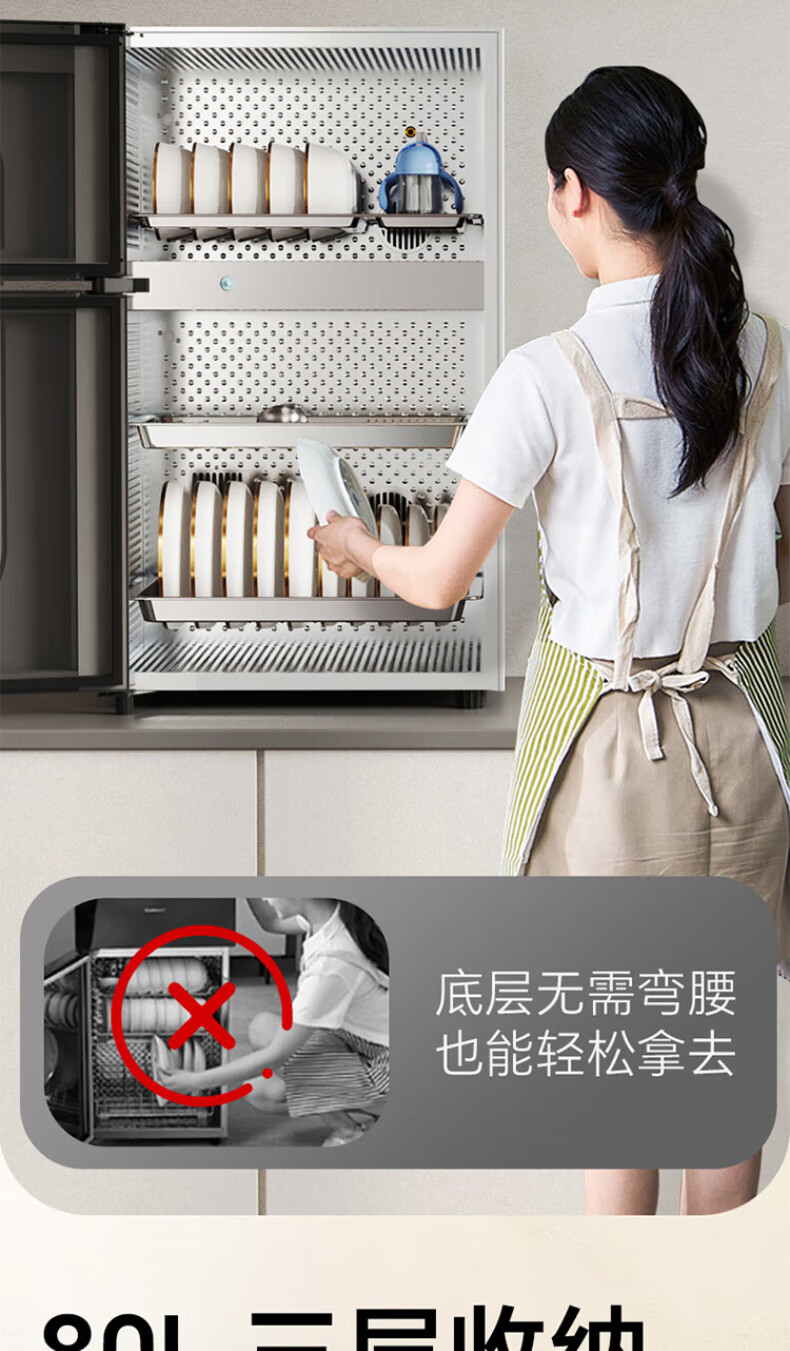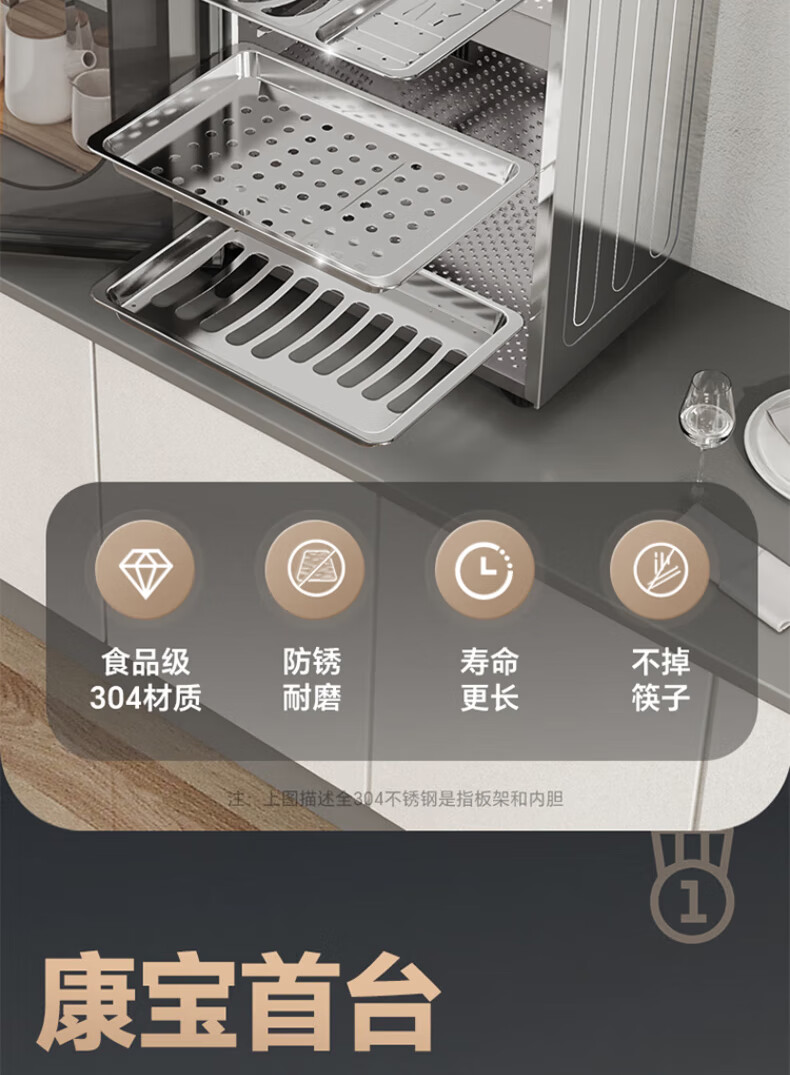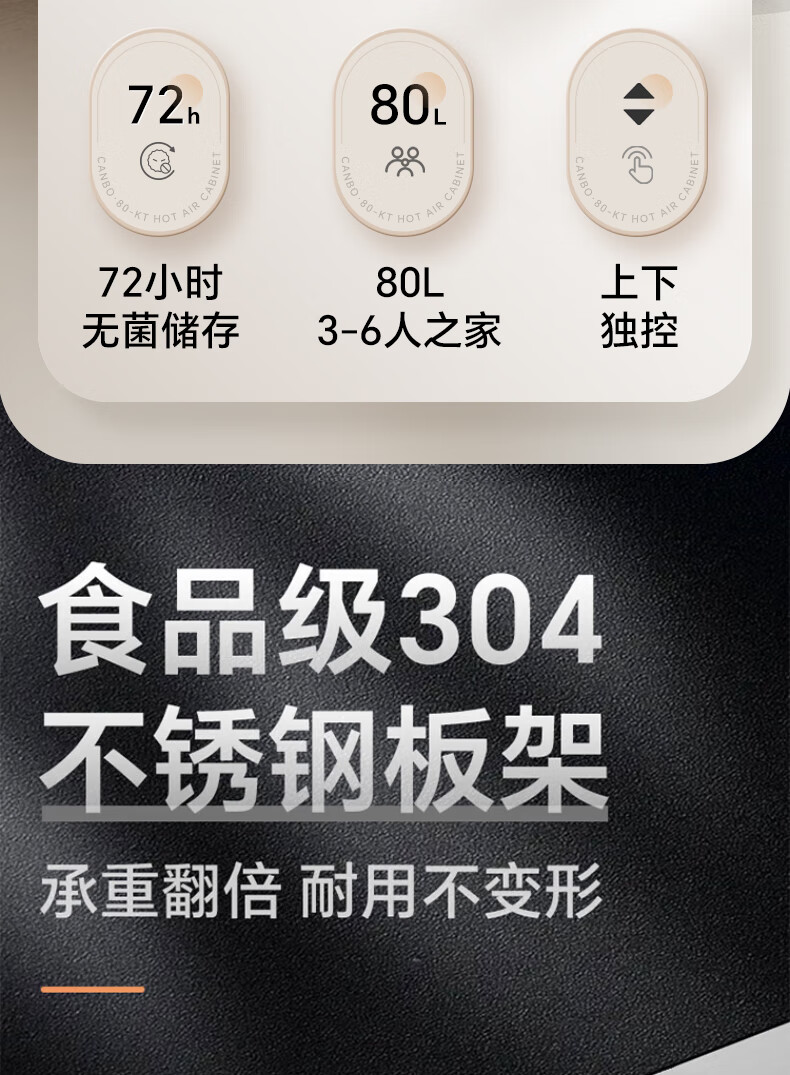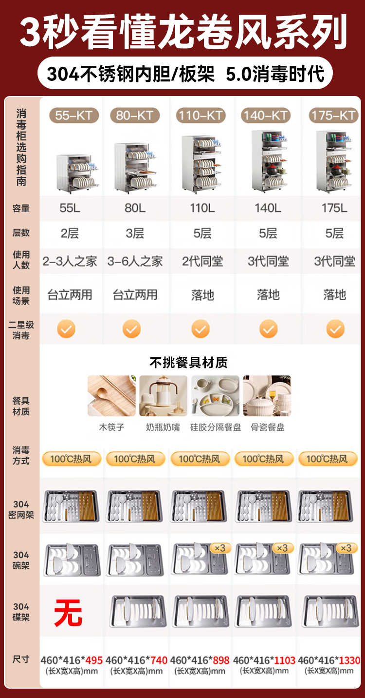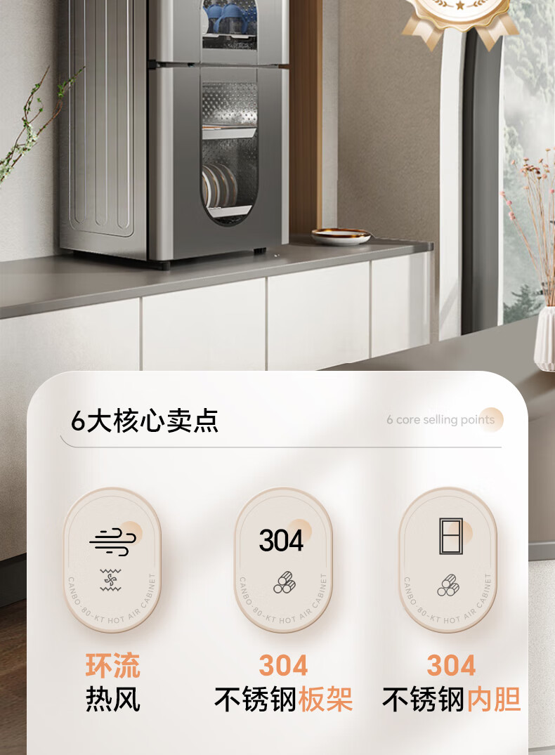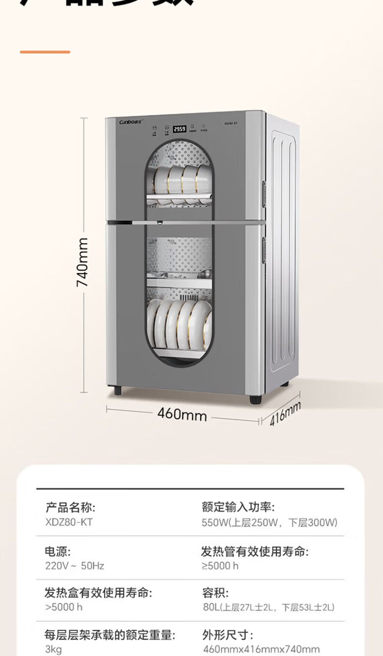康宝(Canbo)消毒柜KT家用立式小型304不锈钢 奶瓶碗具热风消毒碗柜KT 智能触摸控制无菌储存大容量二星级消毒 二星级55L 80L 110L 140L 175L