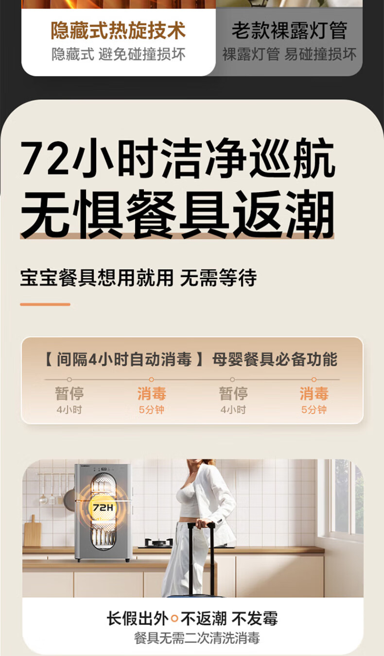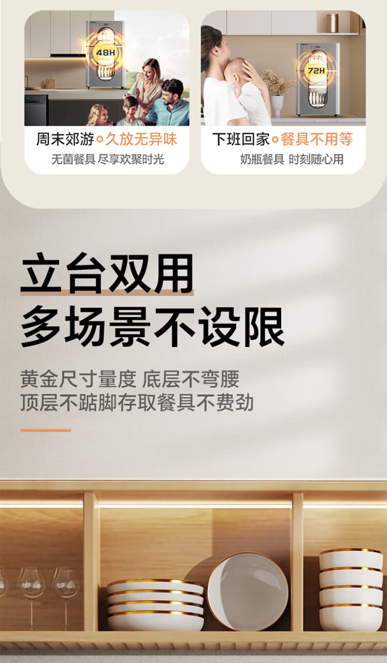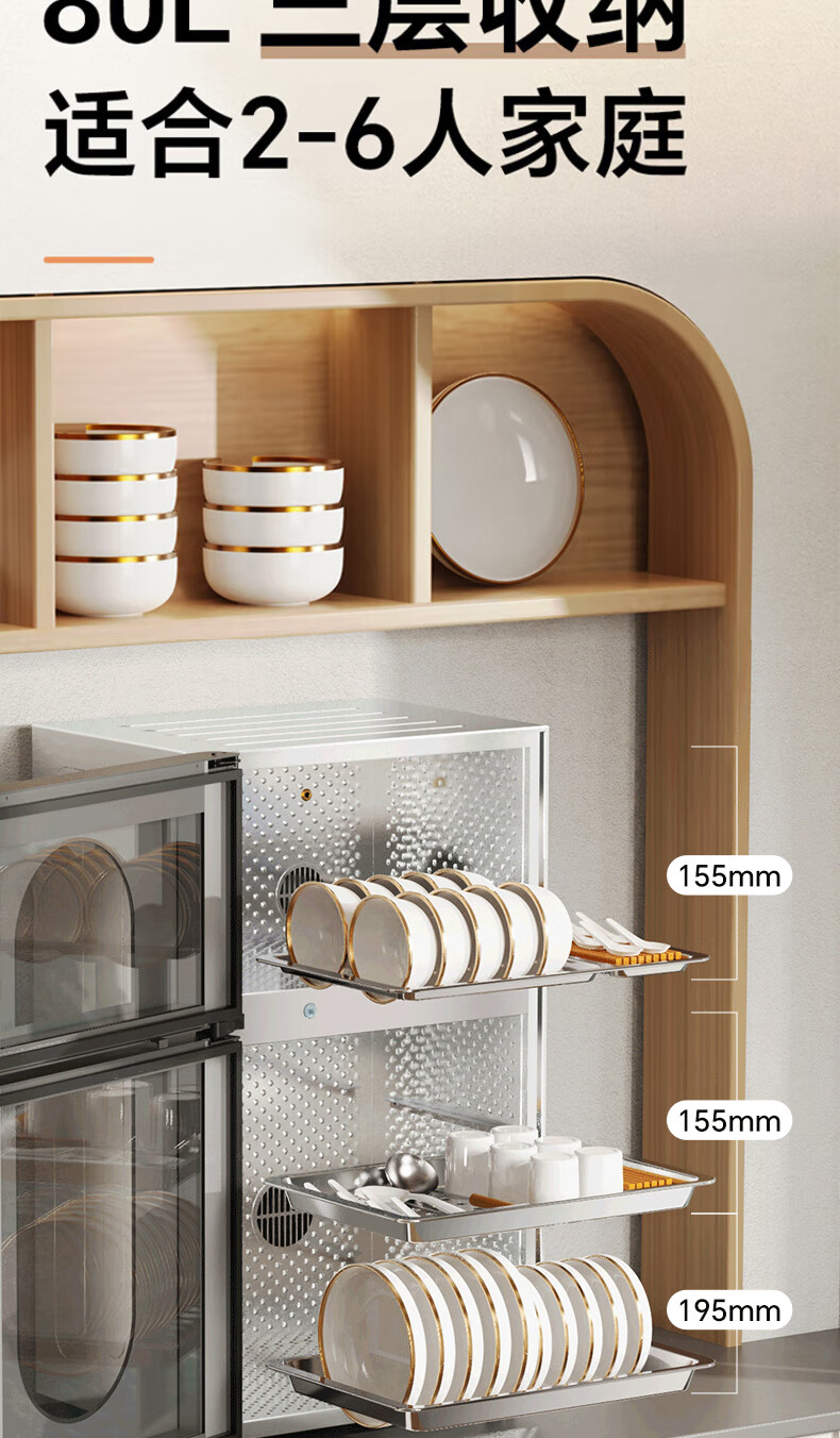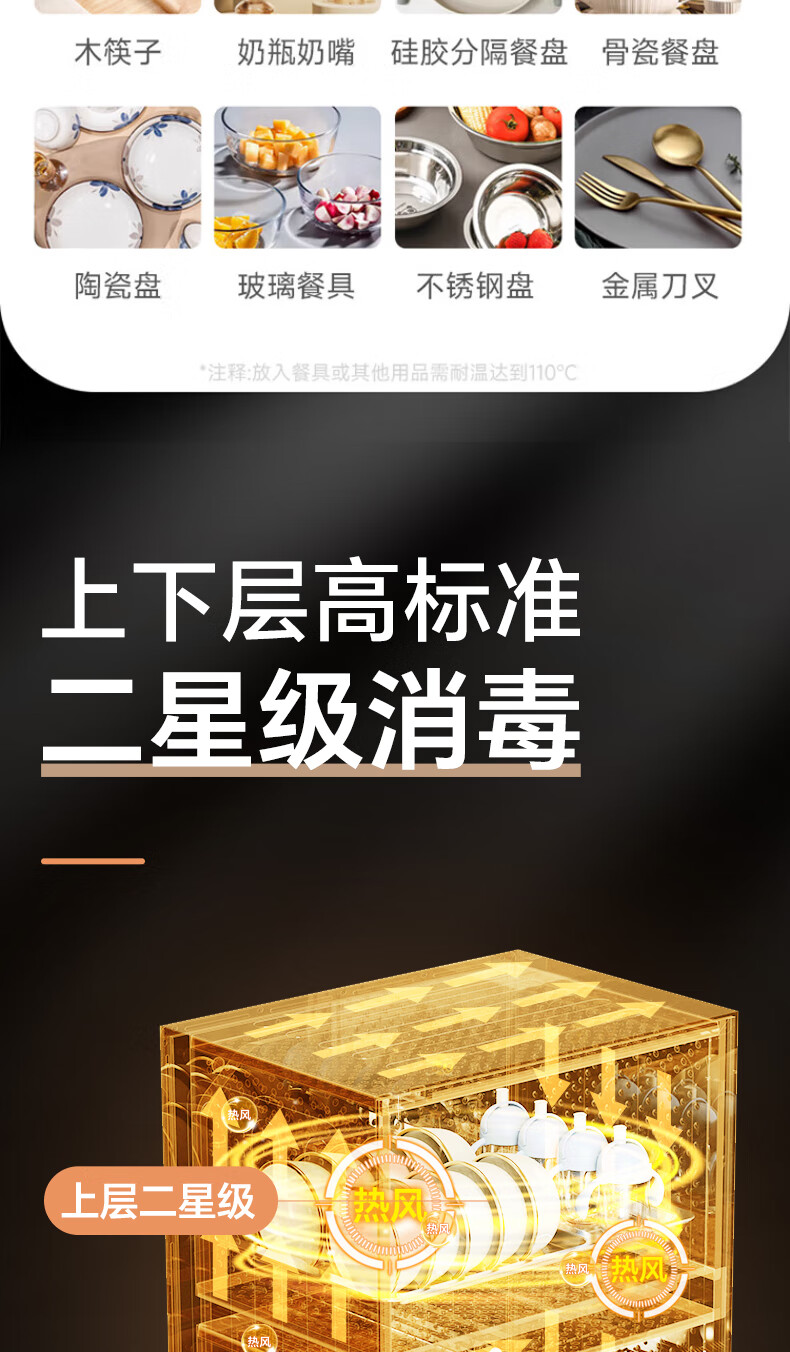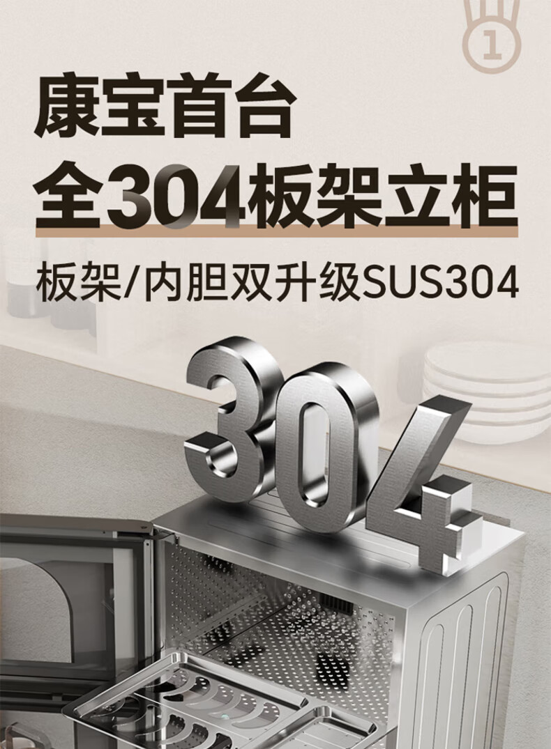 康宝(Canbo)消毒柜KT家用立式小型304不锈钢 奶瓶碗具热风消毒碗柜KT 智能触摸控制无菌储存大容量二星级消毒 二星级55L 80L 110L 140L 175L