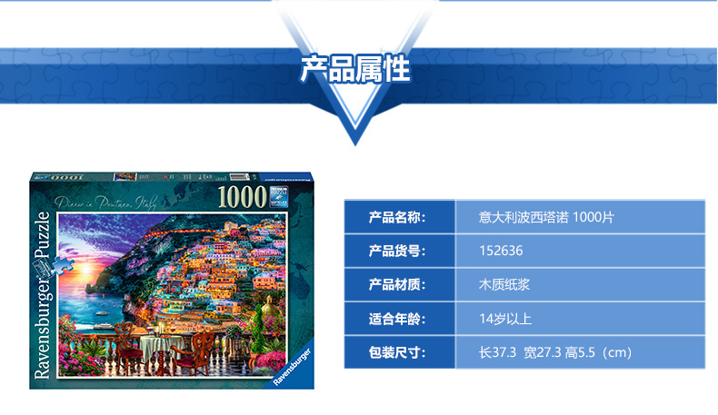 Ravensburger拼图 平面拼图1000片意大利波西塔诺RAVC152636