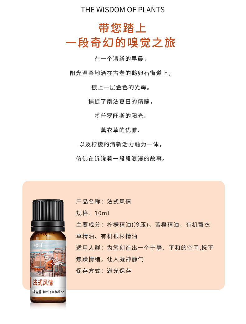 法式风情香薰精油芳香芳香精油瑜伽复方原料精油颇黎复方精油研发定制