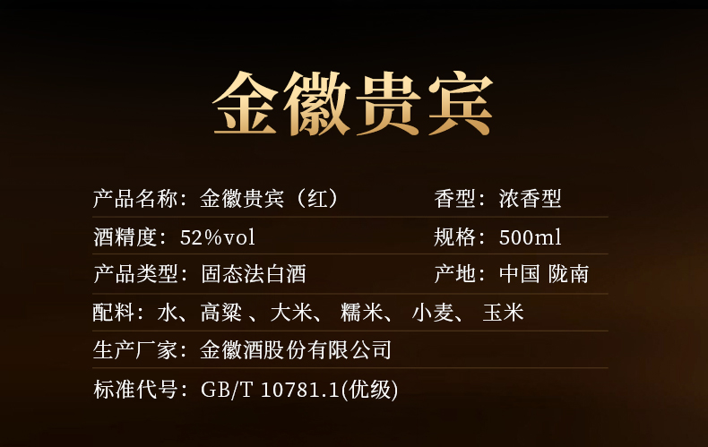 金徽酒 52度金徽贵宾(红) 浓香型白酒