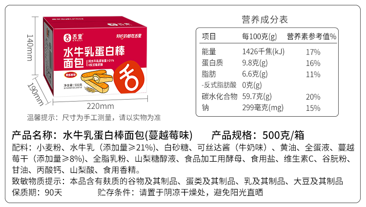 舌里水牛乳蛋白棒面包1箱*500g(蔓越莓味)