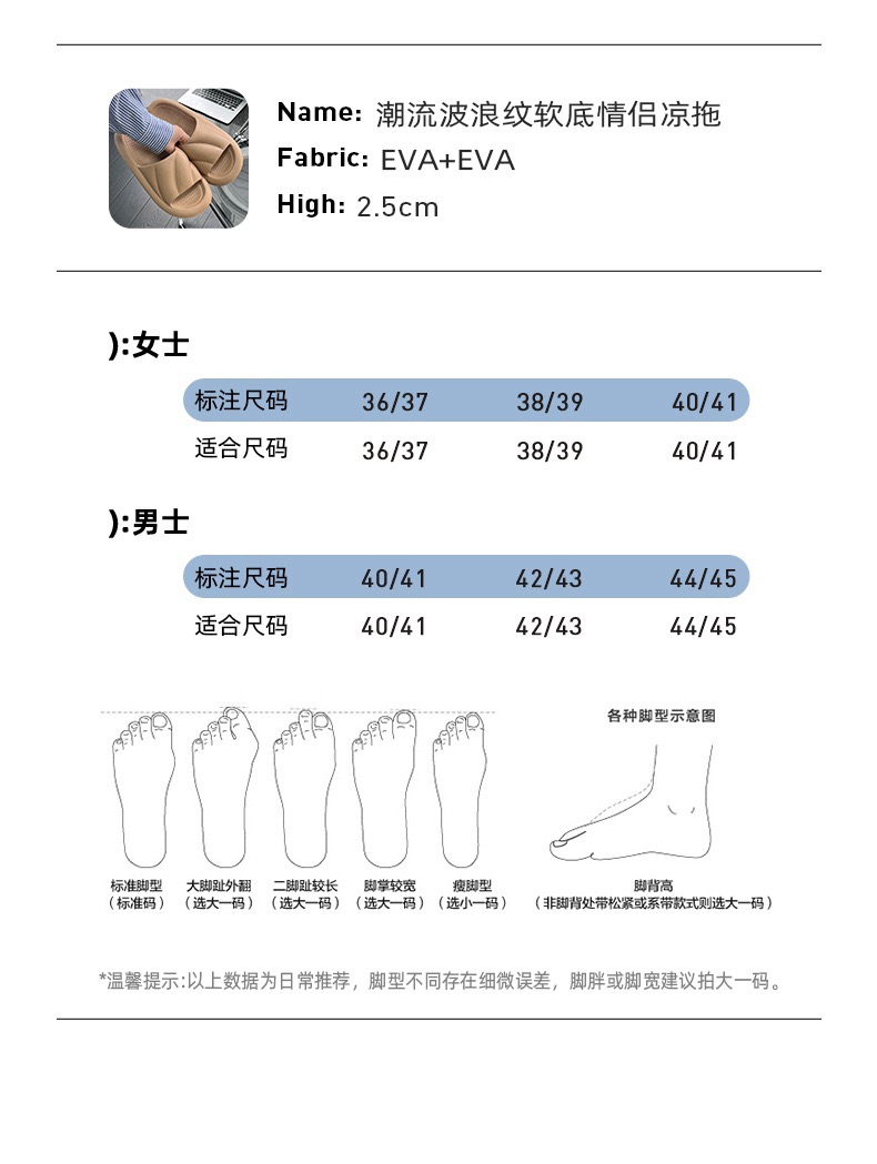 【YW】无忧购纯色潮流波浪纹软底男女款情侣居家外穿凉拖鞋9297(截单后7天发货)