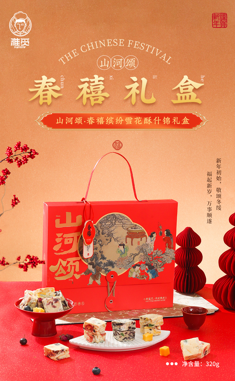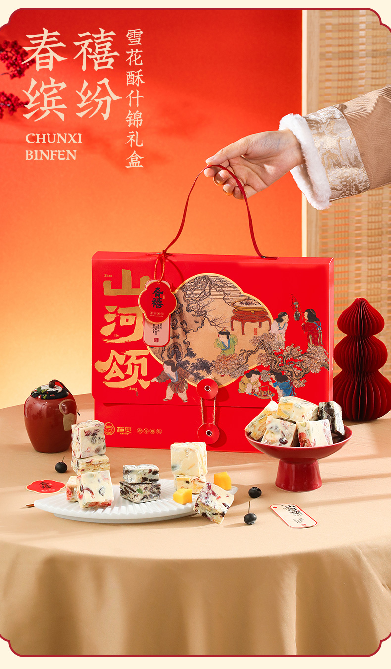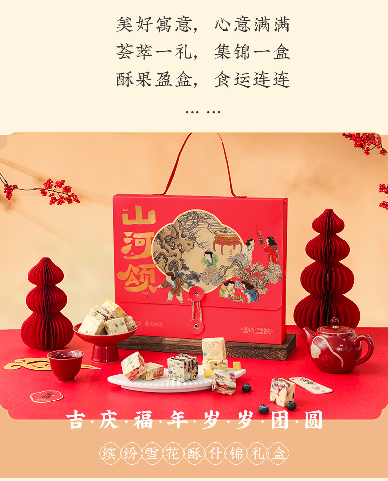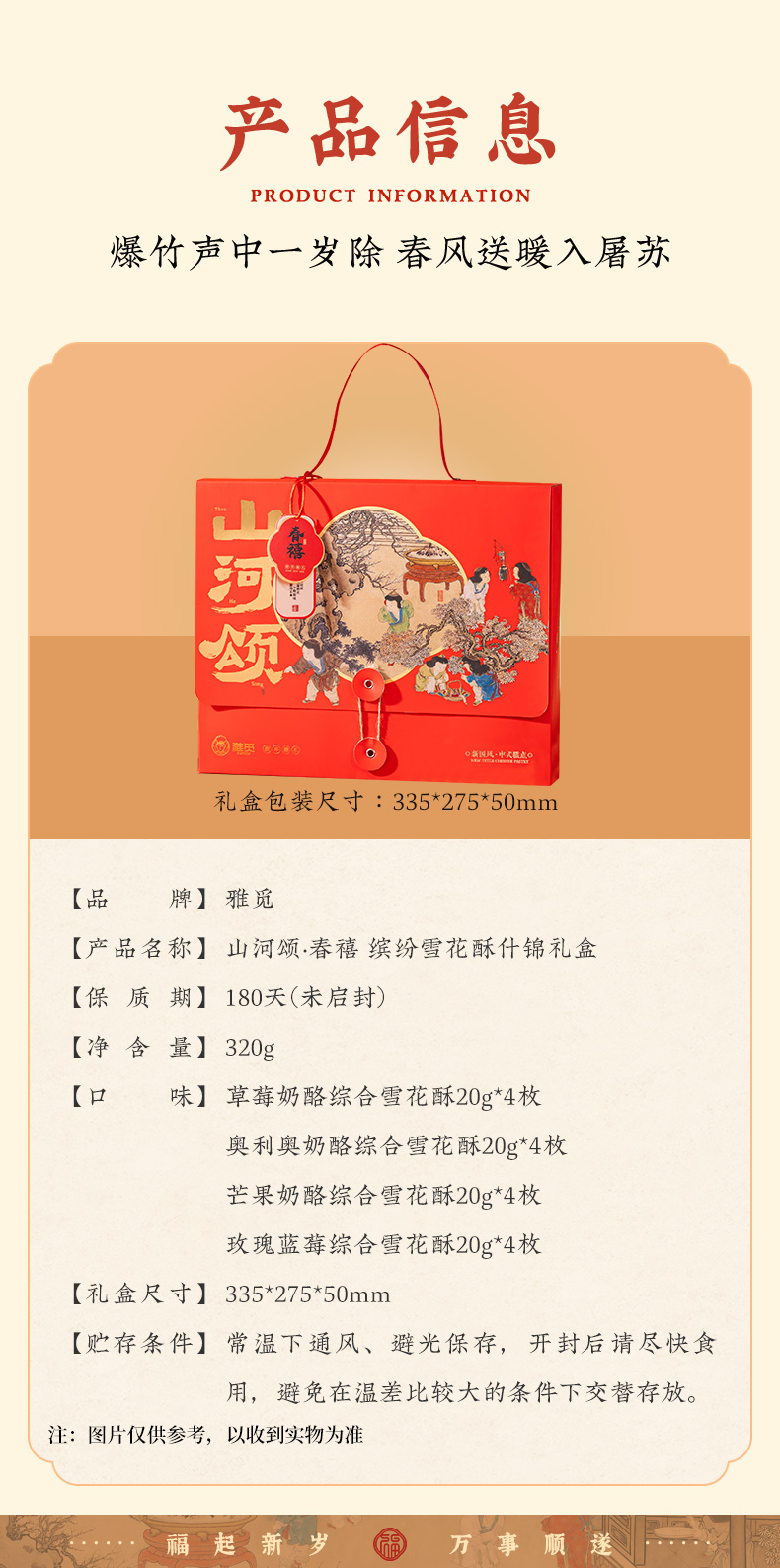 雅觅 山河颂·春禧 缤纷雪花酥什锦礼盒【产地直发】