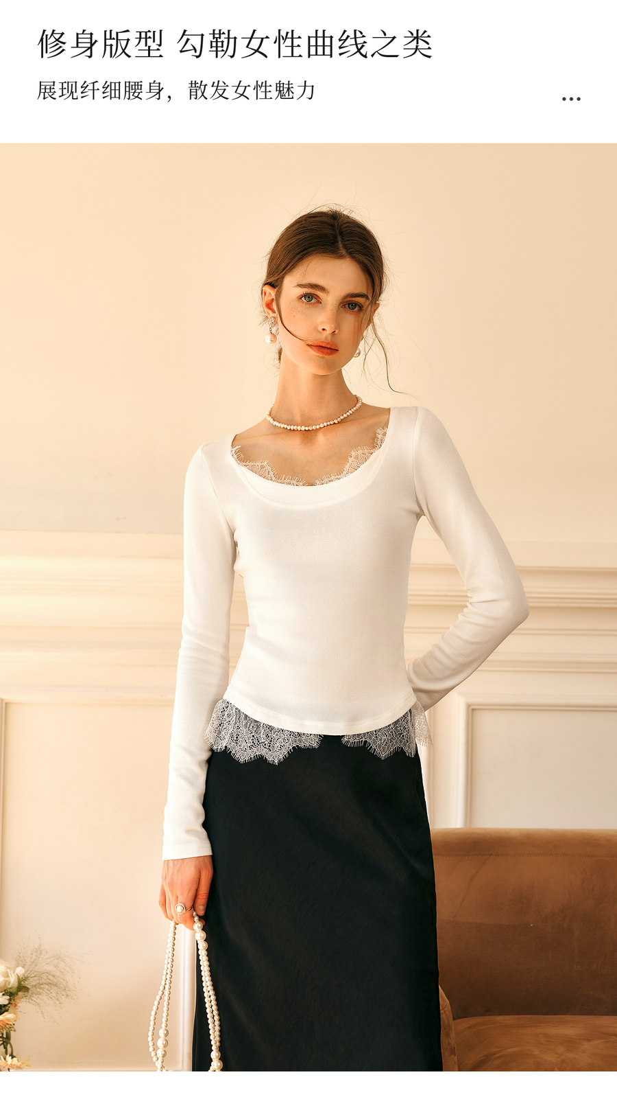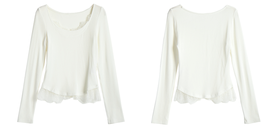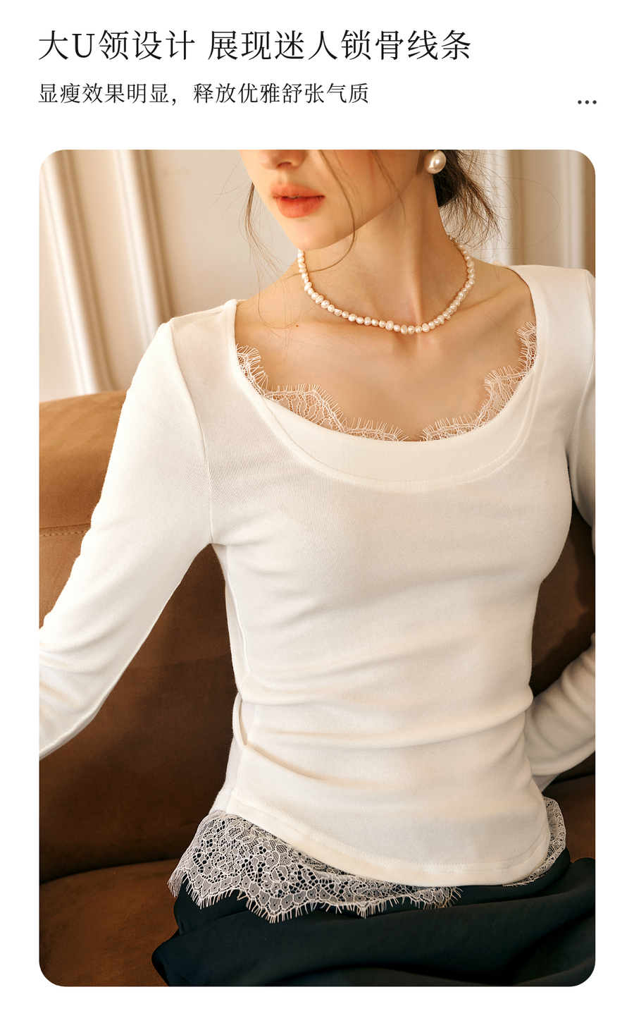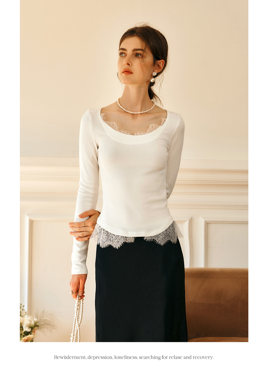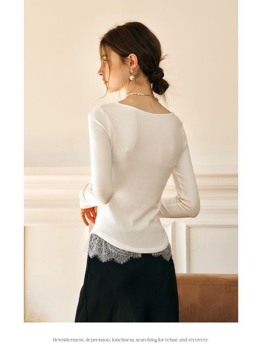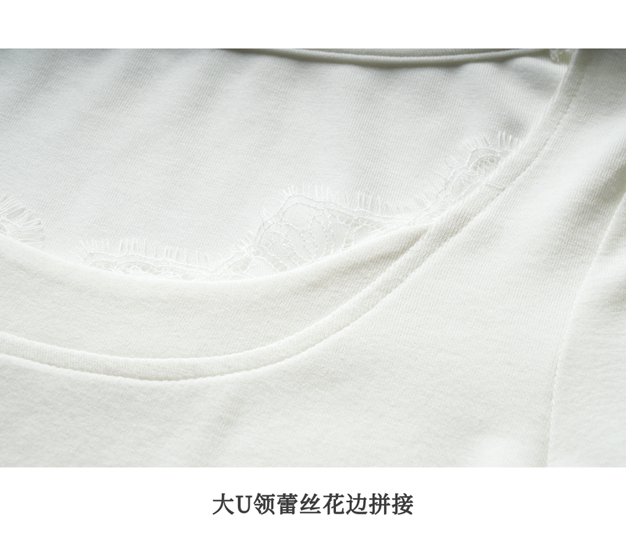 OLrain欧芮儿法式蕾丝T恤女秋季2025年新款优雅气质大U领长袖上衣