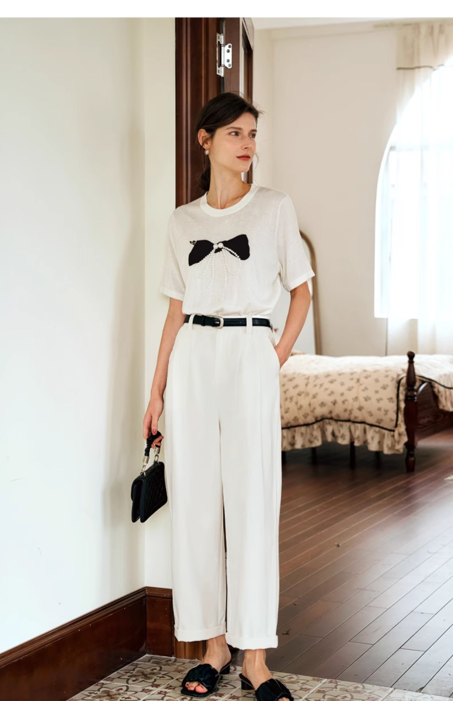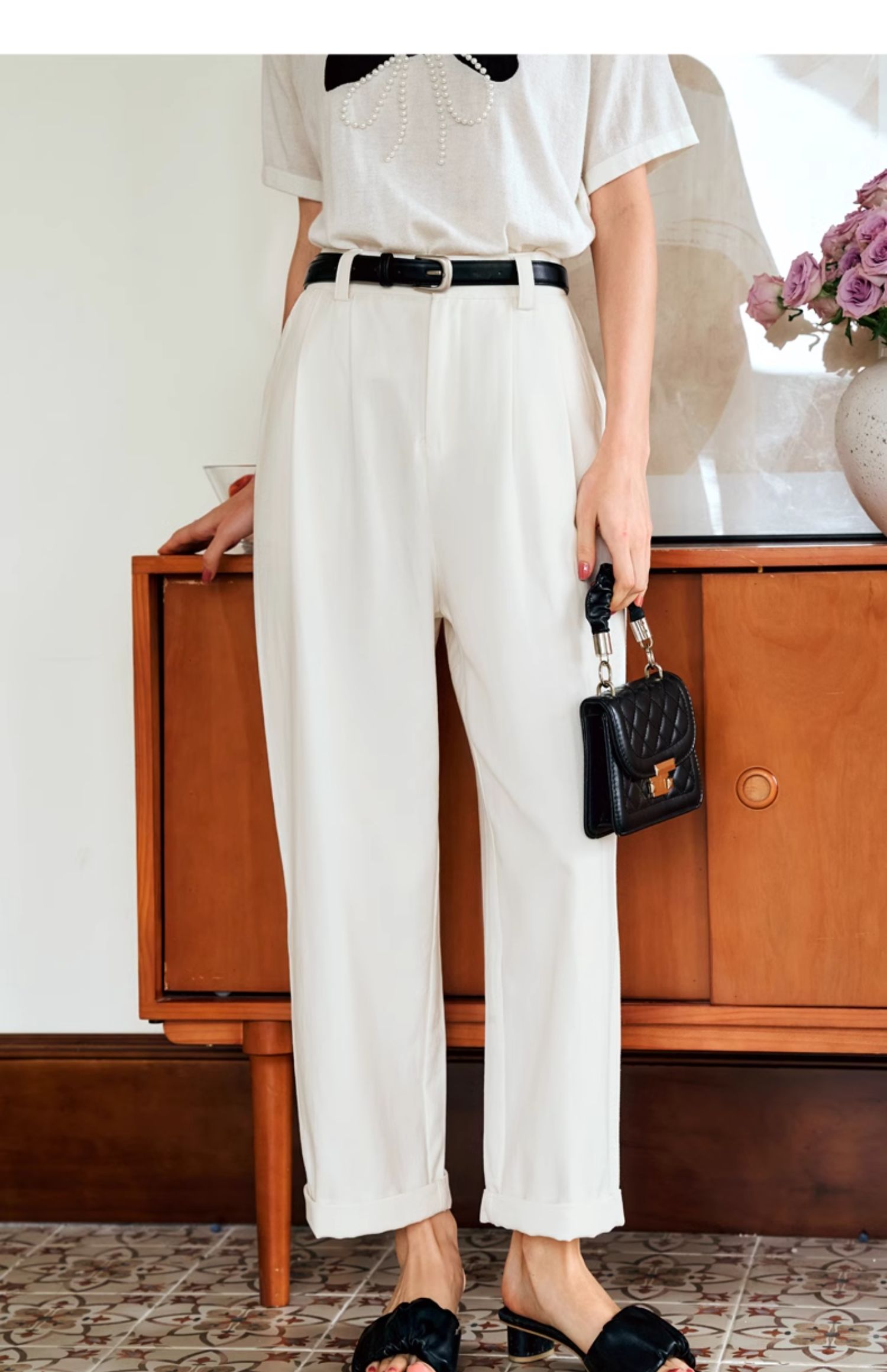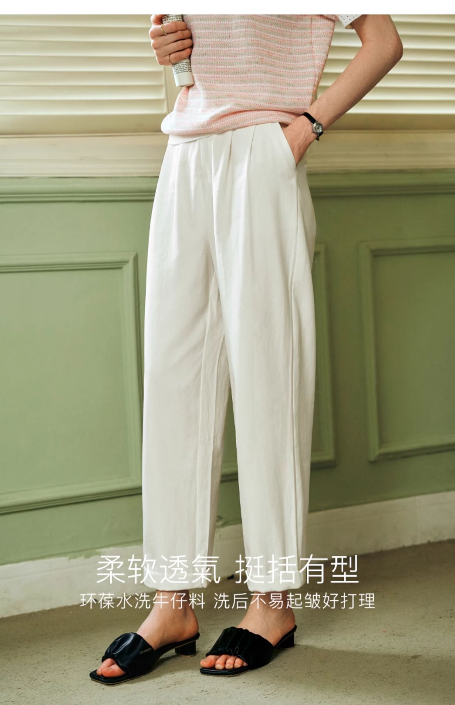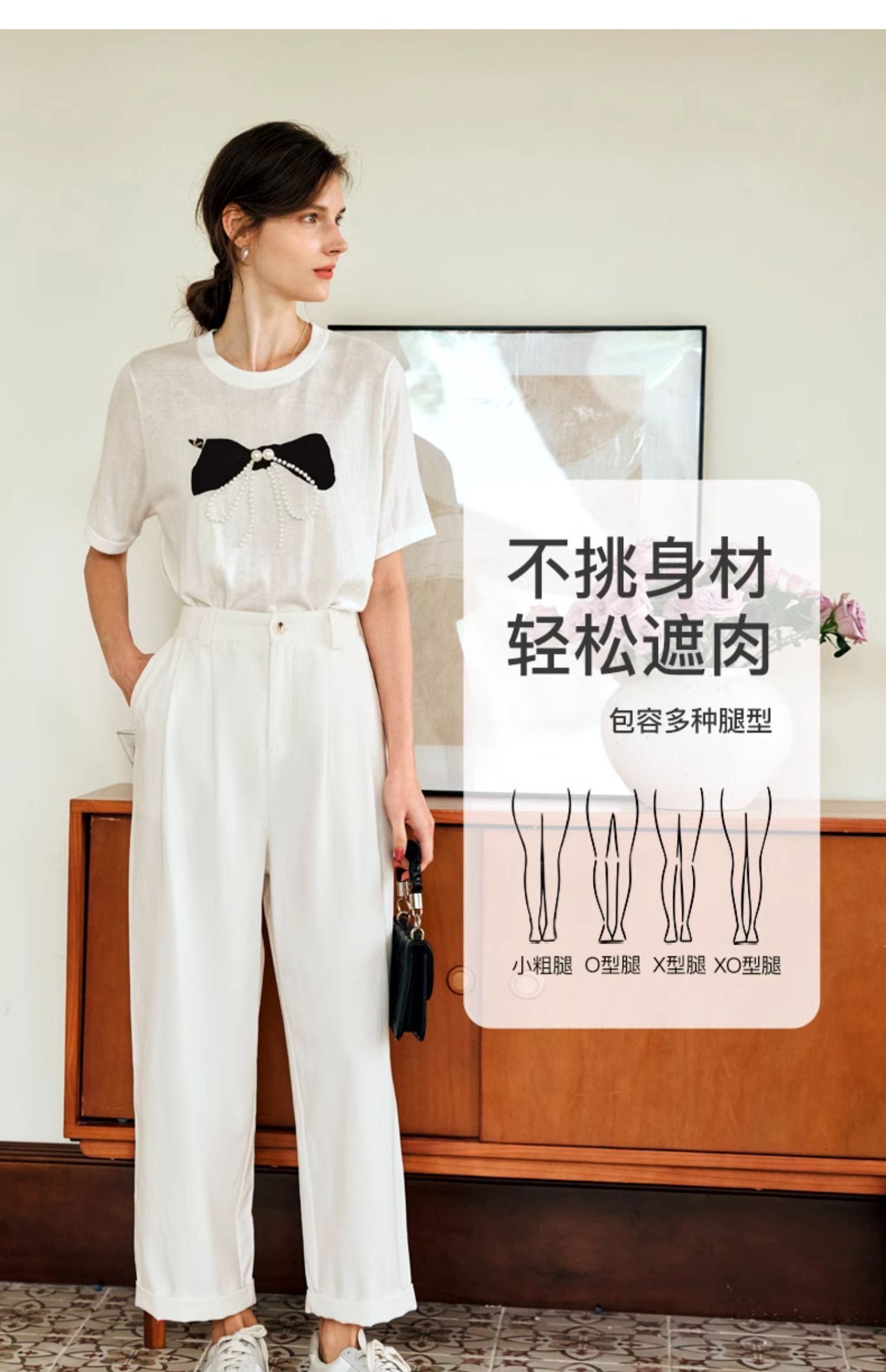 OLrain欧芮儿白色高腰直筒牛仔裤女夏季2024年新款休闲长裤小个子