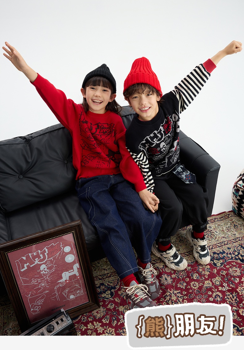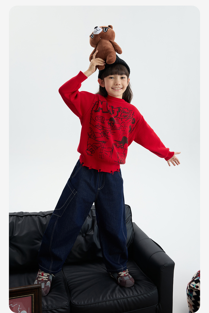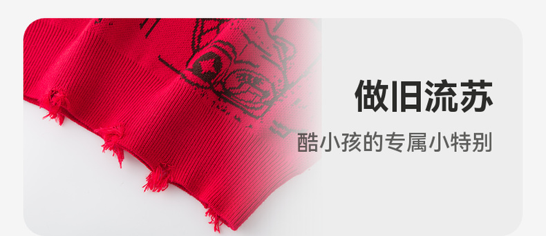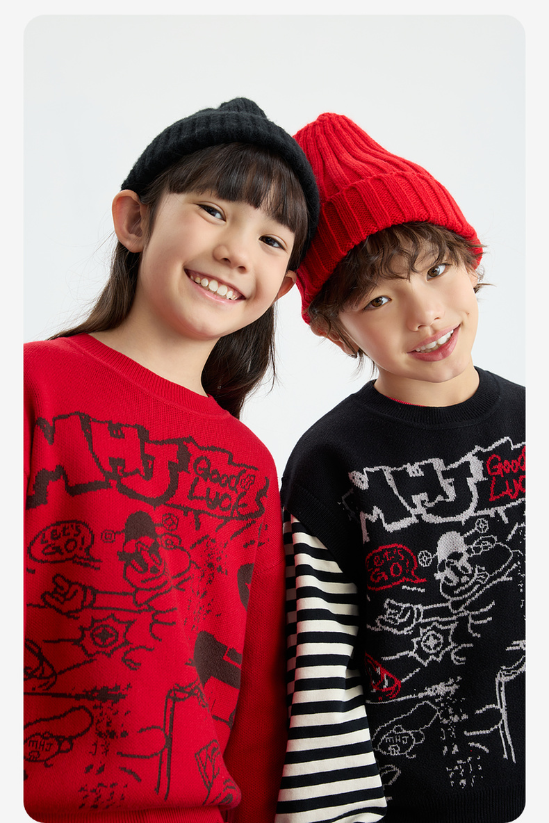 MANHOJIA【大富翁毛衣】儿童新款冬季拜年针织手绘漫画提花毛衣