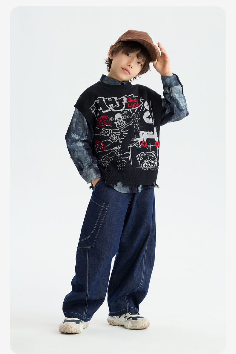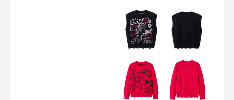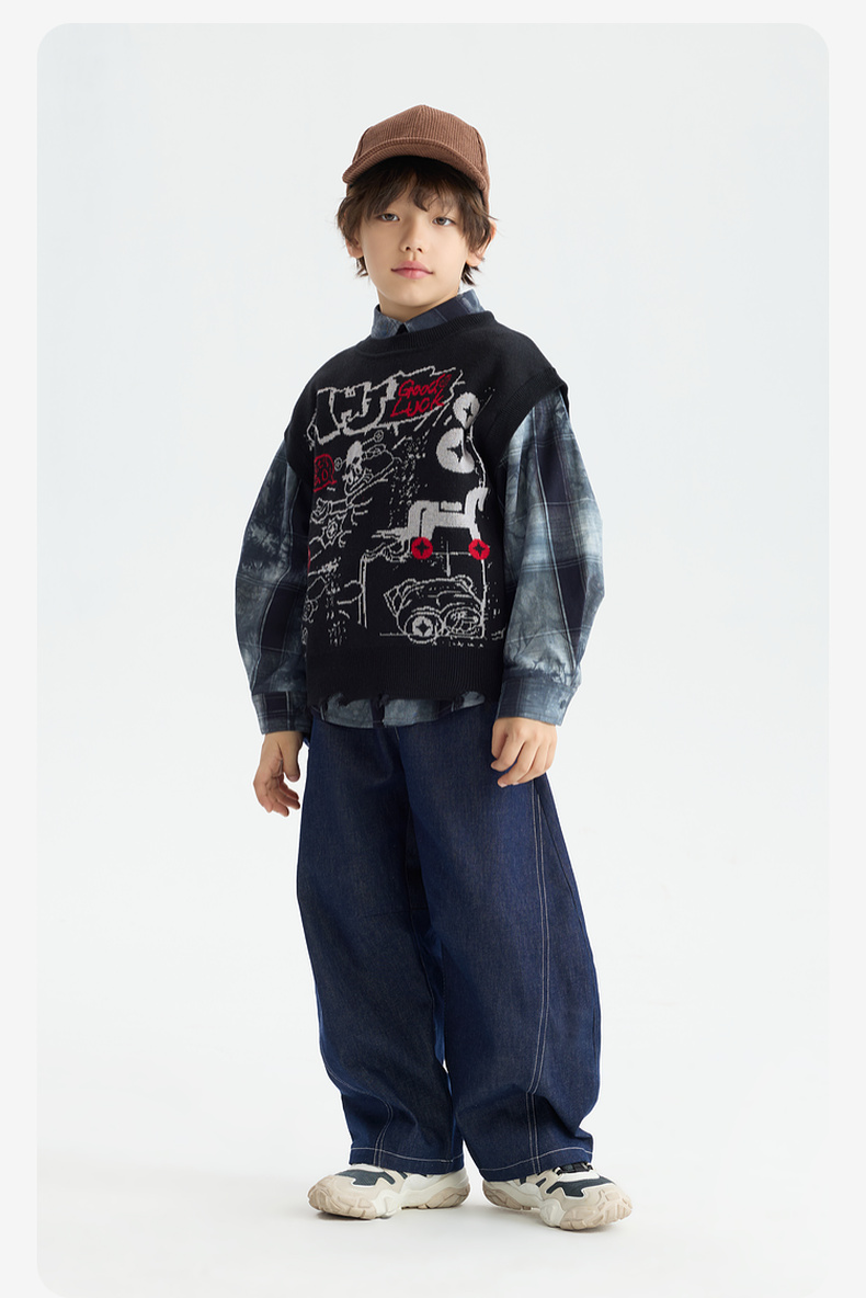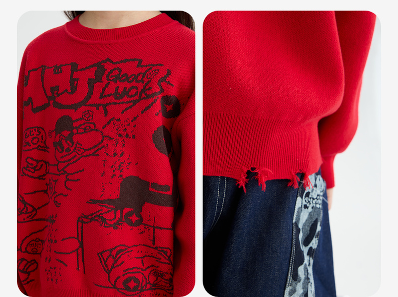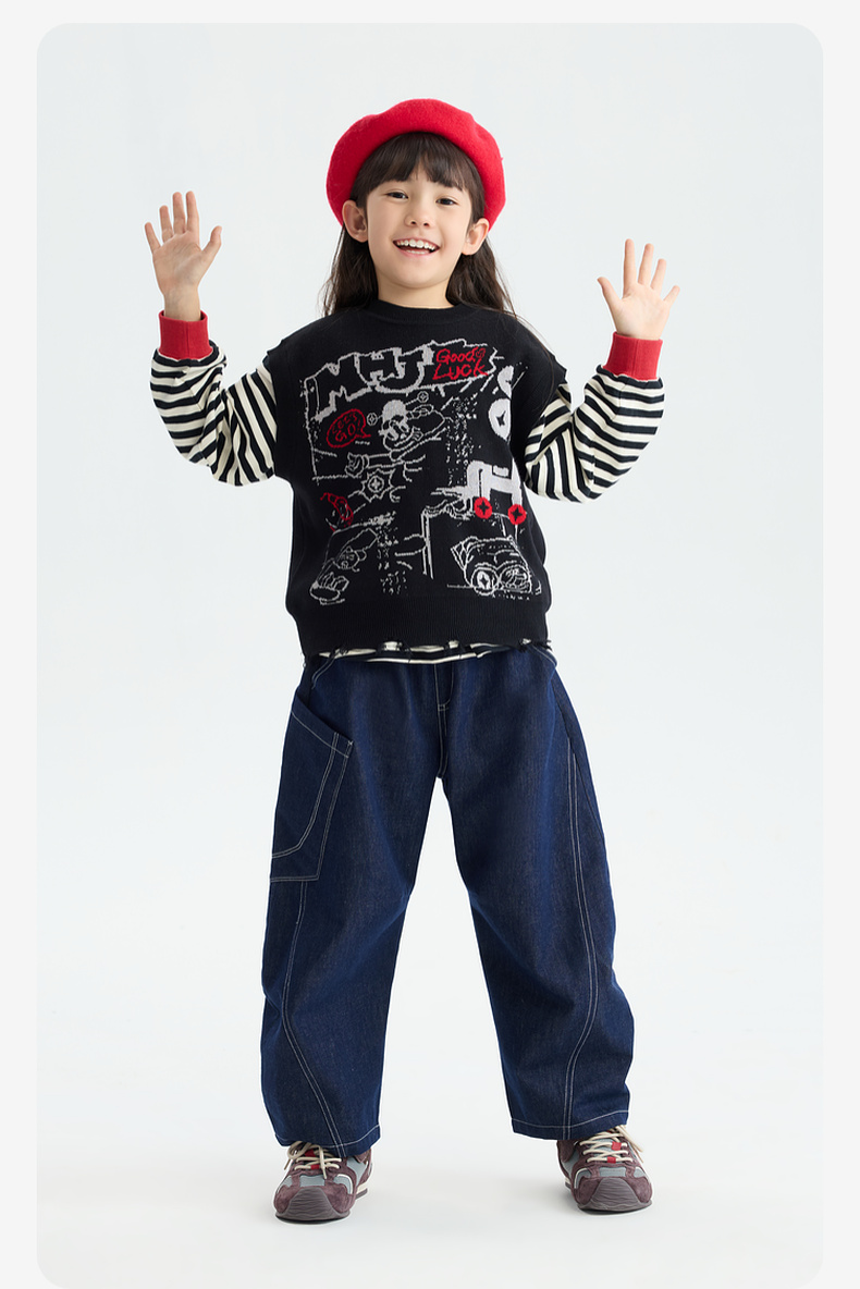 MANHOJIA【大富翁毛衣】儿童新款冬季拜年针织手绘漫画提花毛衣