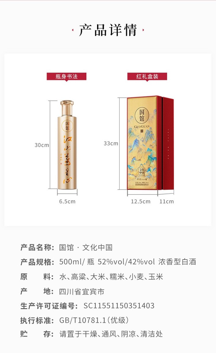 国馆·文化中国浓香型白酒52度500ml*1瓶/2瓶