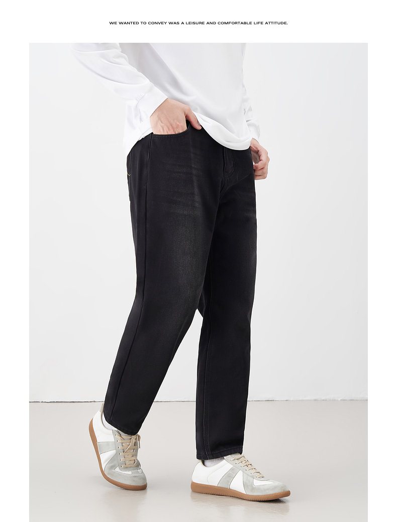 gxgjeans男装冬季加绒直筒牛仔裤高街磨旧锥形裤长裤潮